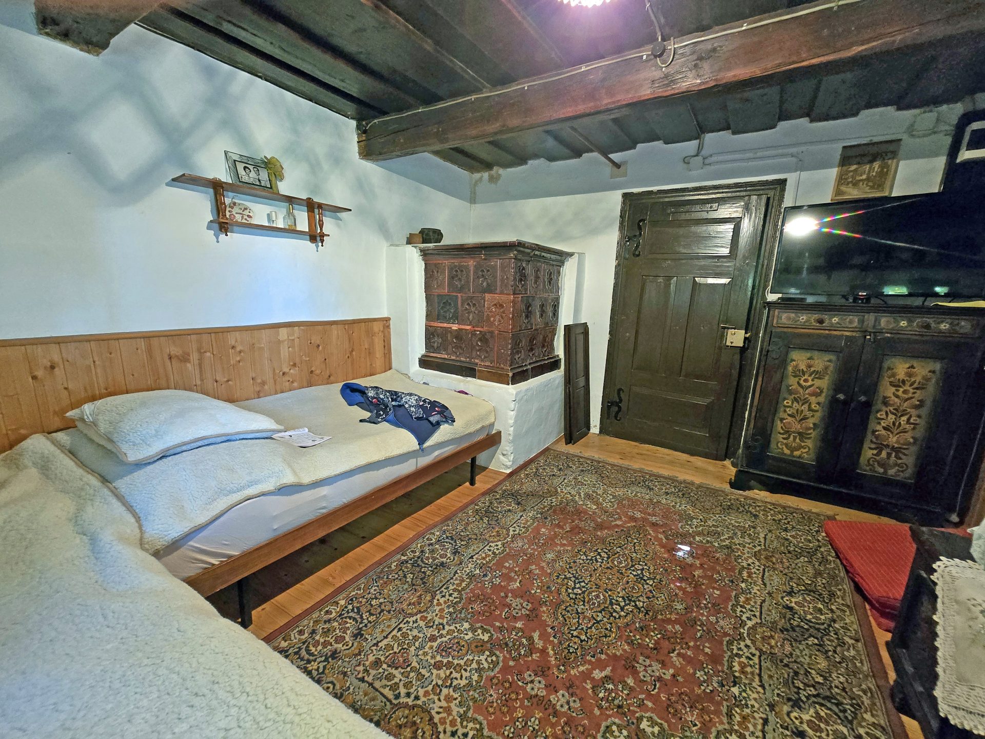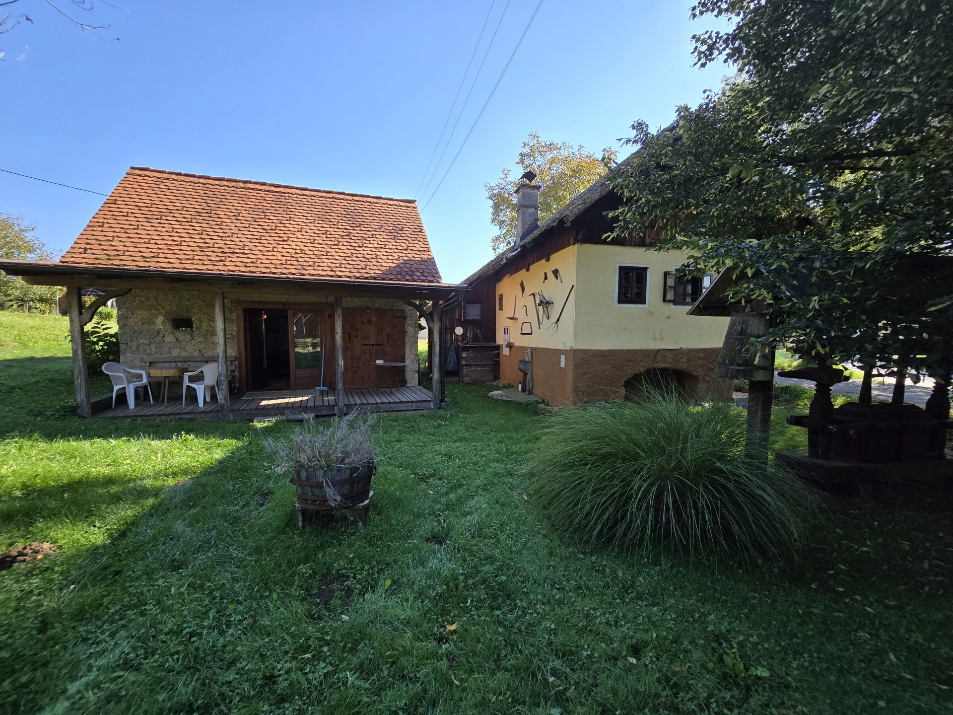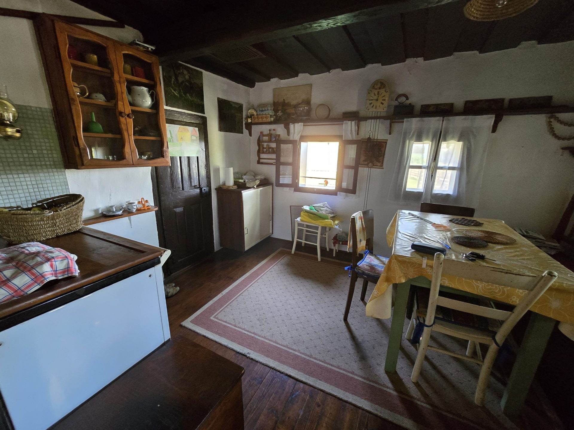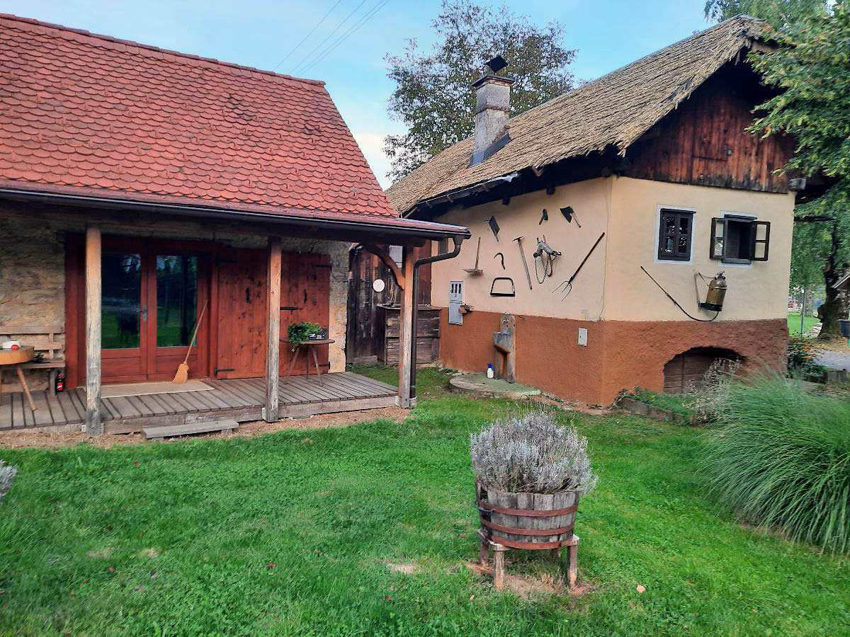 Stara hiša ima spalnico s kmečko pečjo, manjšo jedilnico s štedilnikom na drva, vežo z manjšo kuhinjo, kopalnico in dve kleti.