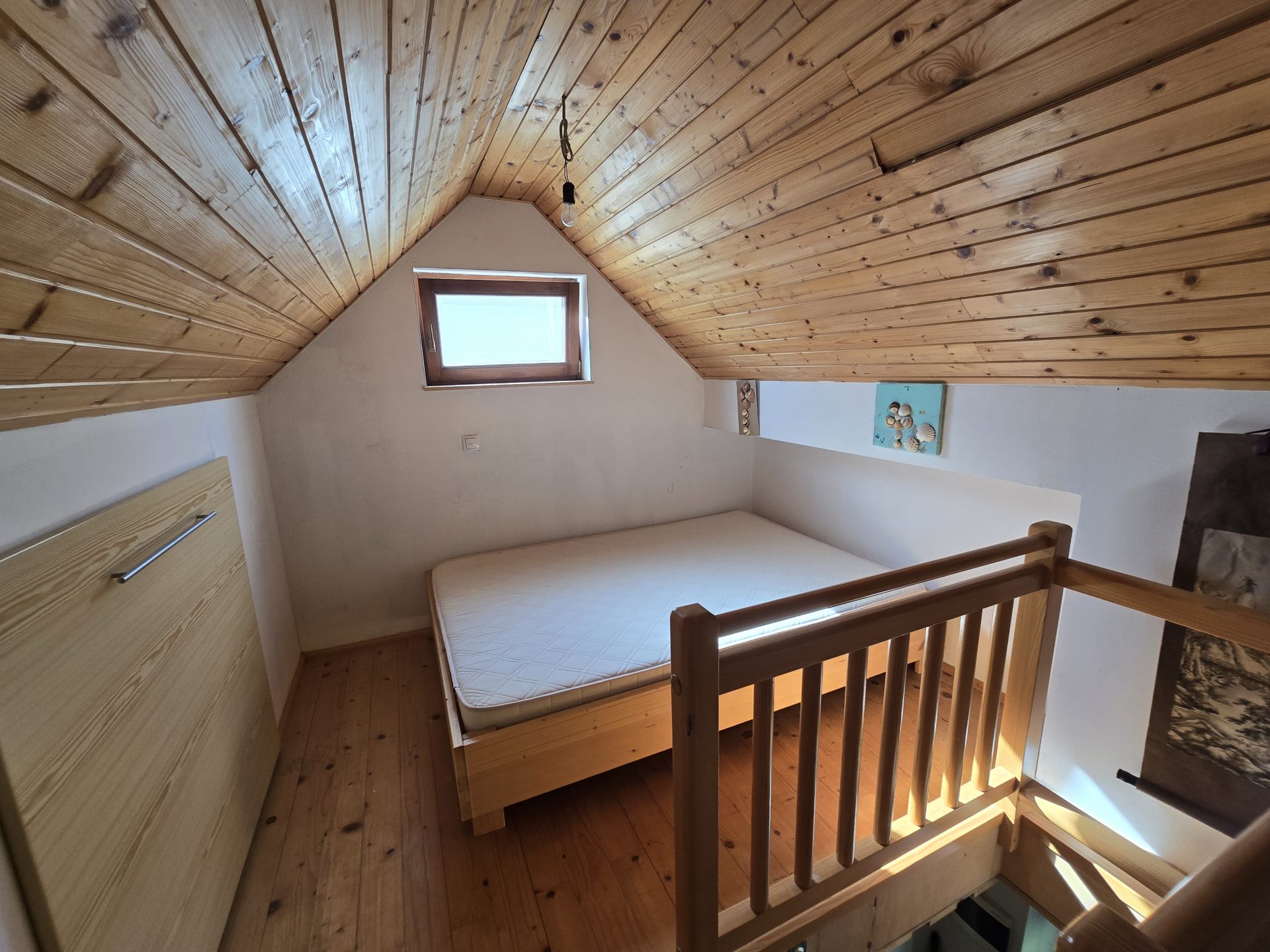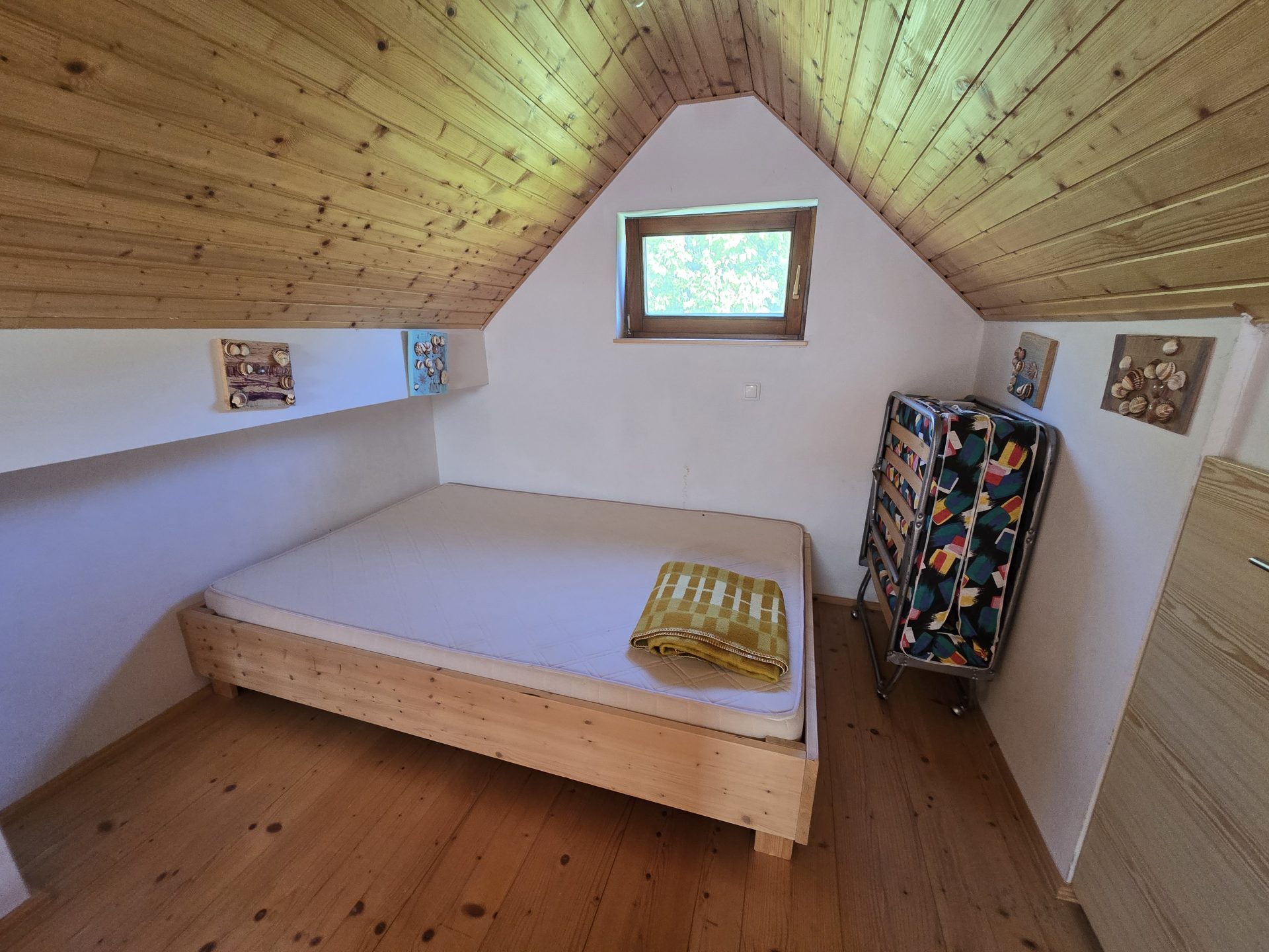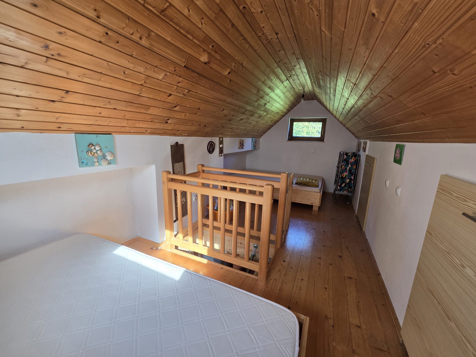 V mansardi je spalnica.