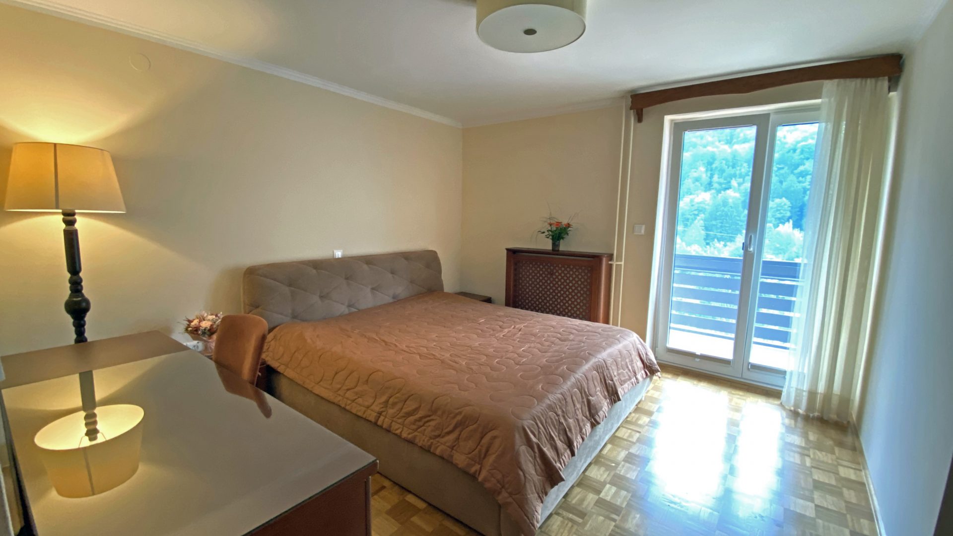Na voljo sta dve spalnici, obe z dostopom na balkon in visokokakovostnim pohištvom.