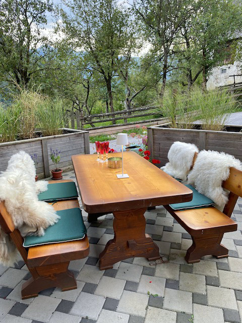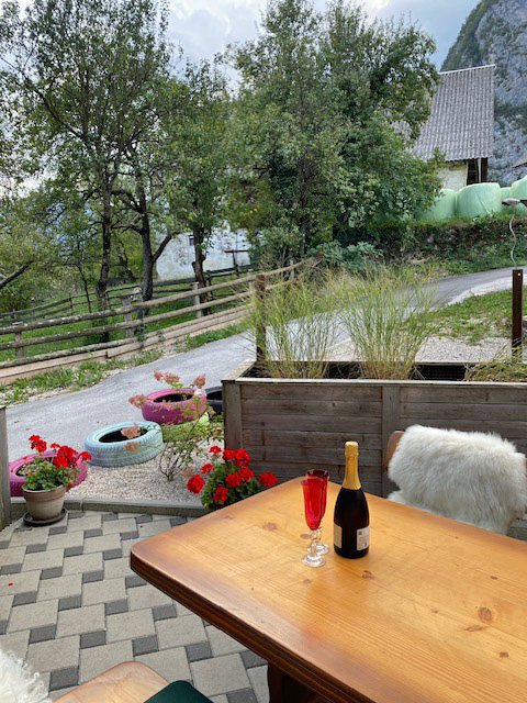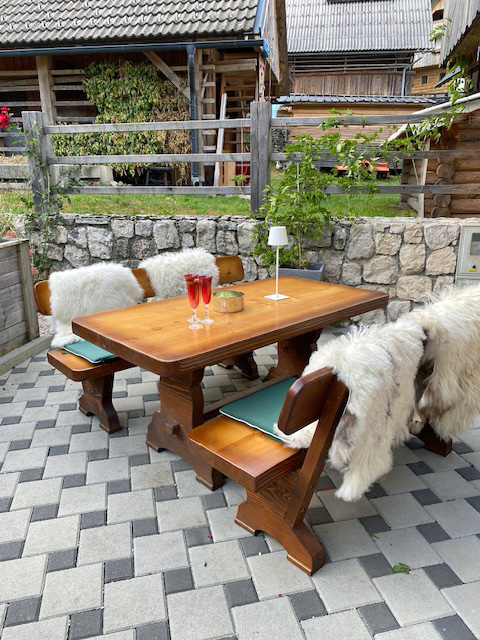Lep zunanji prostor na vrtu za posedanje in sprostitev.