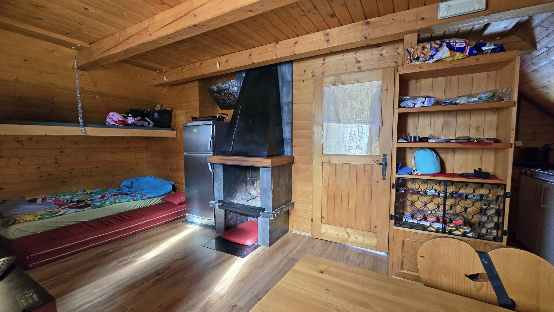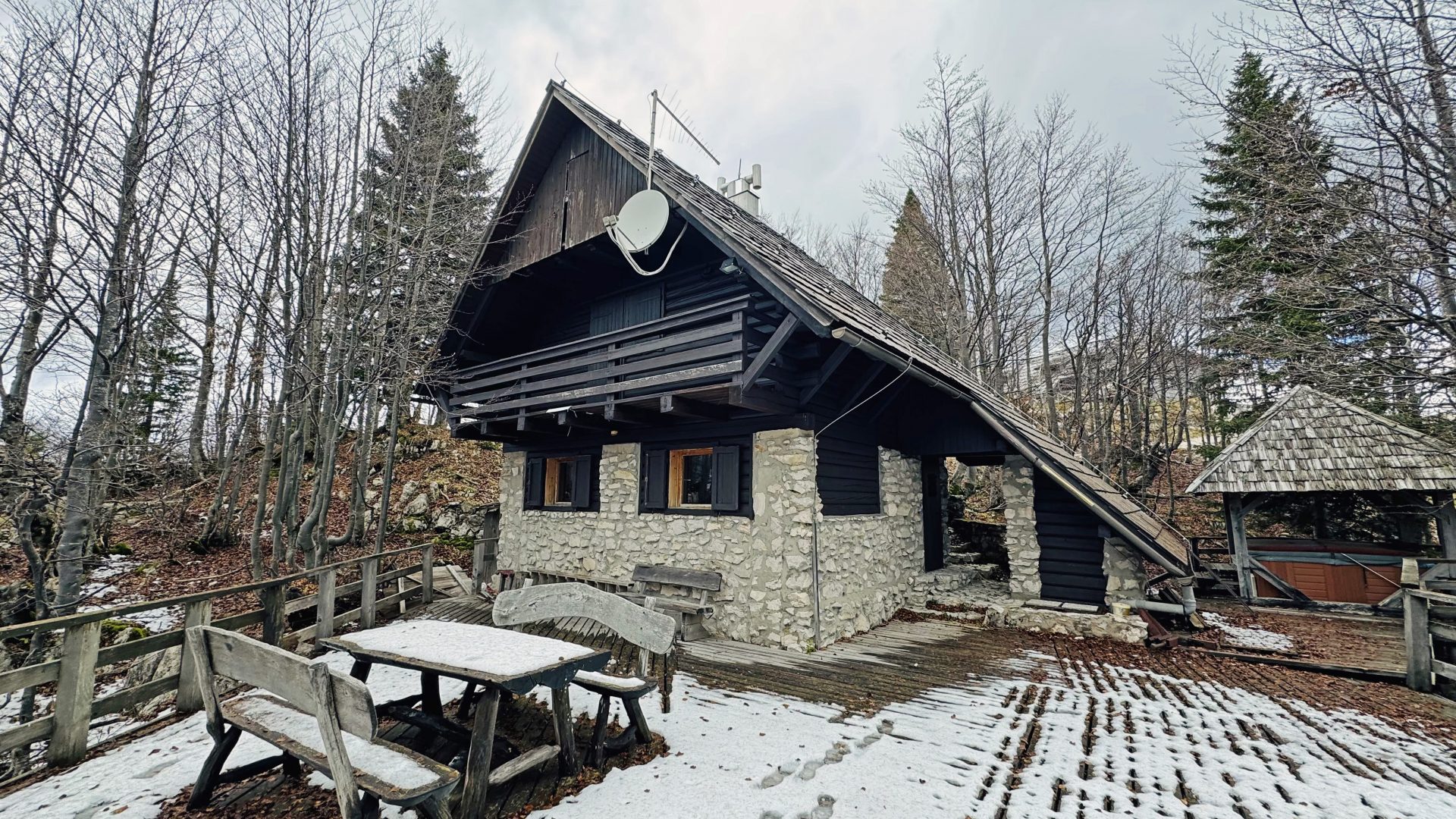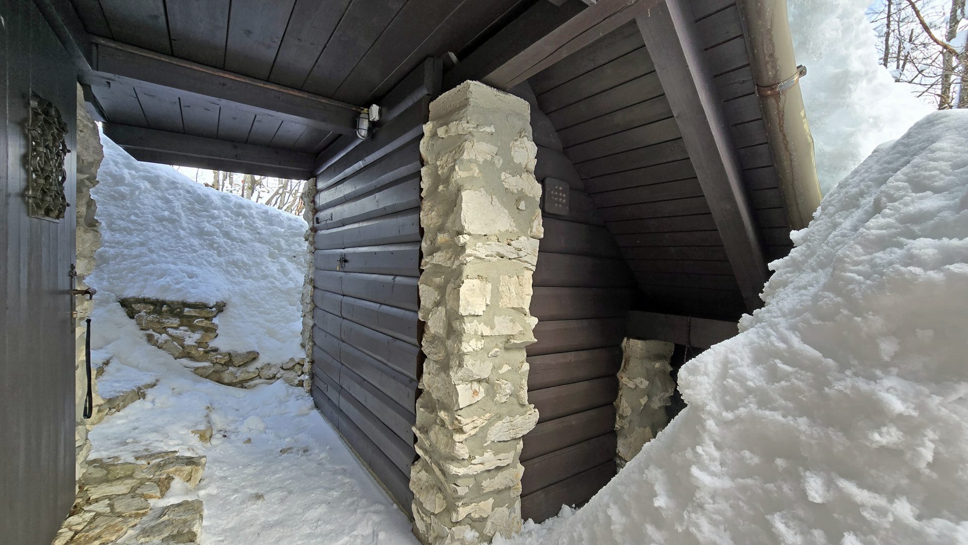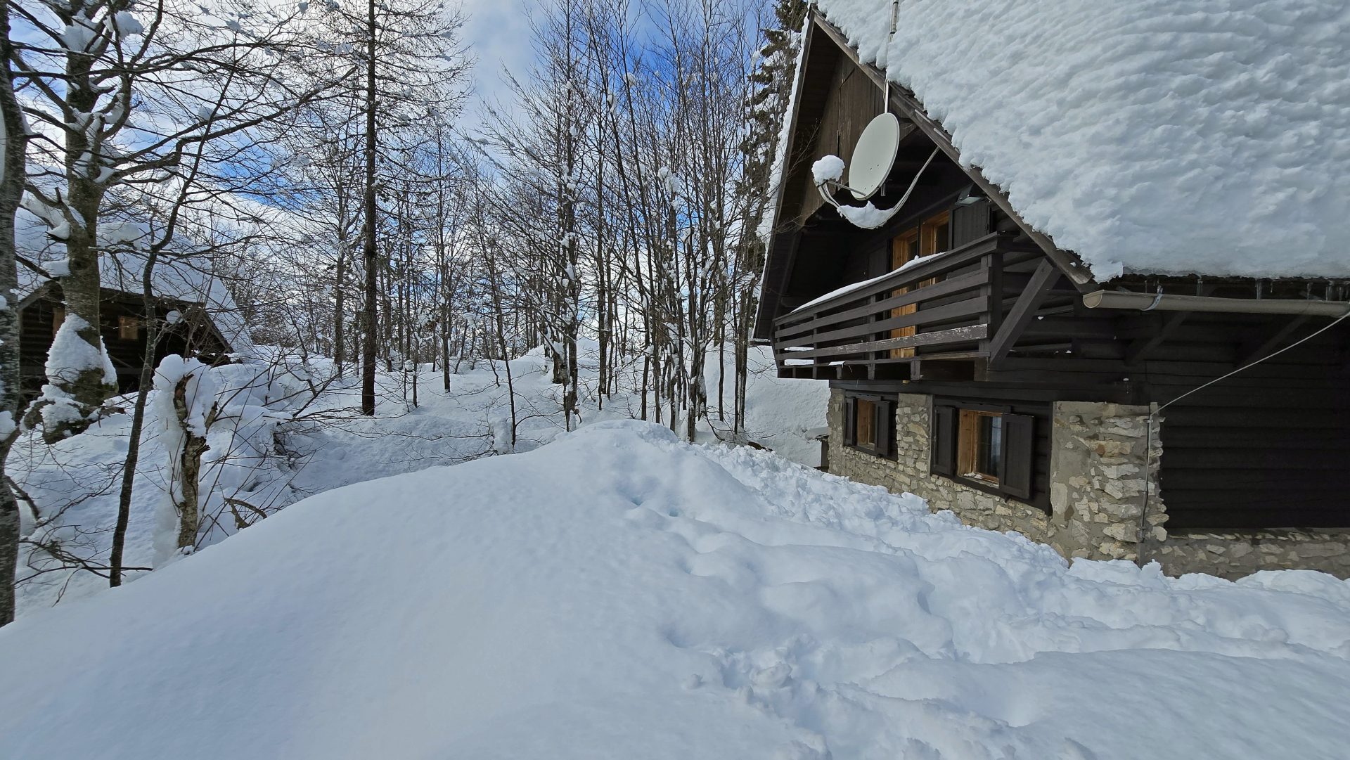 Na zunanji strani se nahaja prostorna lesena terasa, idealna za sproščanje, obedovanje in uživanje v naravnem okolju. Koča stoji na 247 m² veliki parceli, ki kljub izjemni legi na smučišču nudi dovolj zunanjega prostora.