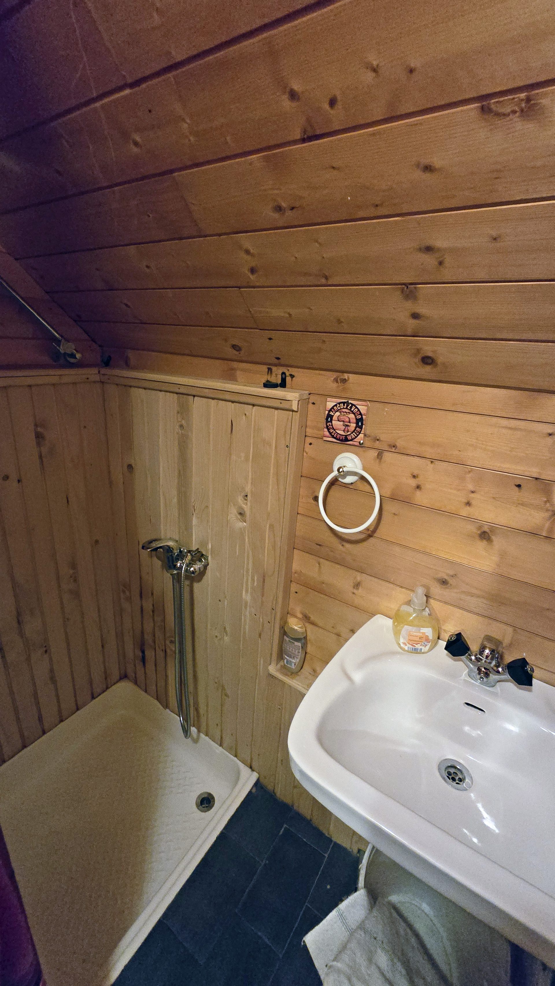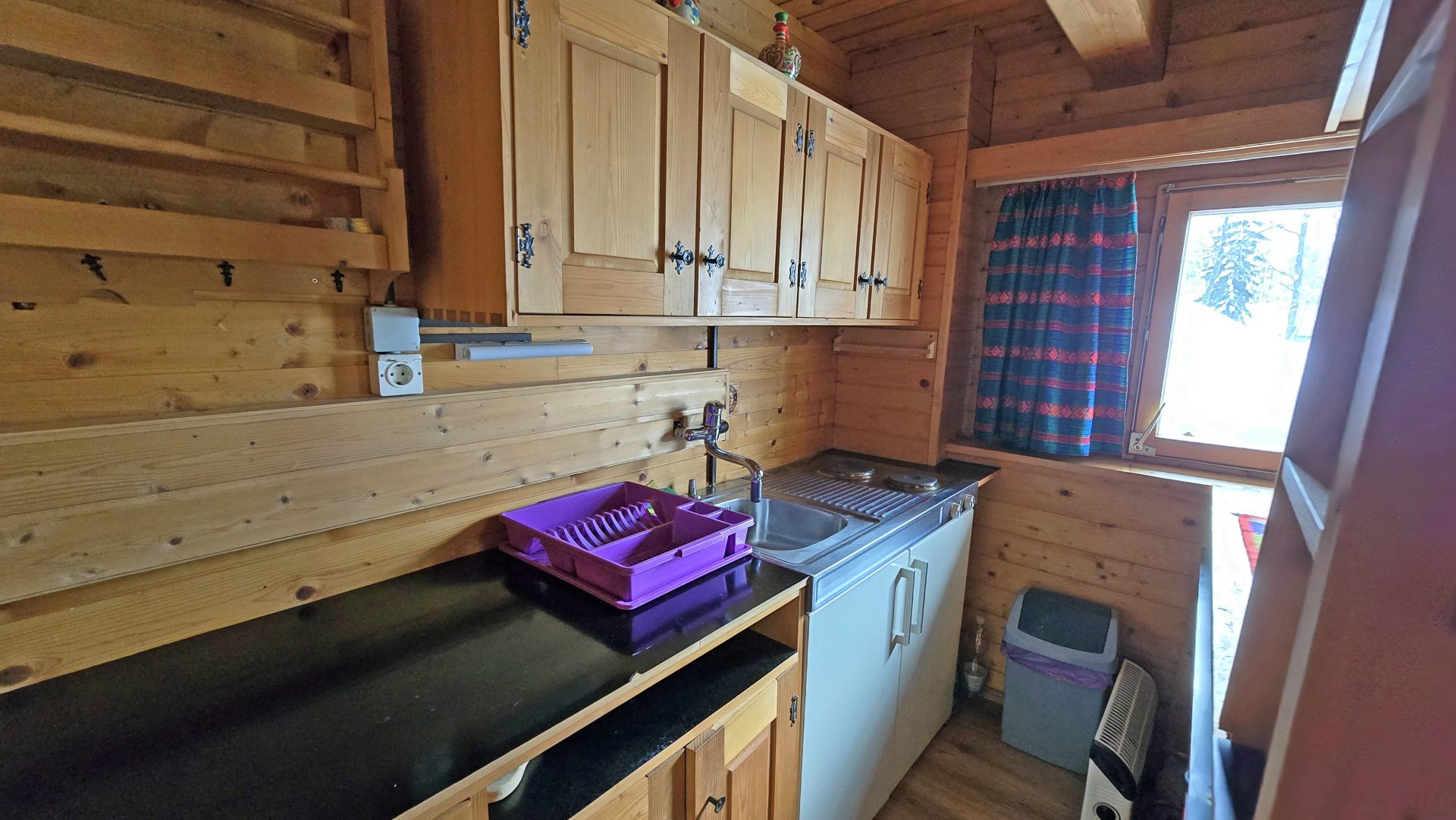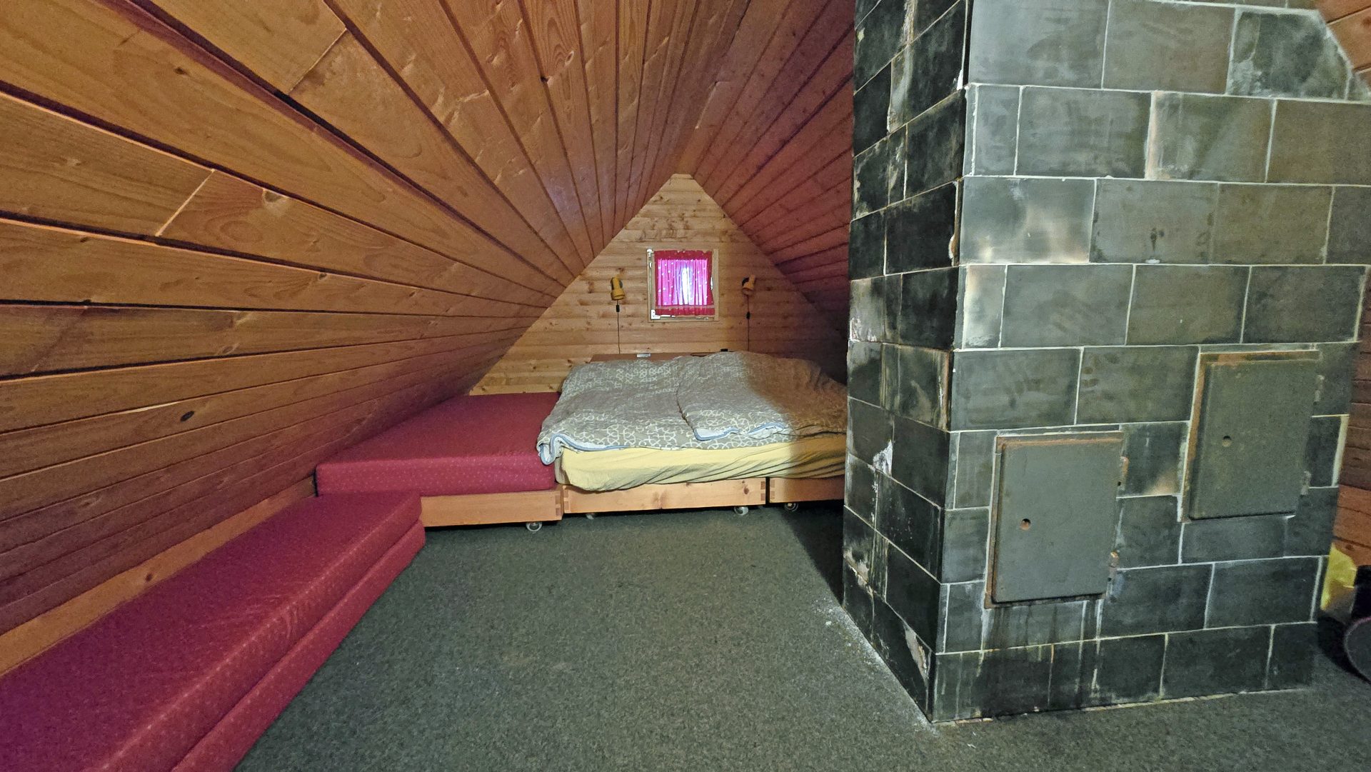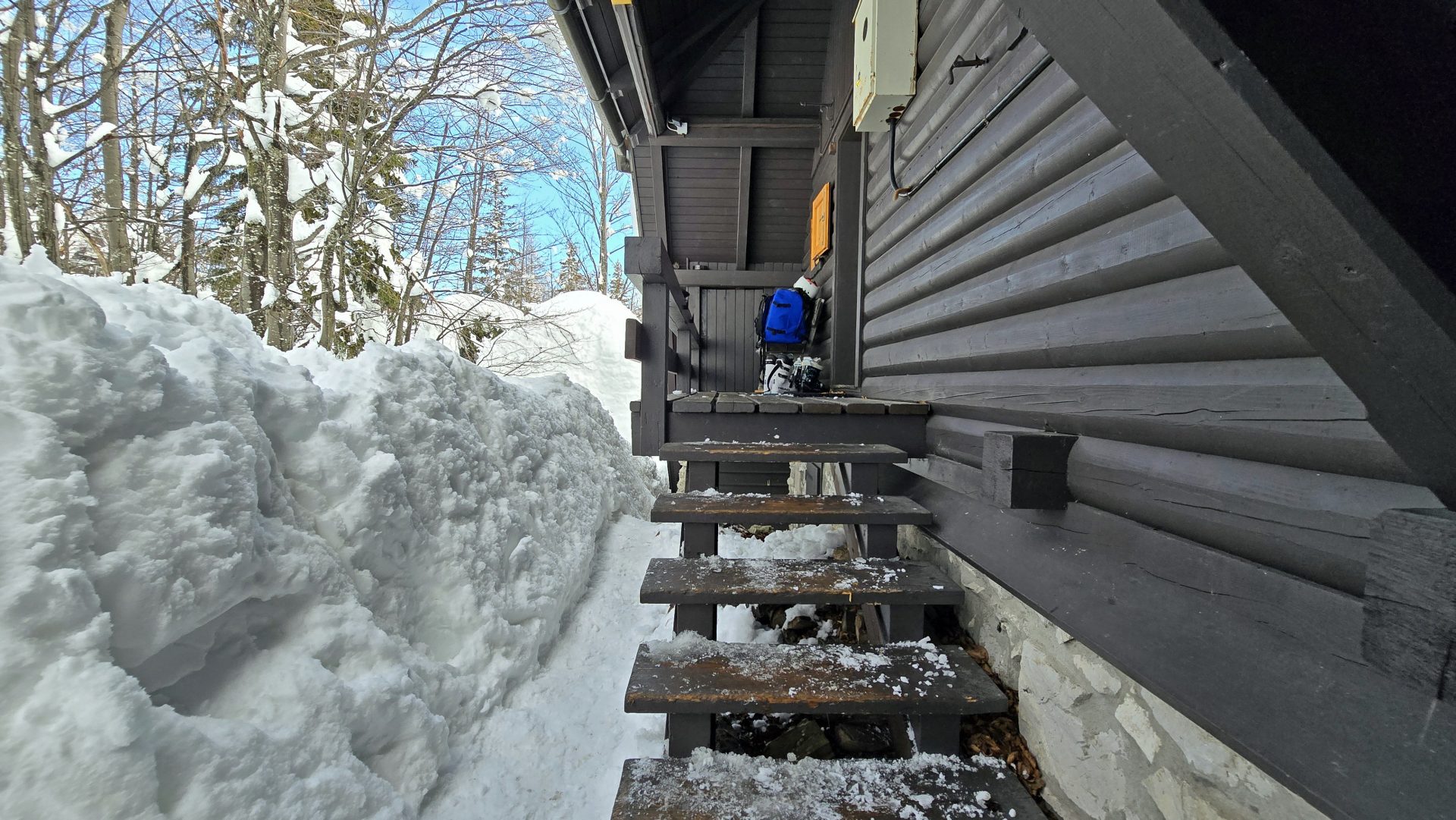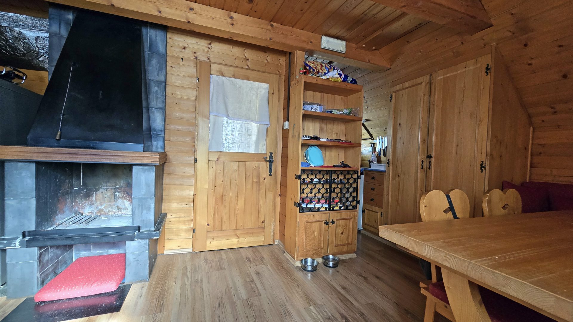 Na zunanji strani se nahaja prostorna lesena terasa, idealna za sproščanje, obedovanje in uživanje v naravnem okolju. Koča stoji na 247 m² veliki parceli, ki kljub izjemni legi na smučišču nudi dovolj zunanjega prostora.