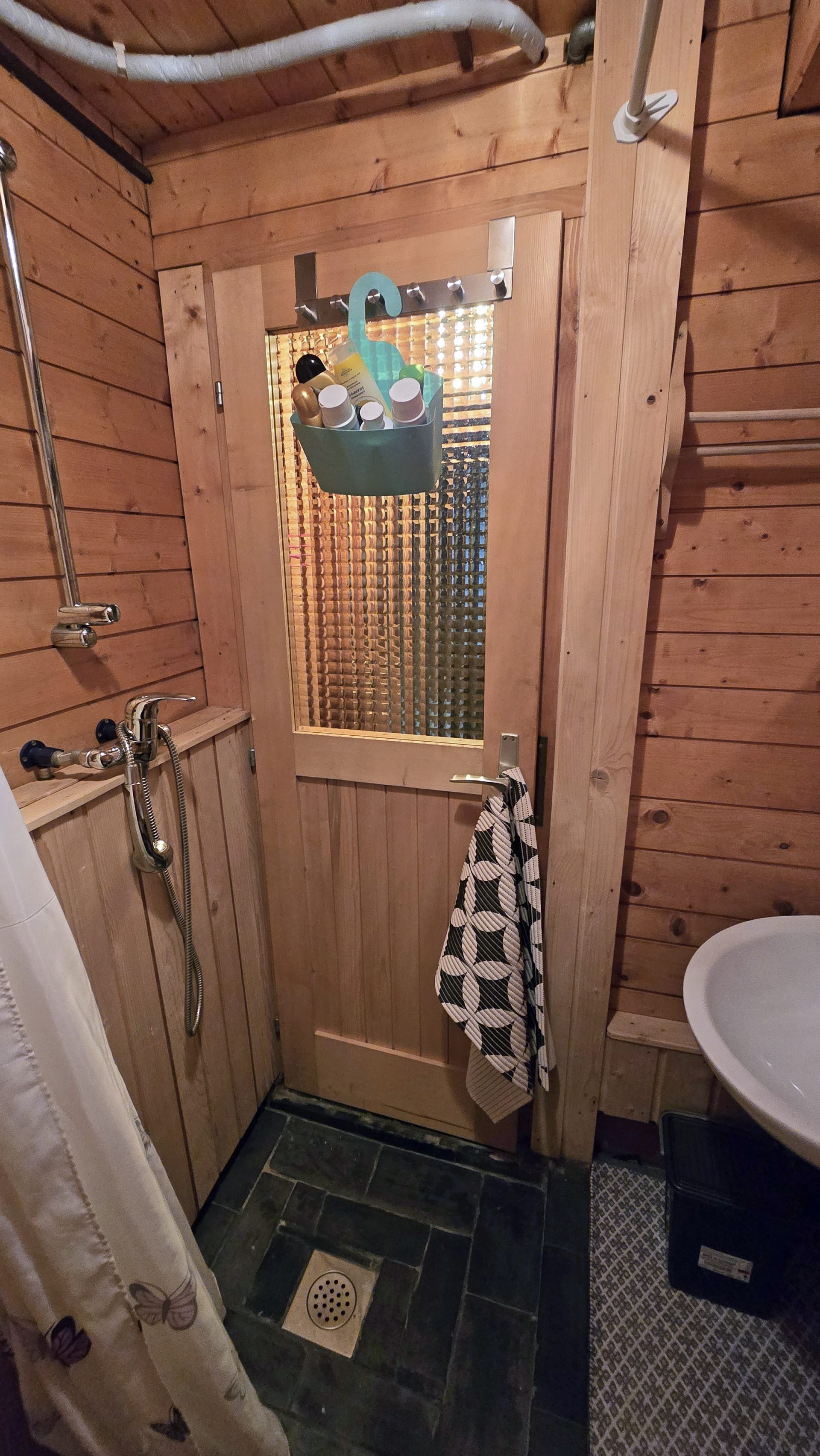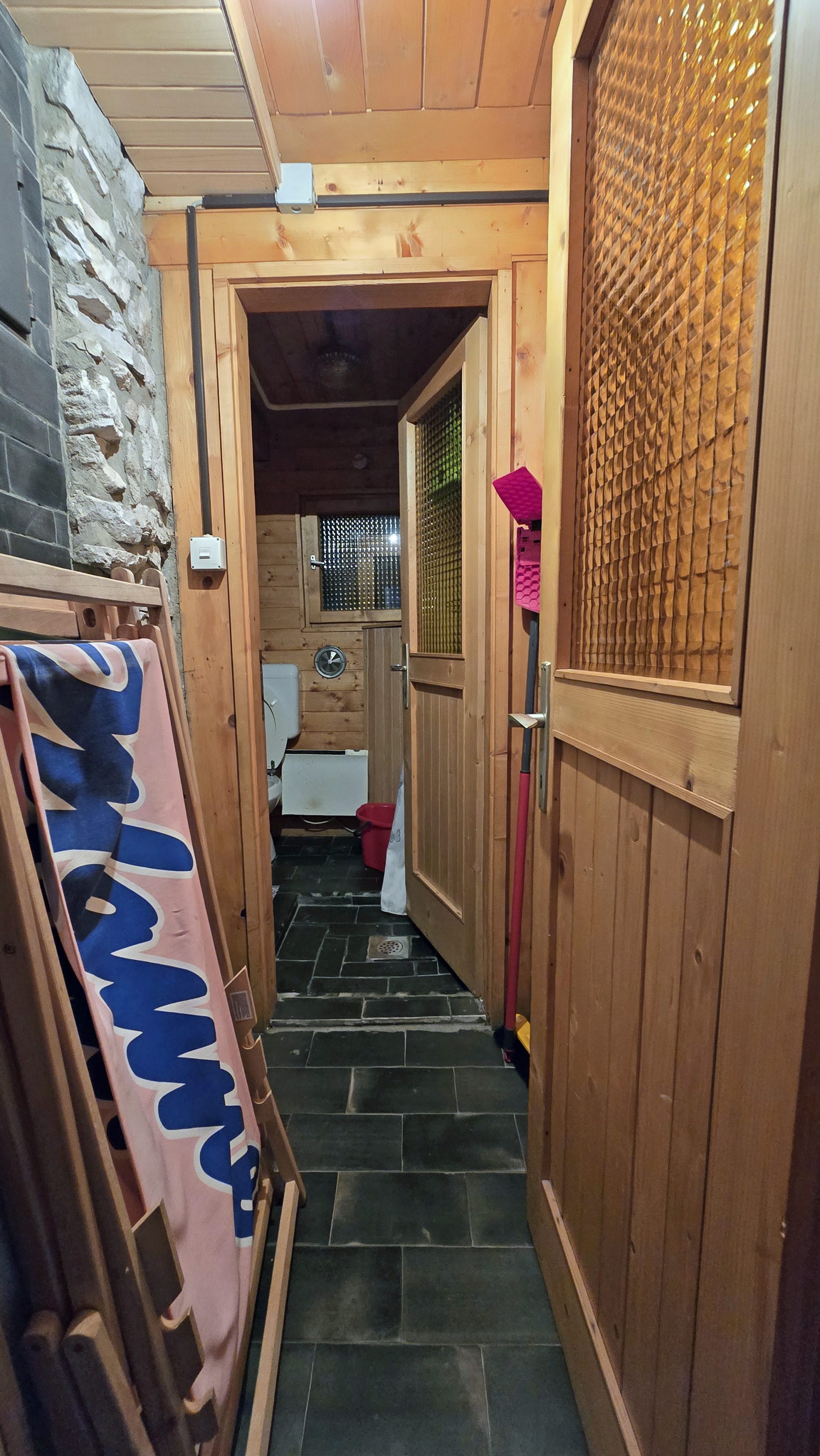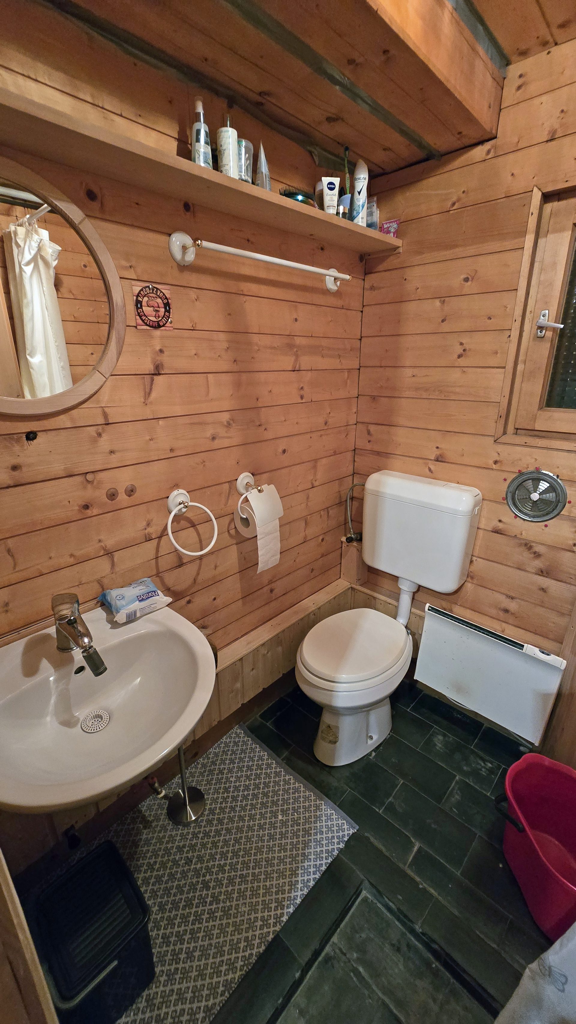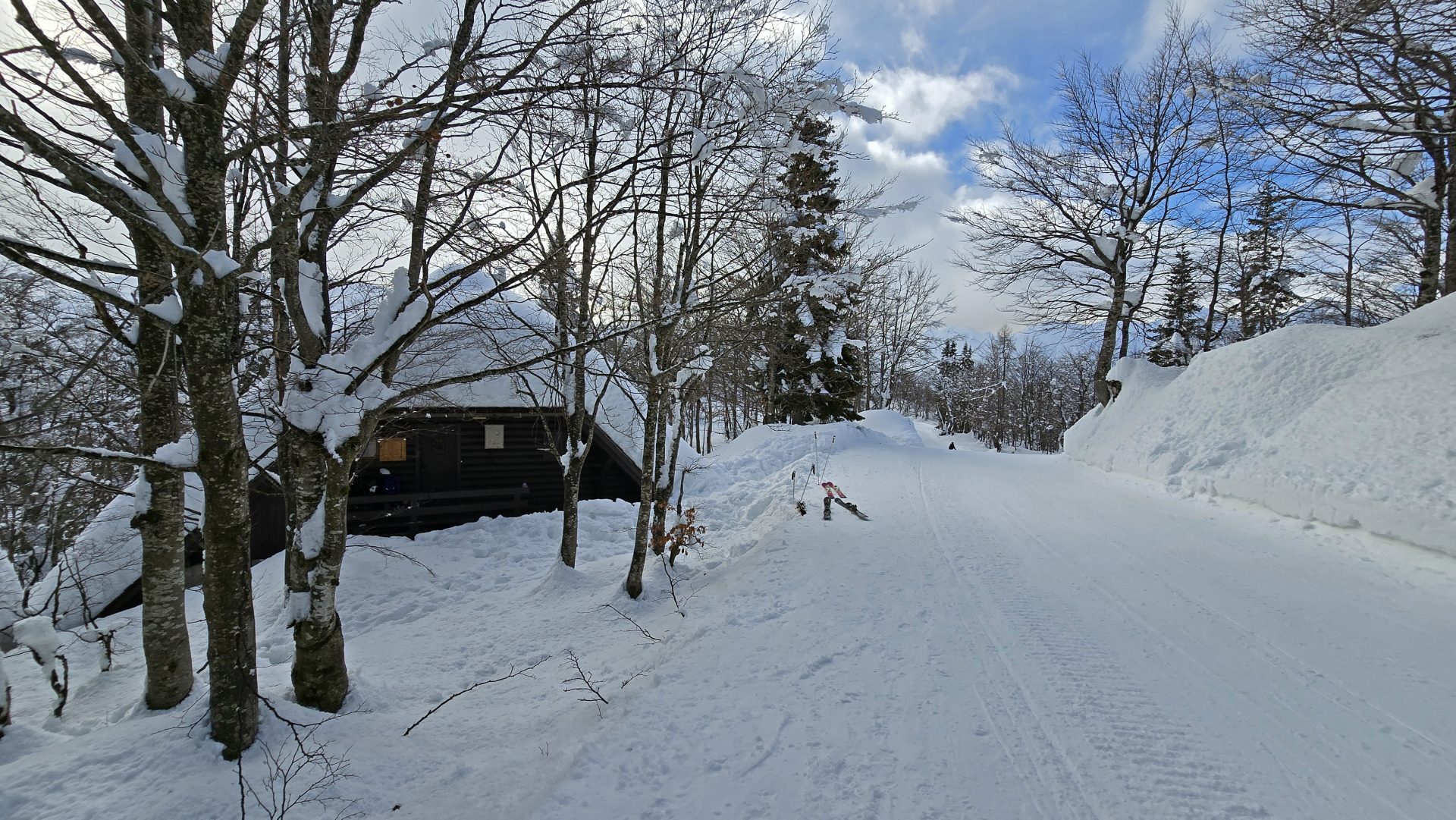 Na zunanji strani se nahaja prostorna lesena terasa, idealna za sproščanje, obedovanje in uživanje v naravnem okolju. Koča stoji na 247 m² veliki parceli, ki kljub izjemni legi na smučišču nudi dovolj zunanjega prostora.