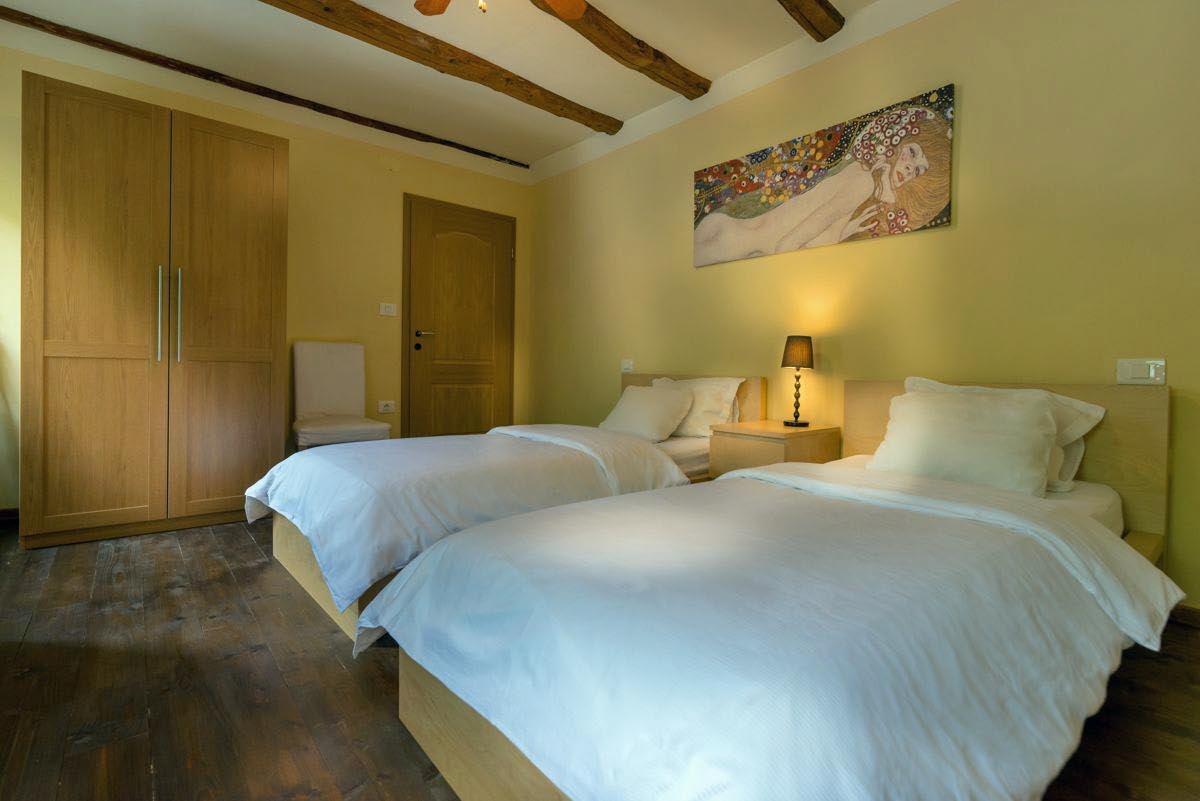 V nadstropju se nahajajo tri prostorne spalnice, ena izmed njih ima tudi balkon s čudovitim razgledom na okoliške gore. Hiša vključuje dve kopalnici, shrambo ob kuhinji ter kletni prostor, kjer je nameščen ogrevalni sistem in dodaten prostor za shranjevanje.