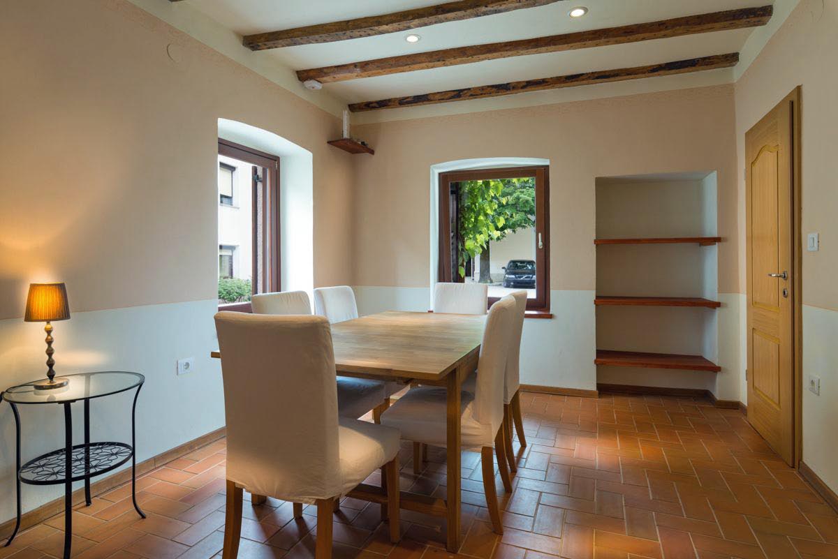 Hiša ima masivne kamnite nosilne stene in lesena okna z dvojno zasteklitvijo, ki zagotavljajo dobro izolacijo in ohranjajo tradicionalni značaj hiše. Ogrevanje je urejeno na kurilno olje.