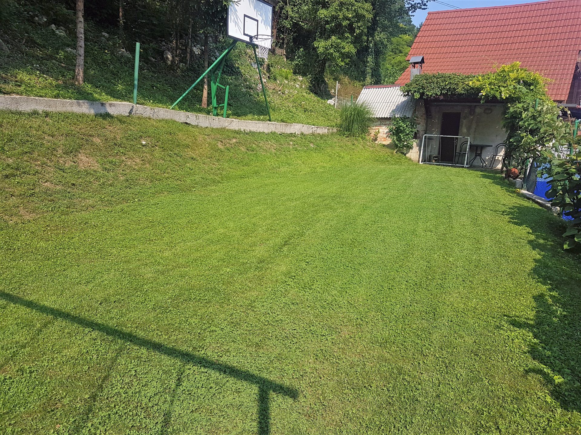Na parceli je še manjši dvoetažni objekt, star kmetijski objekt, dve terasi ter zelenjavni vrt. Pred hišo je dvorišče z nadstreškom za parkiranje vozil.