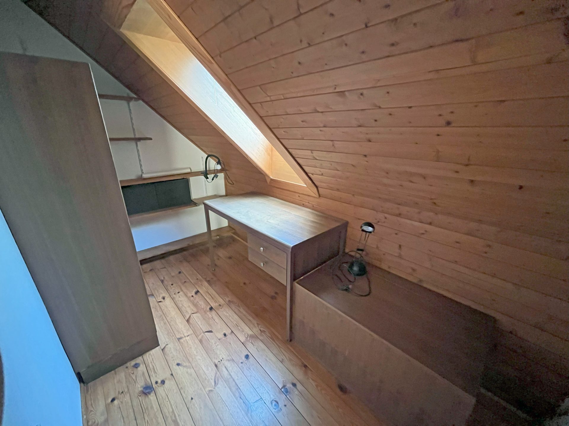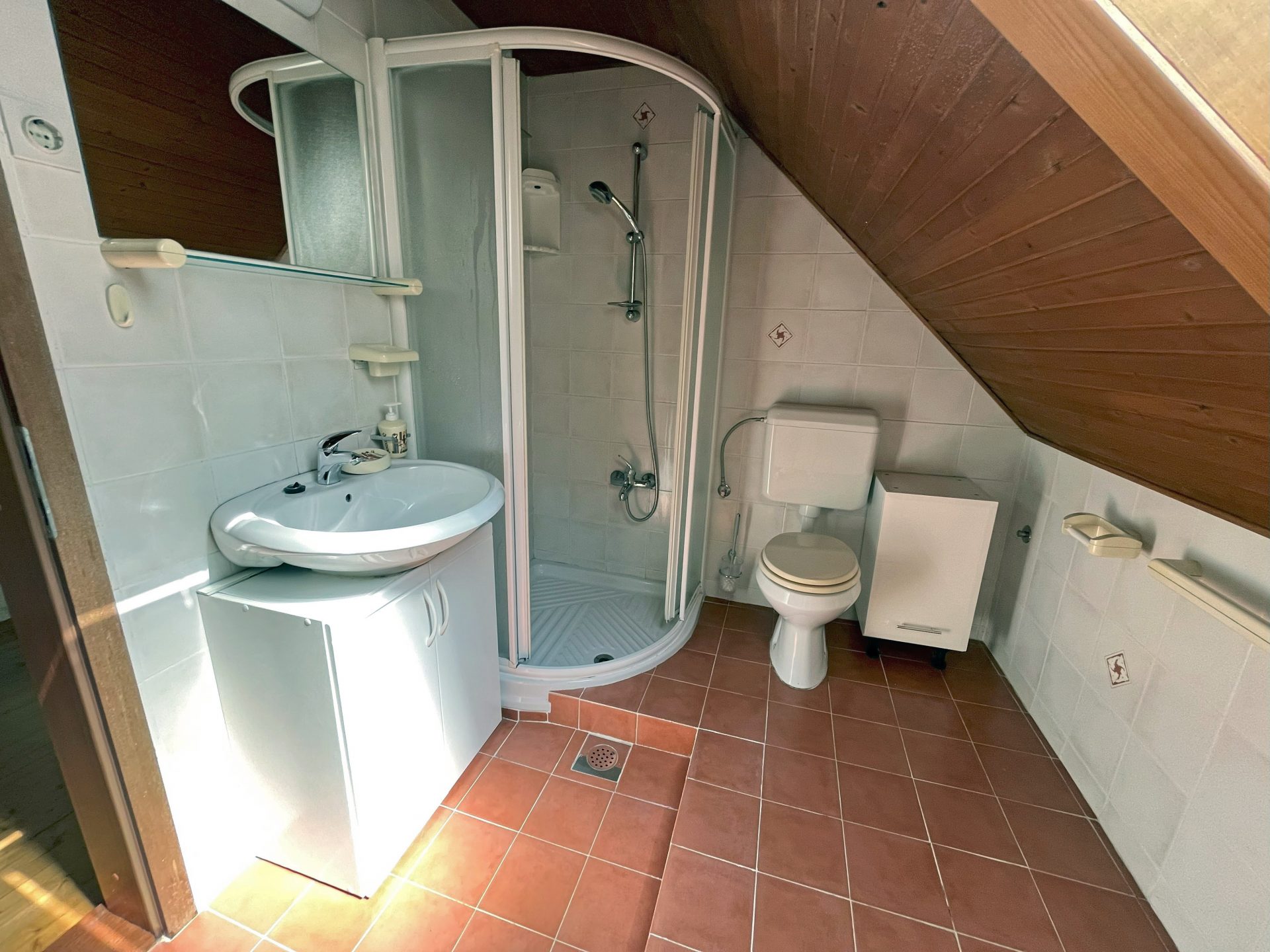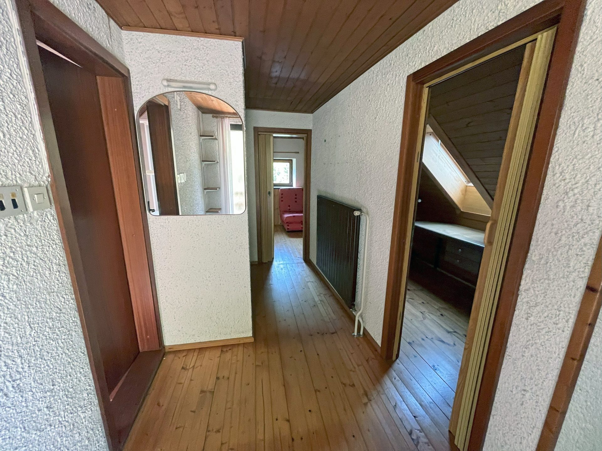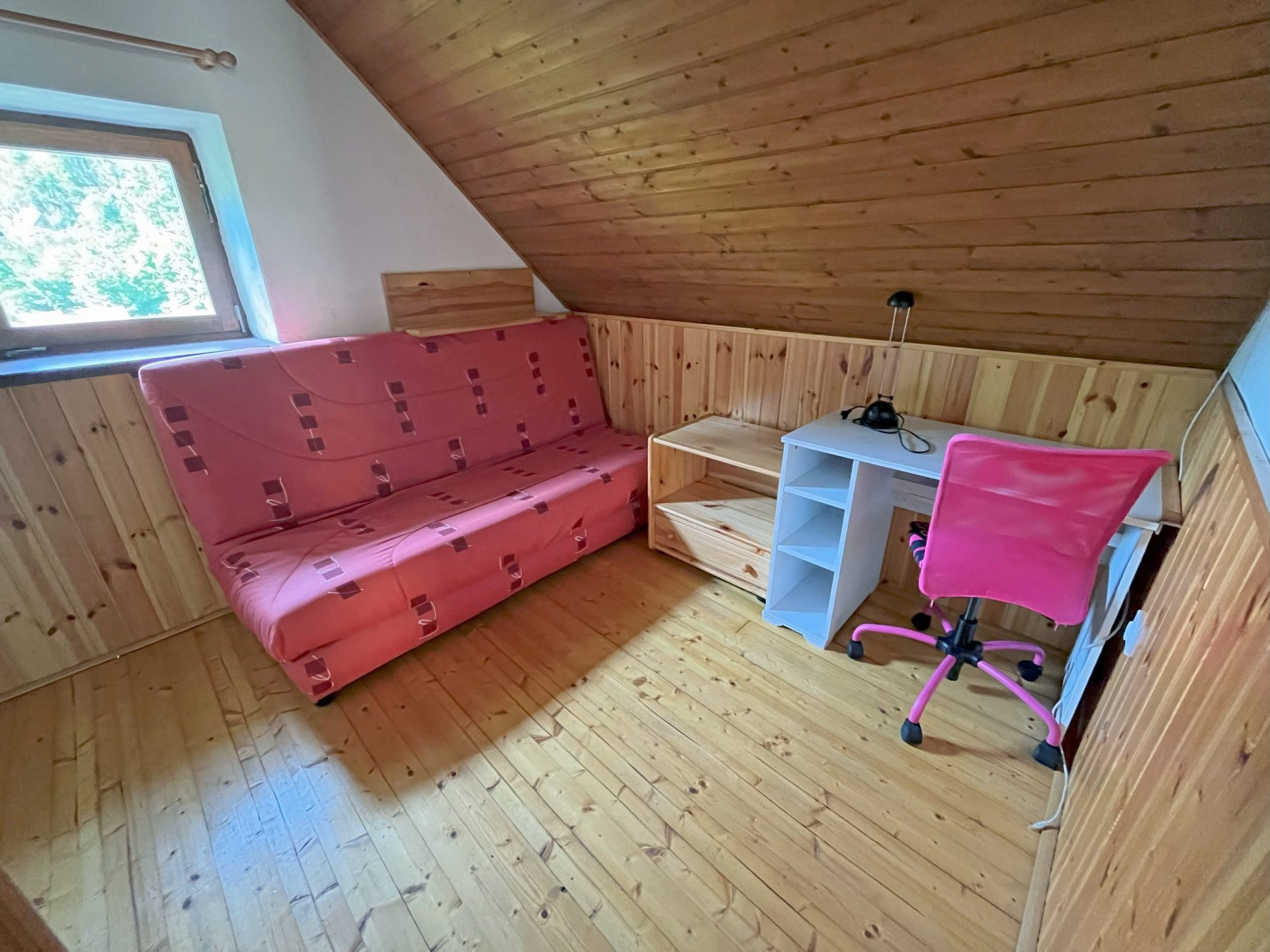 V nadstropju se nahajajo dve spalnici, delovna soba, hodnik in kopalnica ter prečudovita terasa.