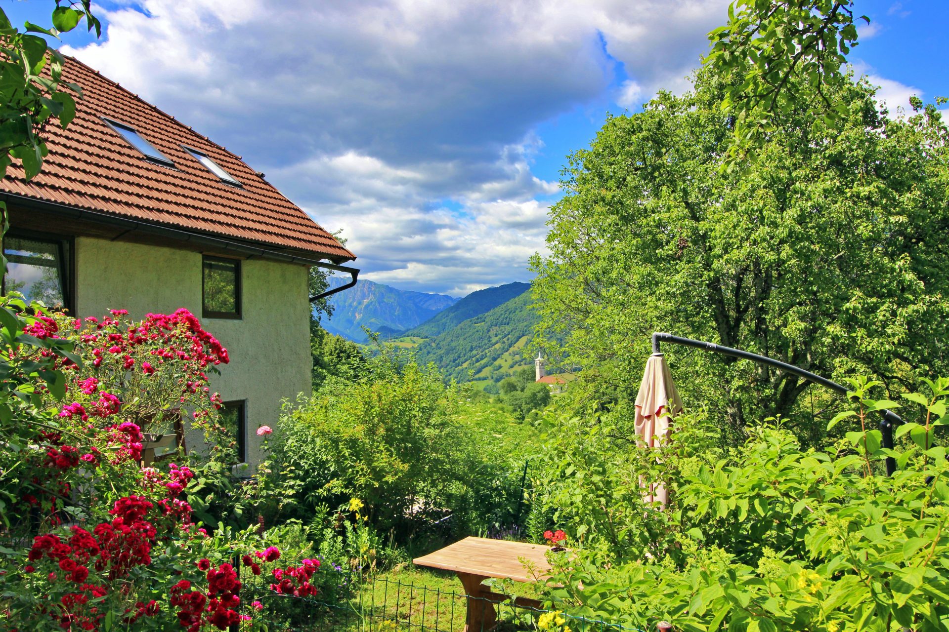 Hiša je bila zgrajena leta 1900 in je bila popolnoma obnovljena. Ima 115 m2. Ponaša se z mešanico tople gostoljubnosti in domačega udobja. Skozi okna so pogledi na vrtove, travnike in gore idilični.