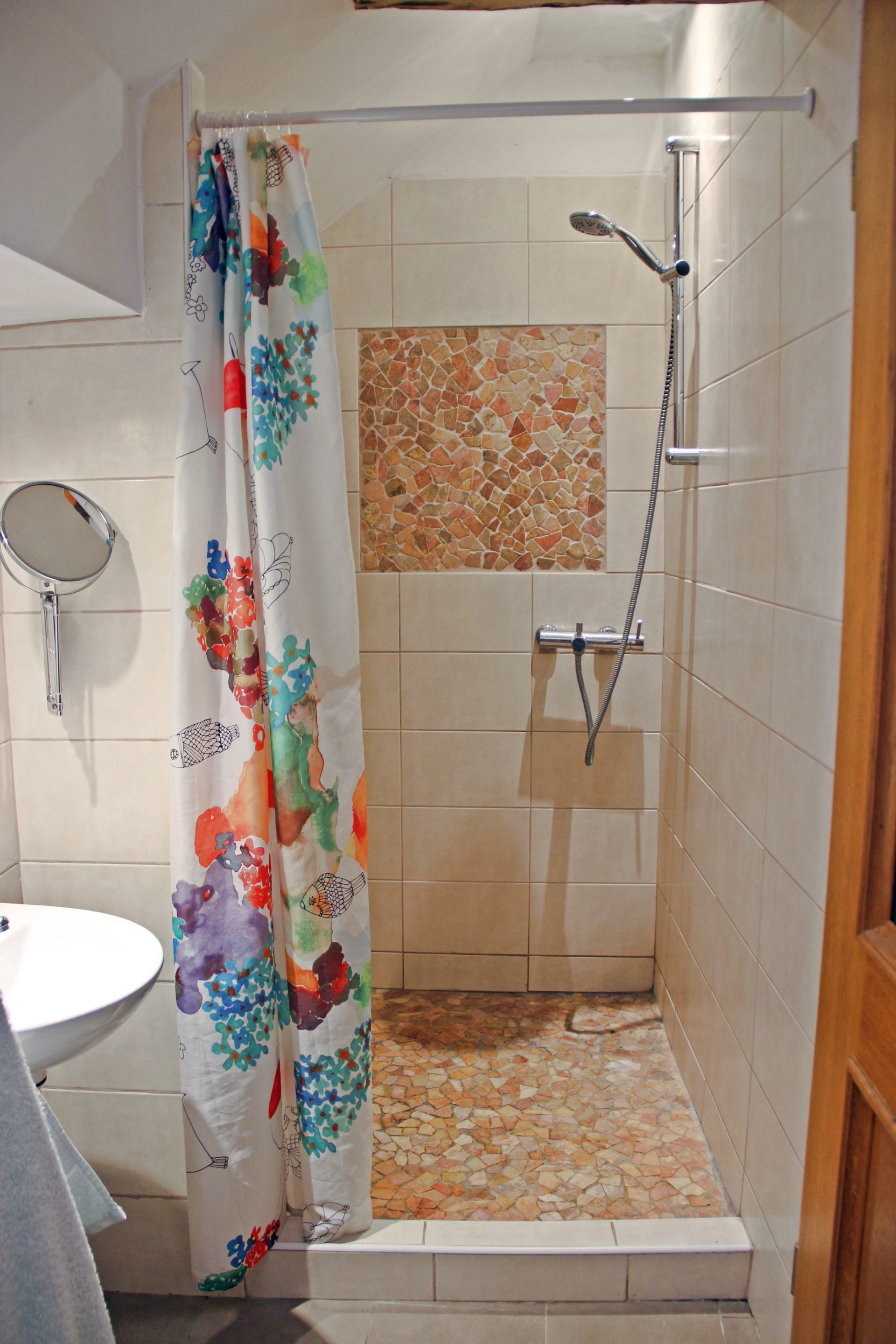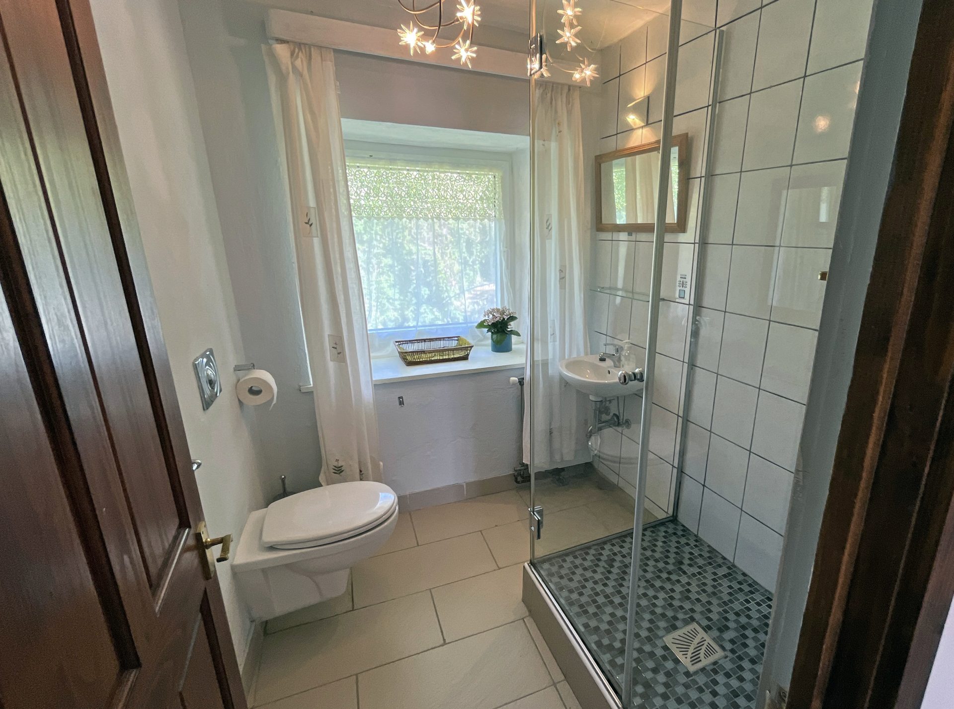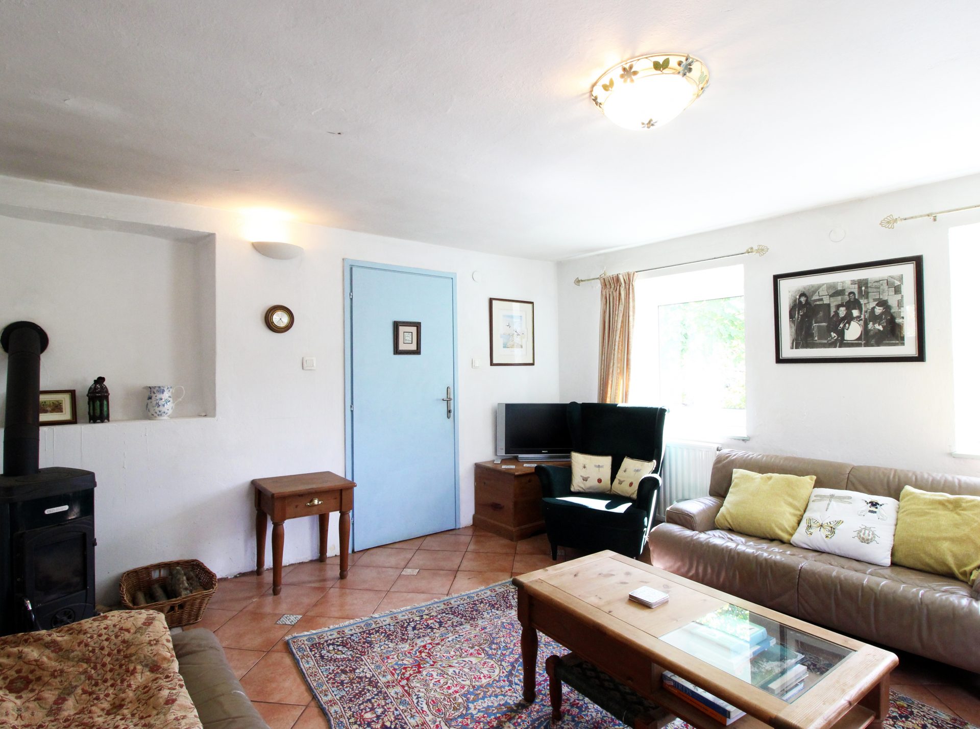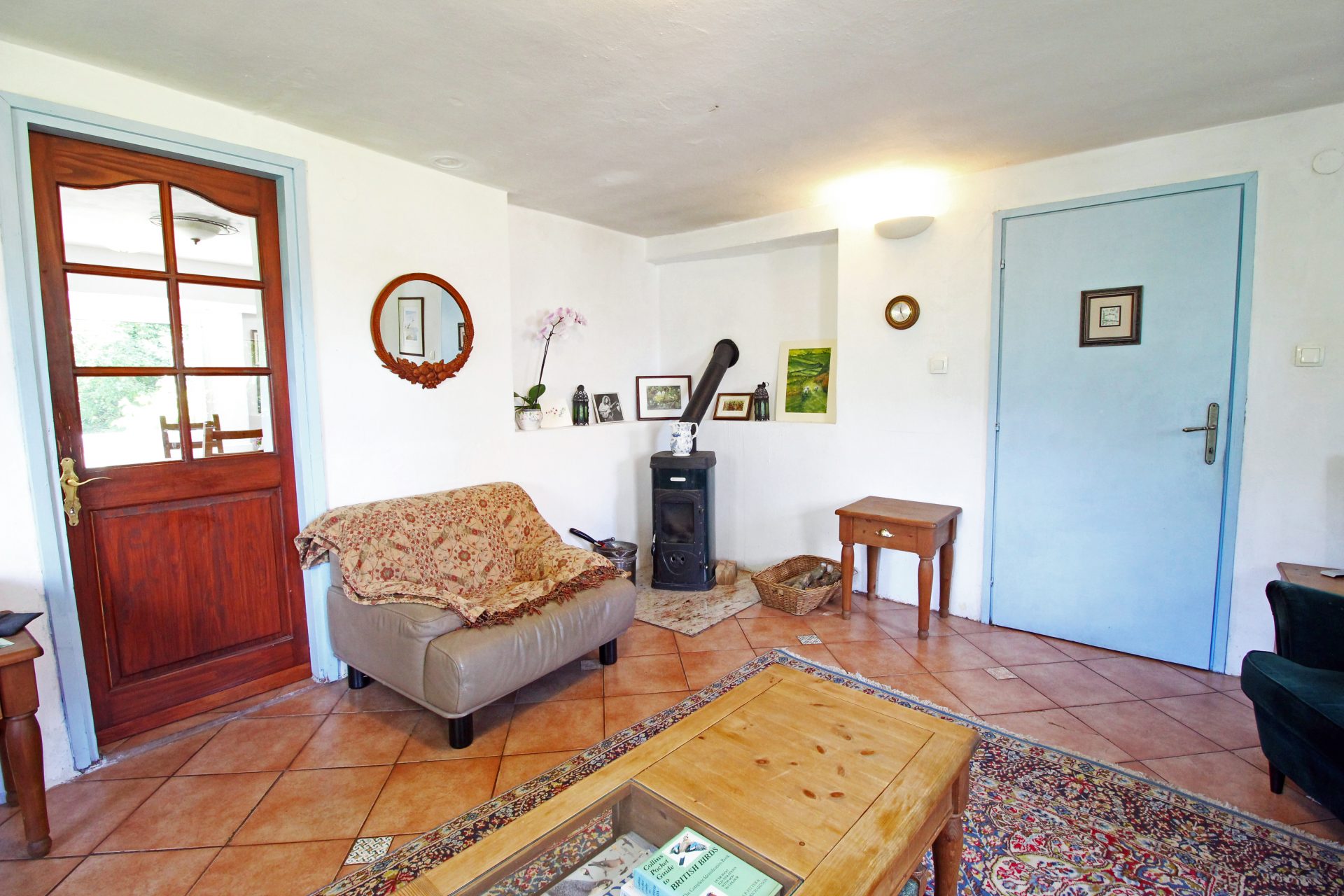 Sobe in kopalnice so prostorne, tri v glavni hiši so individualno oblikovane in opremljene z mislijo na udobje in sprostitev, z velikimi udobnimi posteljami in individualnimi umetninami na stenah. Skozi okna so pogledi na vrtove, travnike in gore idilični. V glavni hiši je udoben salon s TV, mizo za vezanje, za ustvarjanje ribiških muh in pečjo na drva, v našem glavnem salonu knjižna omara ali dve z veliko izbiro knjig in revij. Nekatere sobe za goste imajo mize za pisatelje na obisku in za tiste, ki morate še vedno ostati v stiku s pisarno.