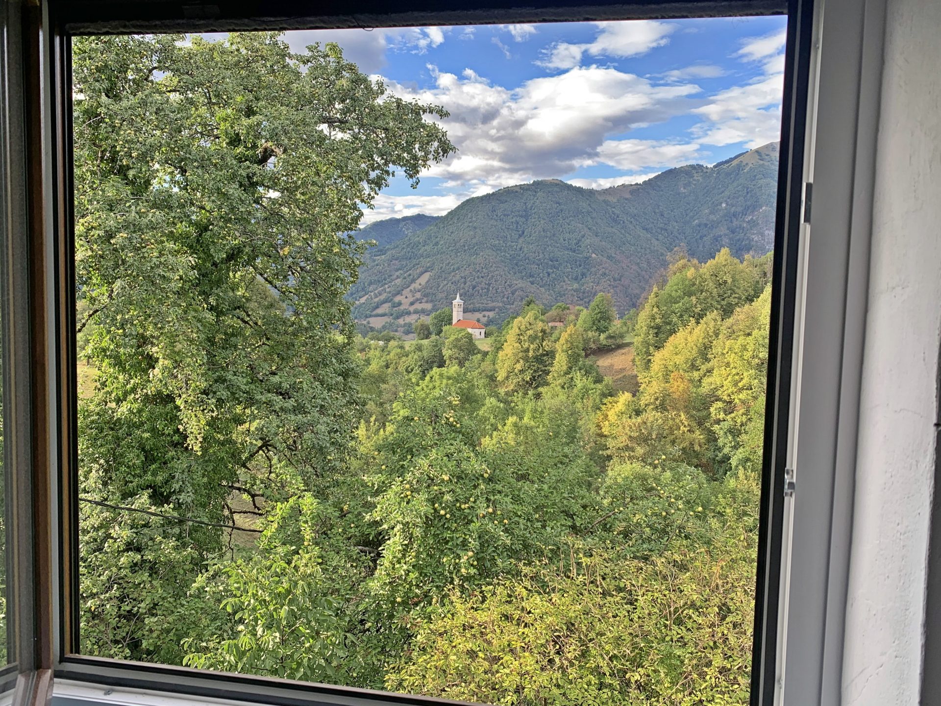 Nahaja se s pogledom na dve rečni dolini in majhne tradicionalne vasi na pobočju. To območje je znano po nasadih jablan, starodavnih bukovih gozdovih, kristalno čistih rekah in mirnih ljudeh, ki še vedno uživajo v podeželskem življenju na zemlji.