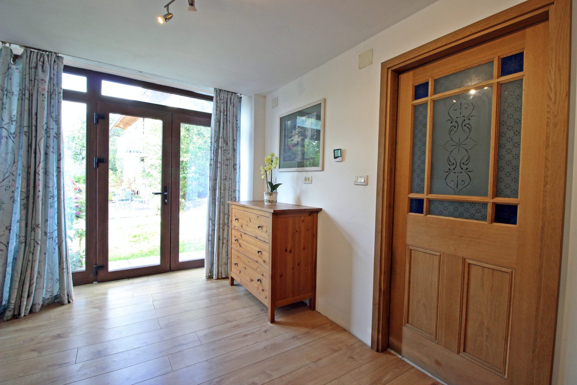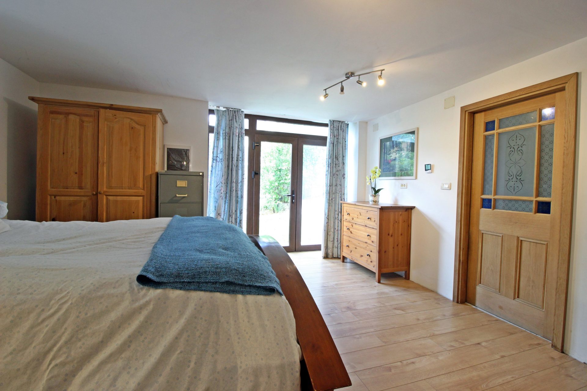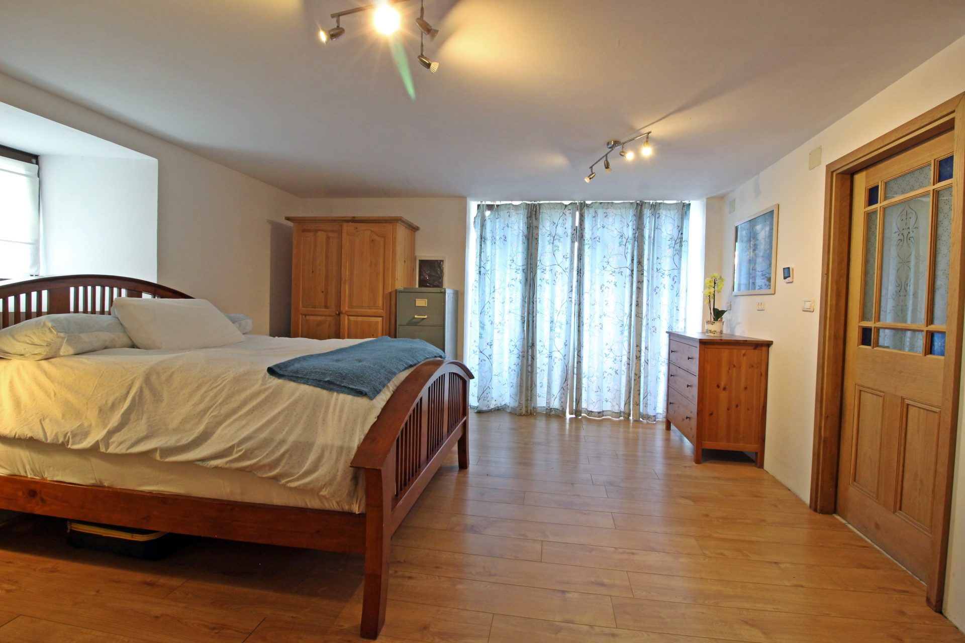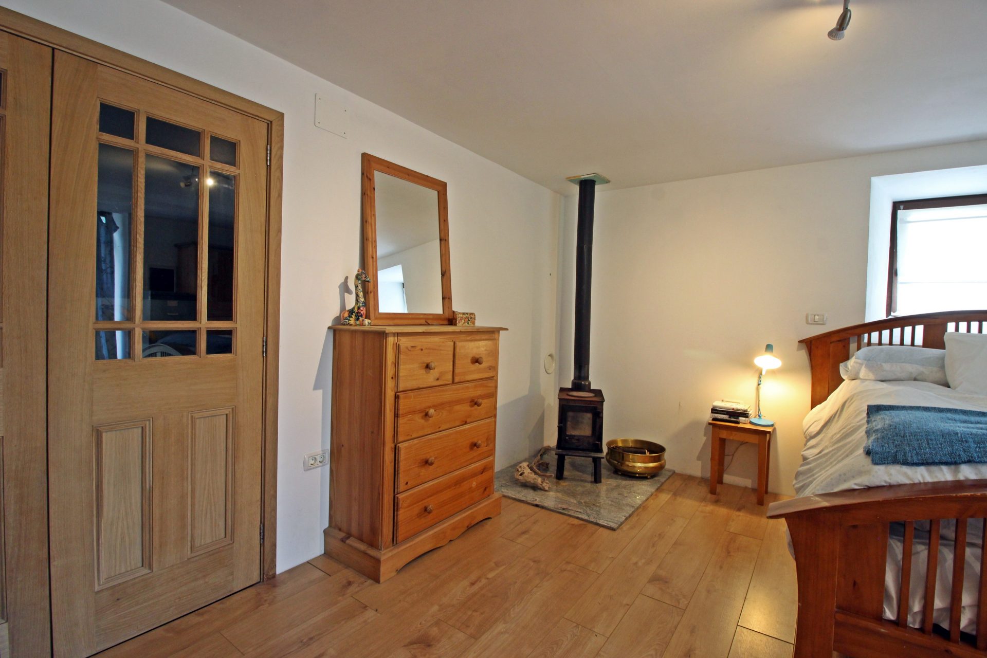V pritličju je ločeno stanovanje s spalnico, kopalnico in glasbenim studiem.