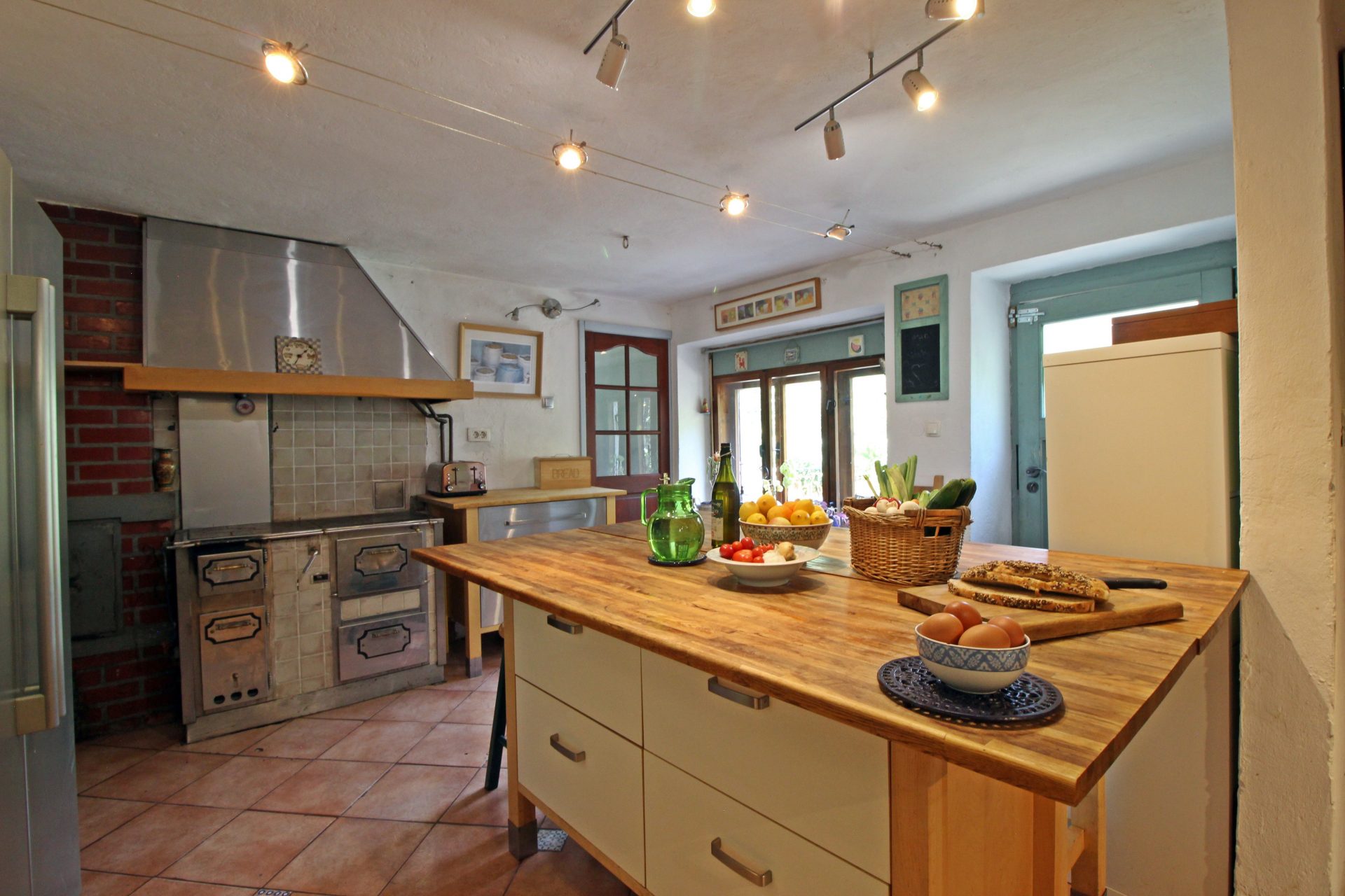 V pritličju se nahaja velika, prostorna in profesionalno opremljena kuhinja z dostopom do čudovitega vrta.