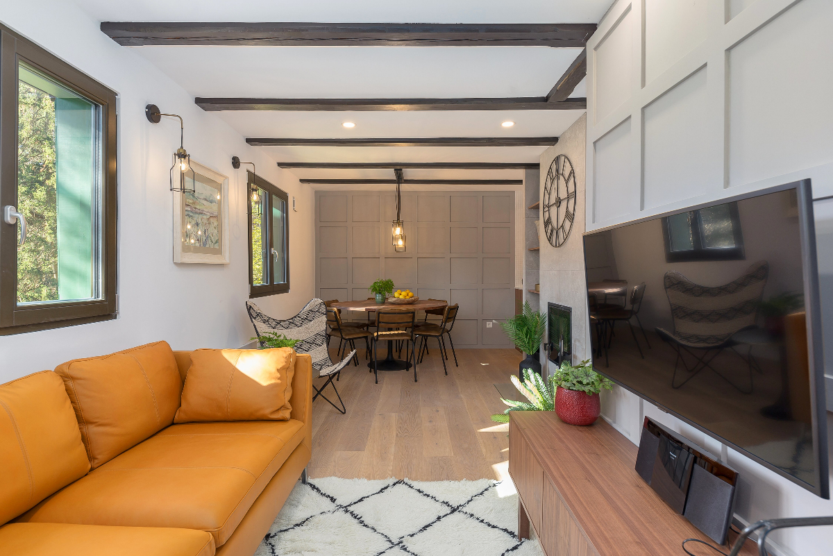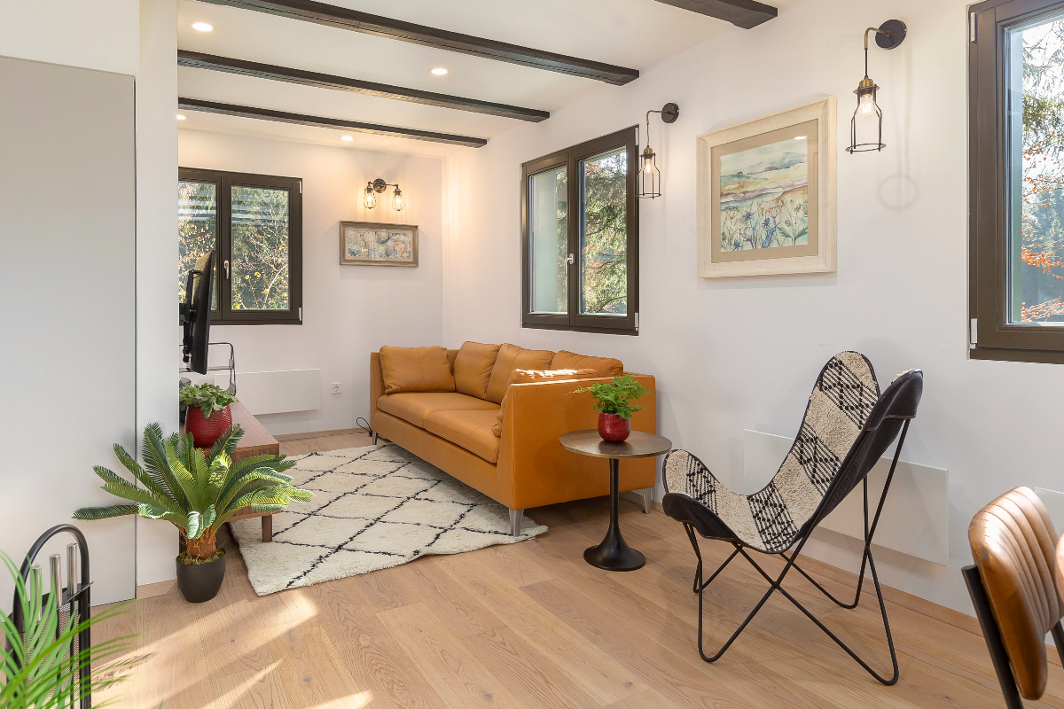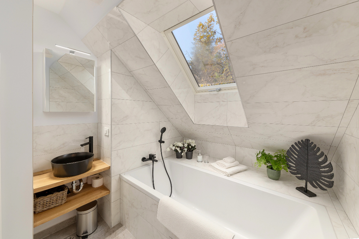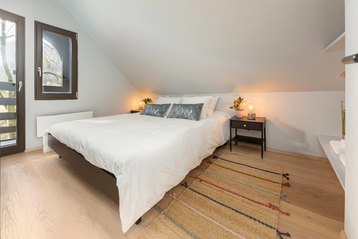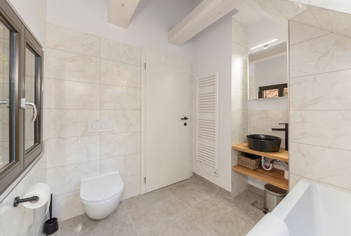 Koča obsega tri spalnice, dve kopalnici, ena s kadjo.