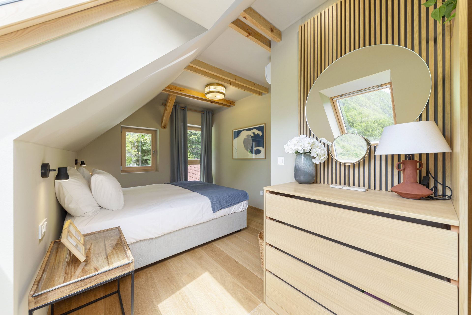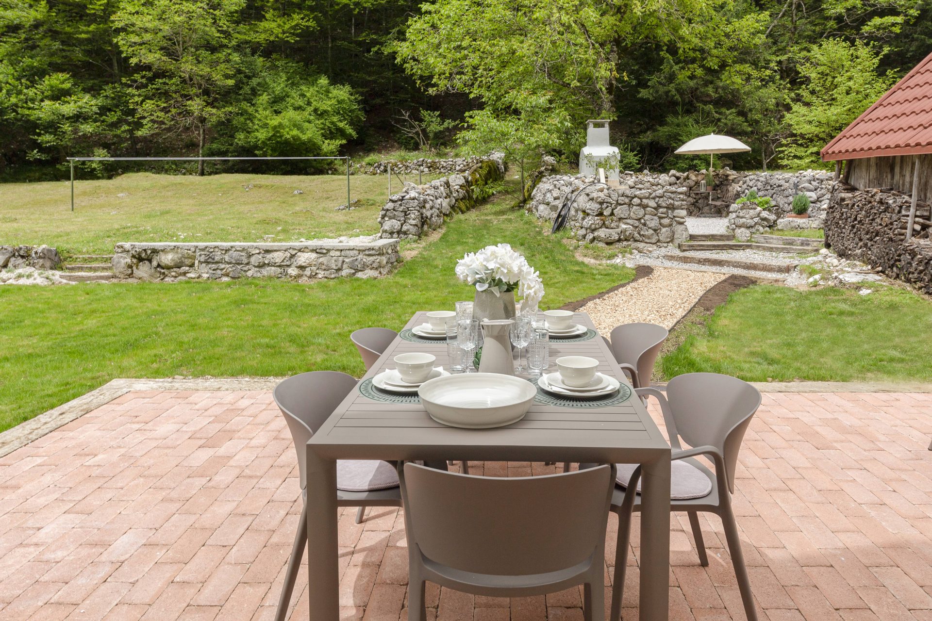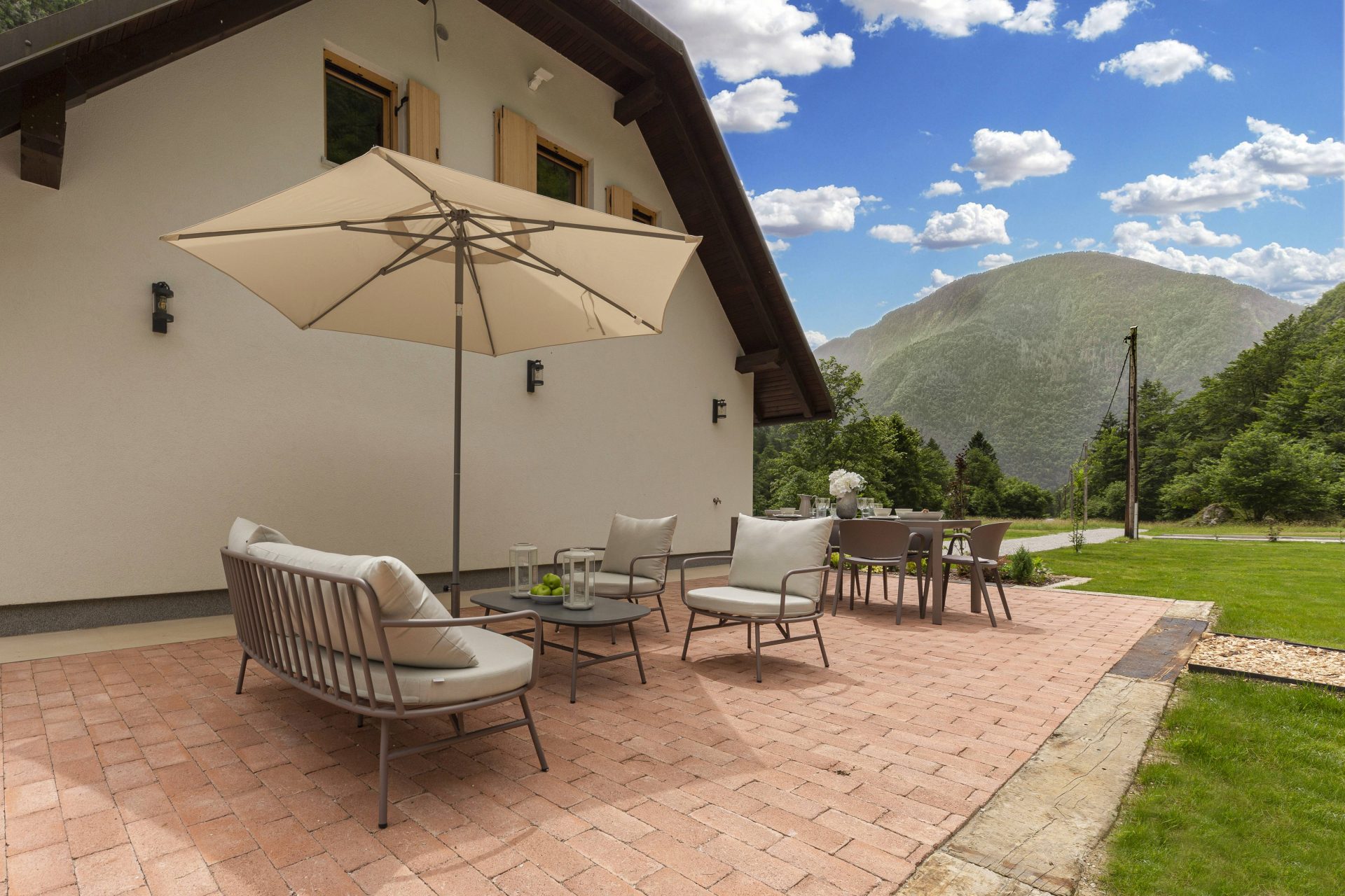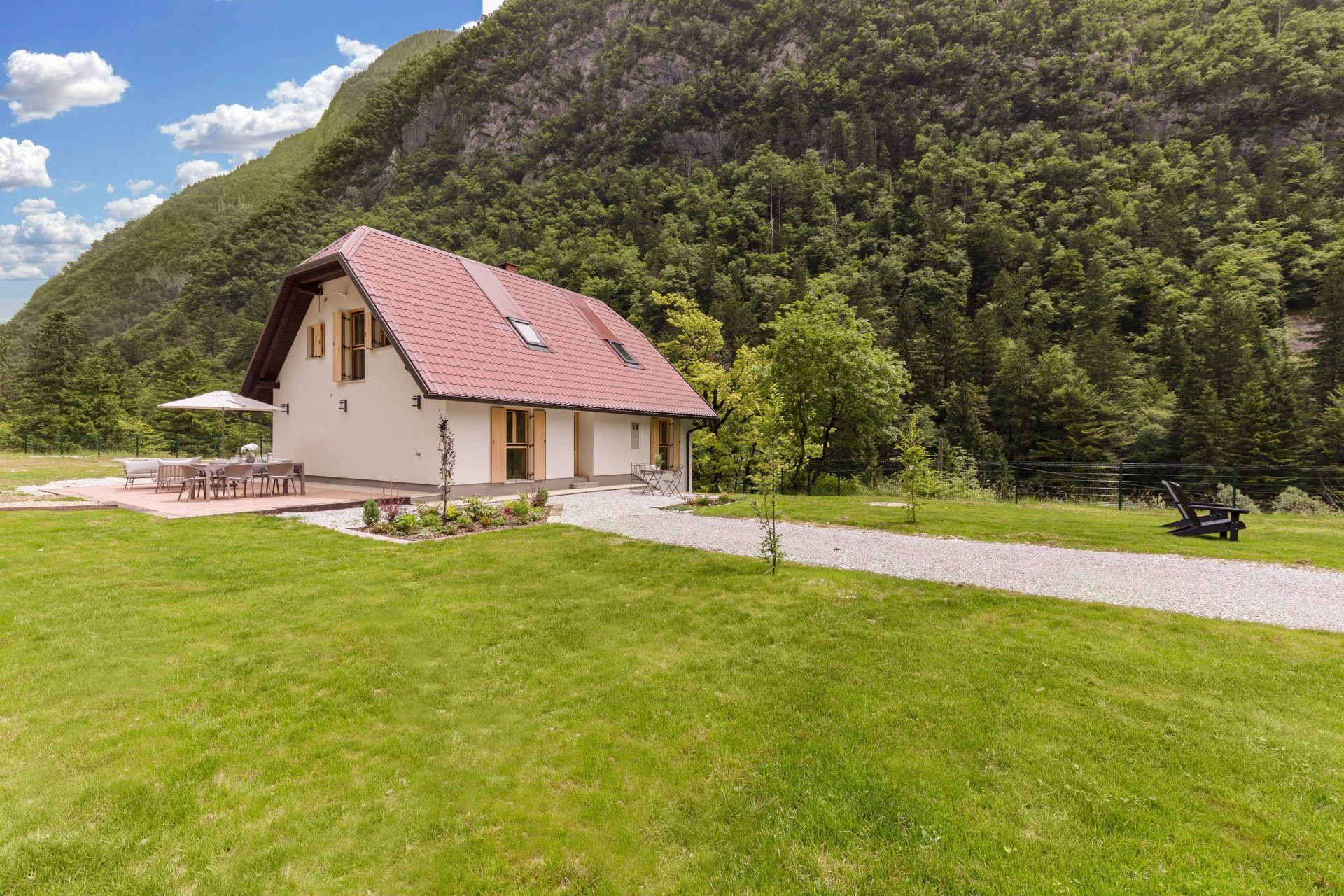 "Great house, everything new, very clean, fully and well equipped to live, with wonderful 360 degree mountain views. Huge garden and nature around, with all terrace equipment. Even better than photos. Just a 2min walk to magnificent Soča river and Soča trail. Secluded place but only 5min drive from restaurants and small markets, 20min drive to Bovec. Very calm during the night to sleep. Very reactive agency. Only small negative for us was motorcycle noise sometimes during the day for baby nap. Otherwise a very calm place. Highly recommend this house / agency." (5 out of 5 )