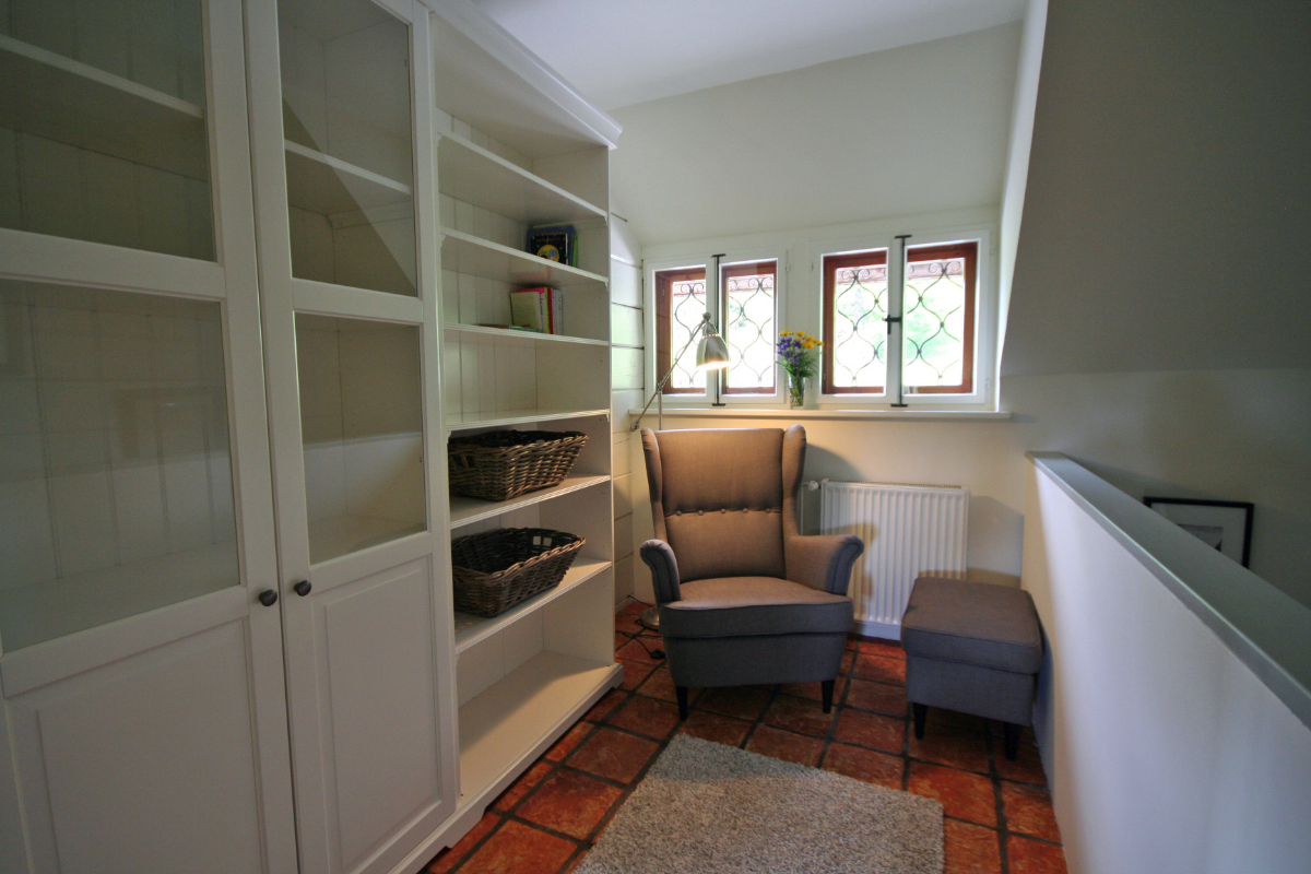 V hiši lahko udobno spi 8 oseb. Pozdravi vas prostoren predprostor, iz katerega se odpira velika dnevna soba z originalnim tramovnim stropom, udobnim kavčem, fotelji, kaminom na drva, satelitsko televizijo in DVD-predvajalnikom, jedilnico in popolnoma opremljeno kuhinjo. Na voljo je tudi shramba/utility s pralnim strojem. V tem nadstropju je tudi kopalnica.