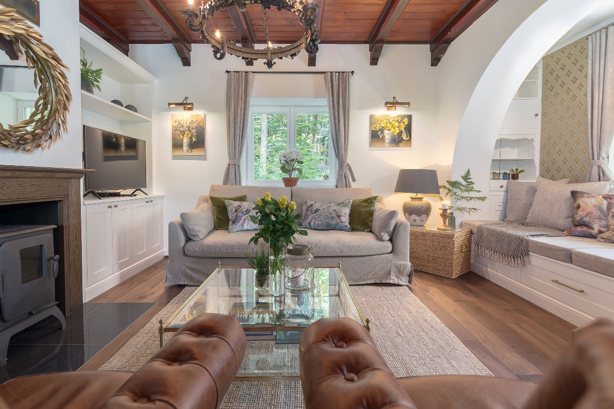 To je čudovita prenovljena hiša blizu obale Bohinjskega jezera.