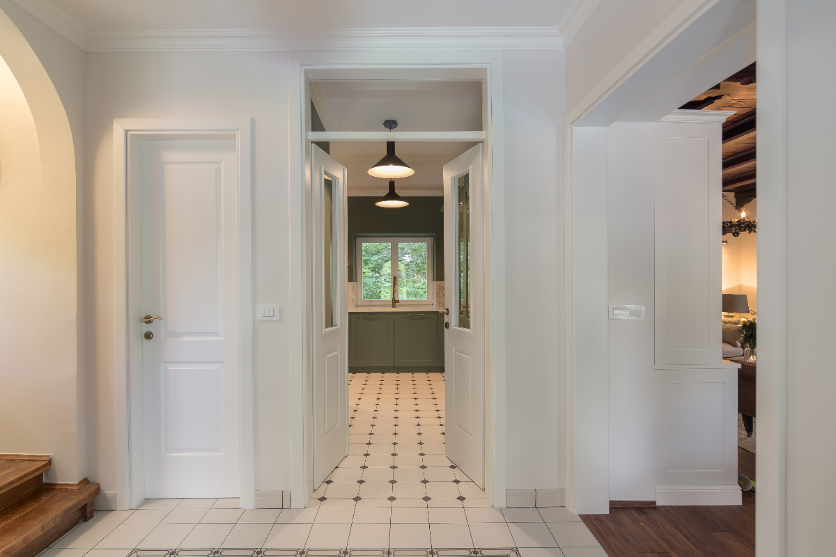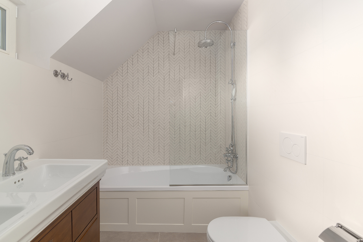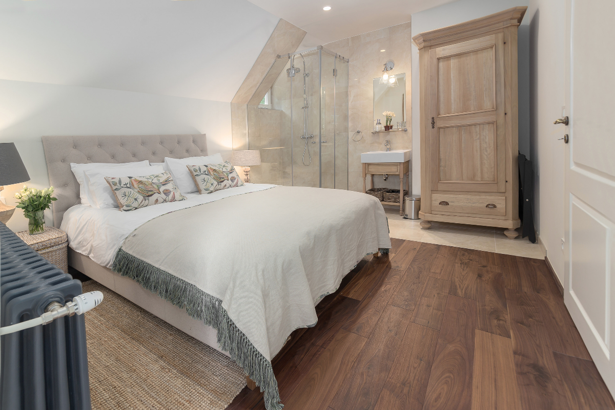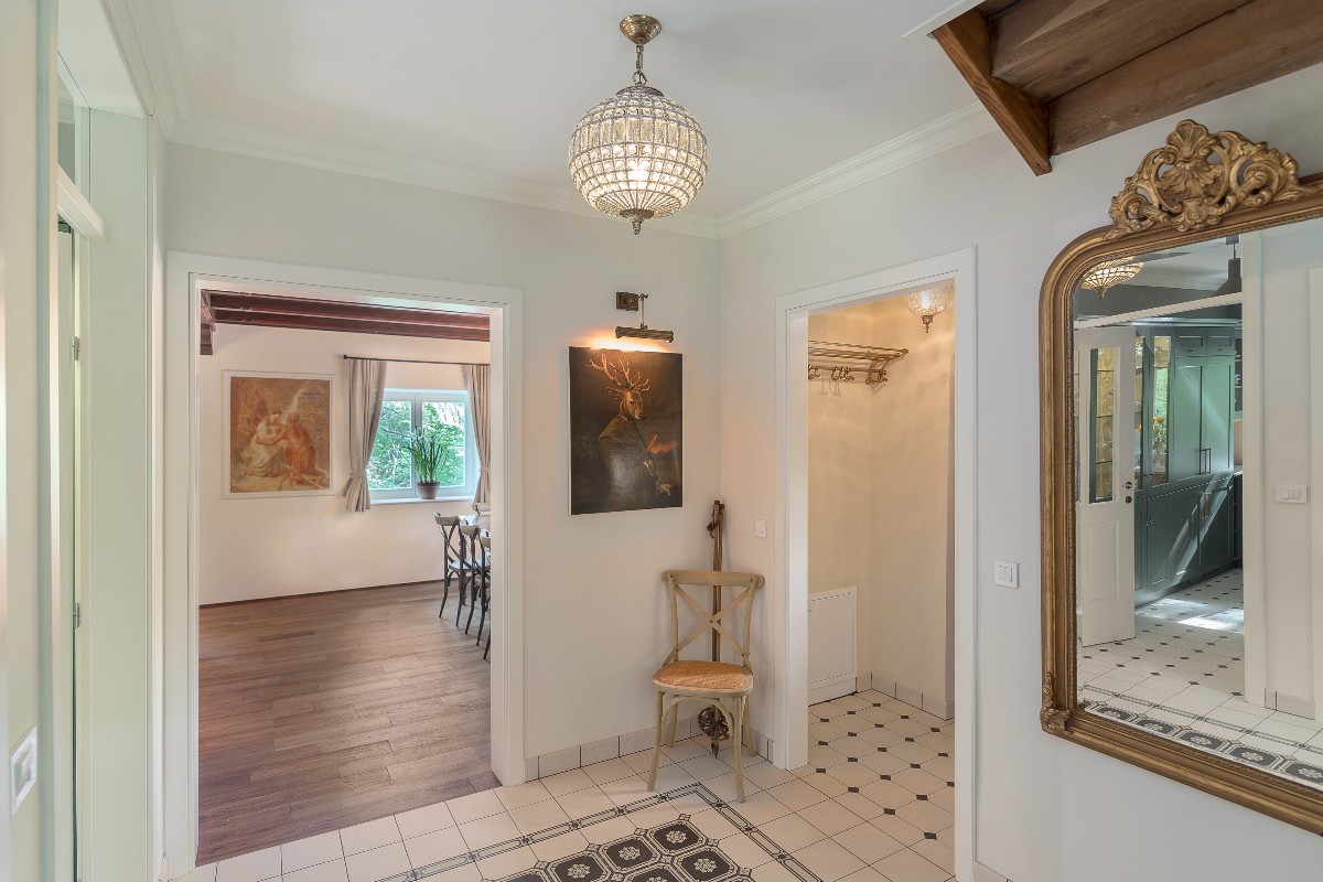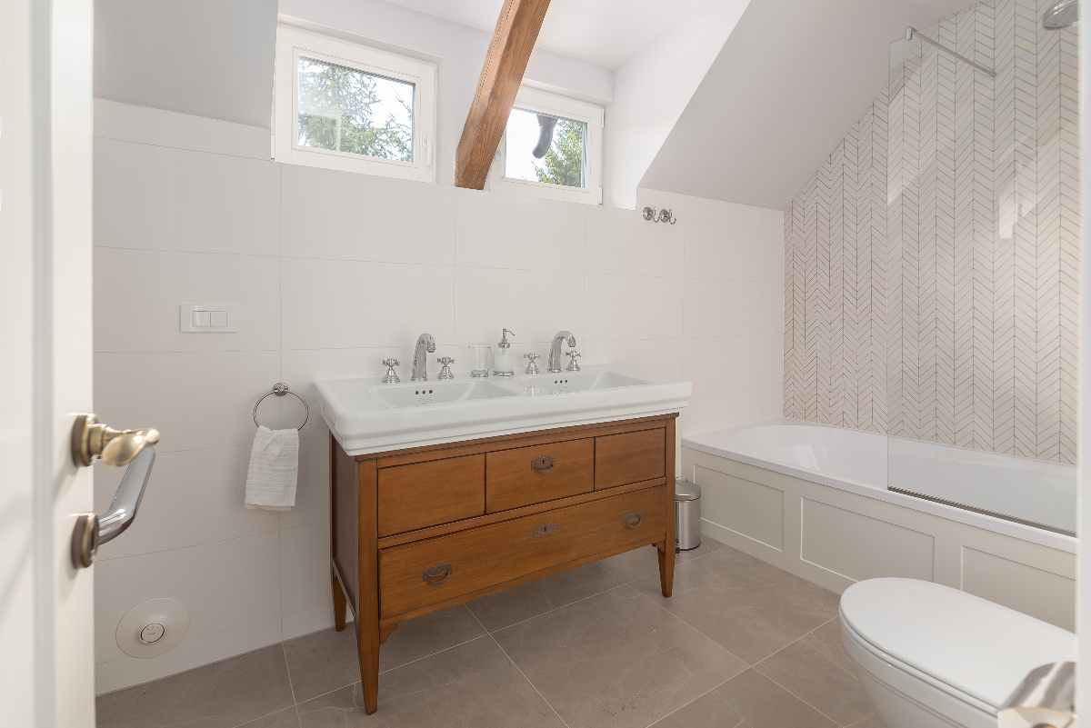 Podrobnosti o kopalnicah: 2 spalnici imata lastno prho in umivalnik, 1 kopalnica s kadjo in prho, 3 ločeni WC-ji.