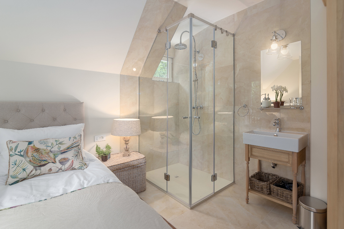 Dve spalnici imata lastno prho in umivalnik.