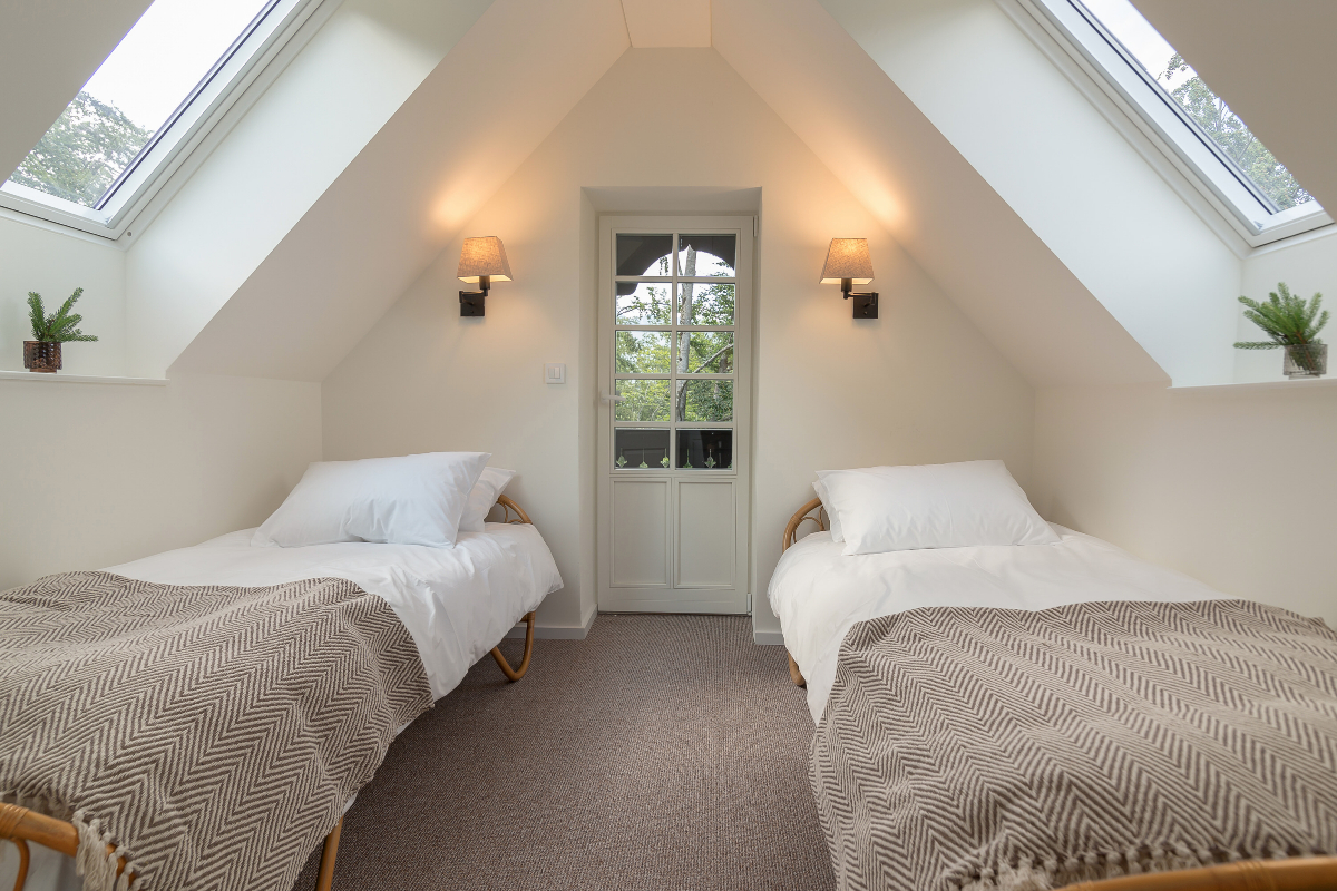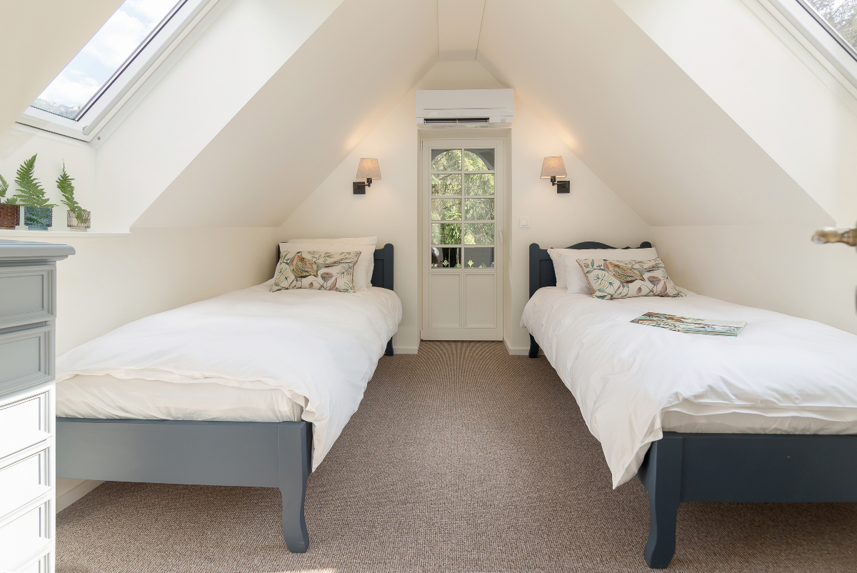 V zgornjem nadstropju se nahaja 5 čudovitih spalnic, tri z zakonsko posteljo in dve spalnici z enojnimi posteljami, ki sta klimatizirani.