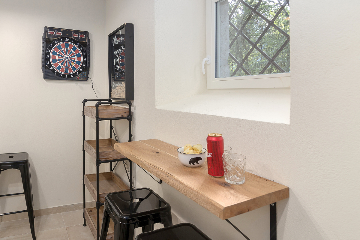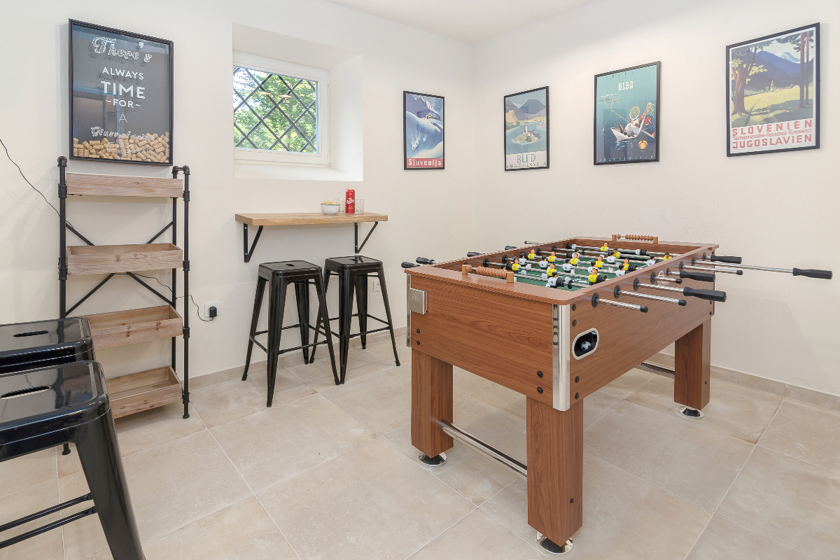 V kleti je igralnica z namiznim nogometom in pikadom ter savna in prostor za prhanje. Na voljo tudi pralni in sušilni stroj.