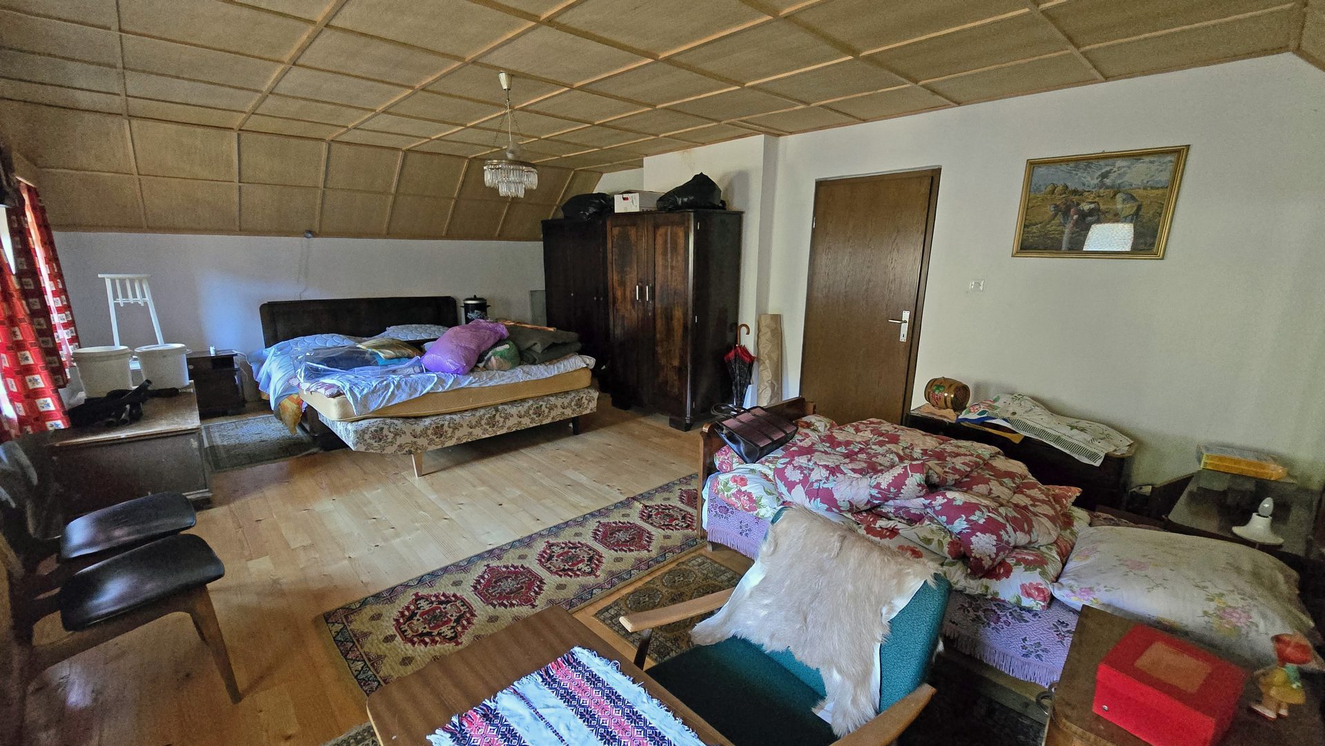 V nadstropju sta dve sobi in večji hodnik.