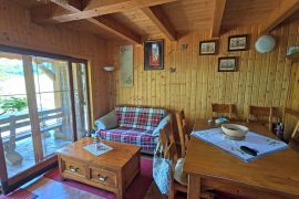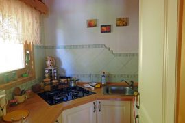 V pritličju je večji prostor s kuhinjo, jedilnico in dnevno sobo. V dnevni sobi je kamin. Dnevna soba je povezana s pokrito teraso, ki se nadaljuje na čudovito zeleno površino, ki ponuja kvalitetno sožitje z naravo. V pritličju je še hodnik in kopalnica z WC-jem.