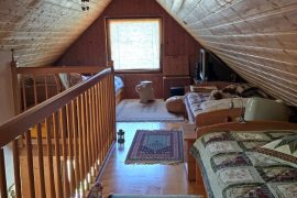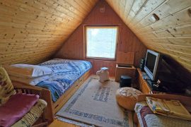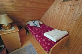 V prvem nadstropju, do katerega pride po lesenem stopnišču se nahaja hodnik s spalnim delom.