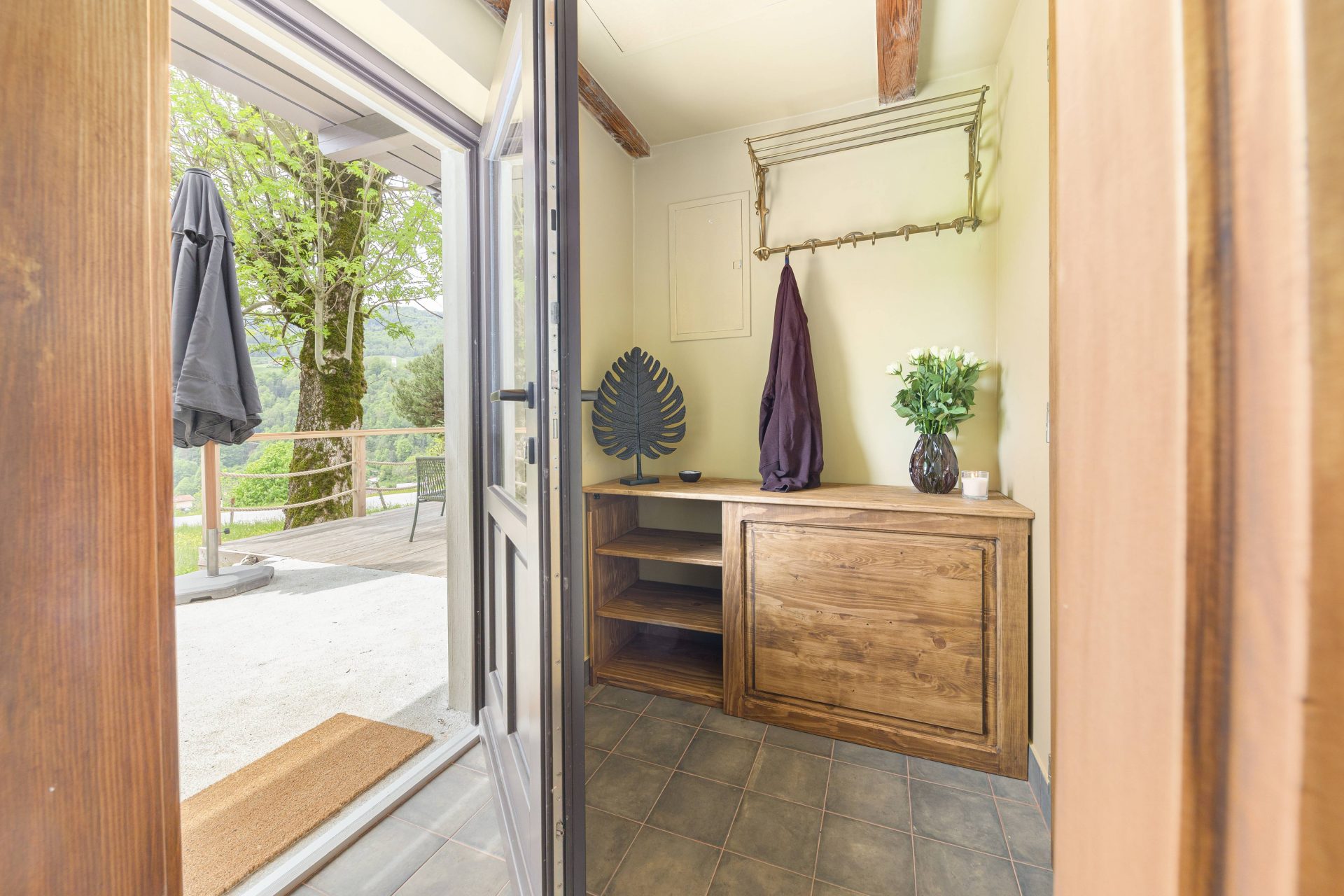 Zunaj se nahaja čudovita lesena terasa, idealna za sproščanje, obedovanje in uživanje v naravi. Nepremičnina stoji na prostorni parceli velikosti 1.636 m², ki nudi veliko zunanjega prostora.