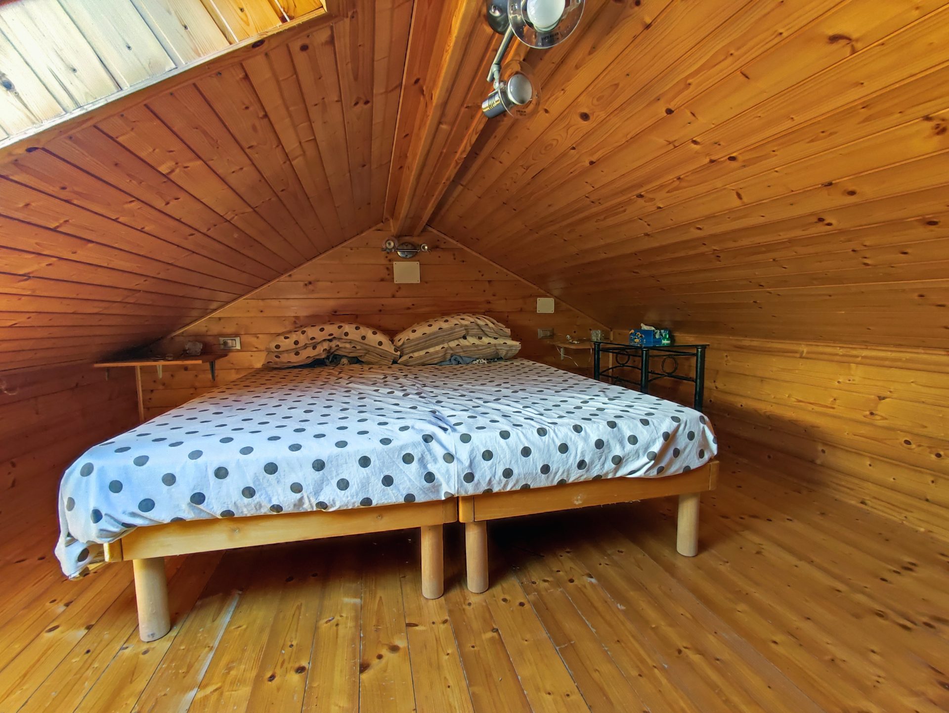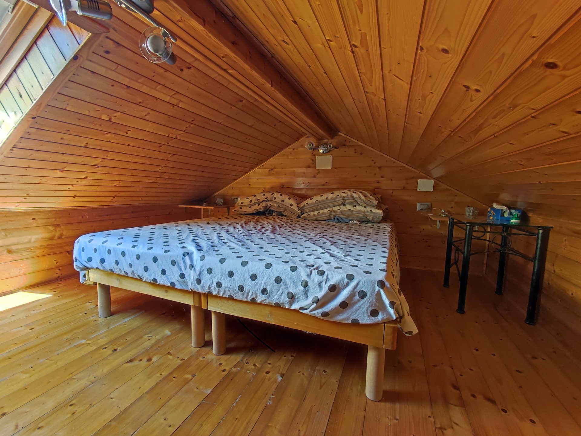 Stopnišče vodi v zgornji spalni del, kjer je prostor za 2 ležišči.