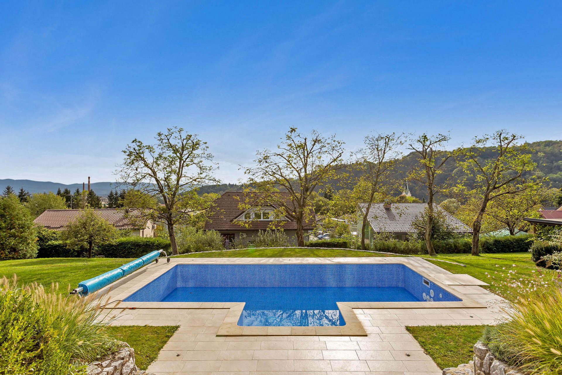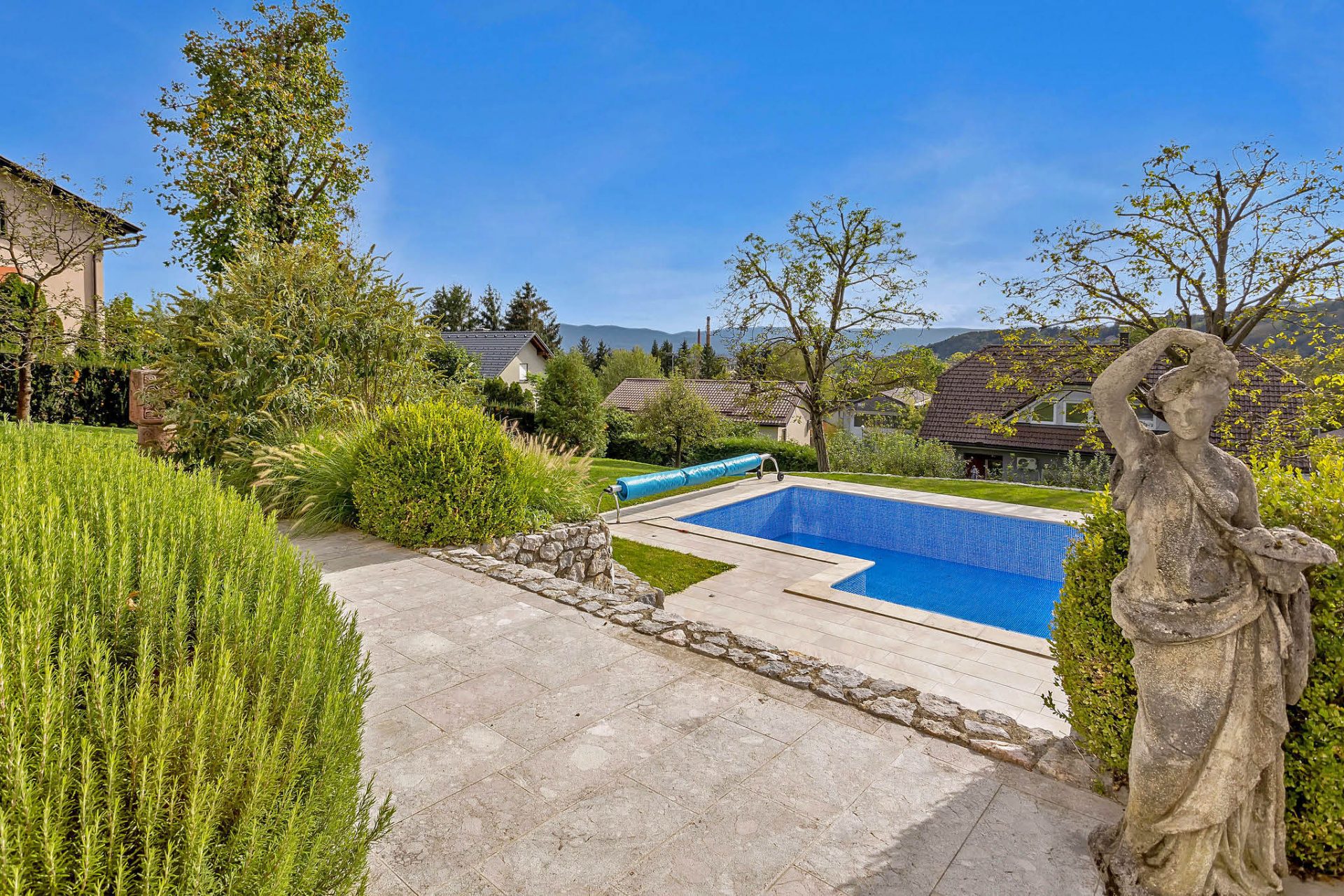 Več teras, po meri zasnovan bazen, dvojna garaža in dodatna parkirna mesta dopolnjujejo to izjemno nepremičnino.