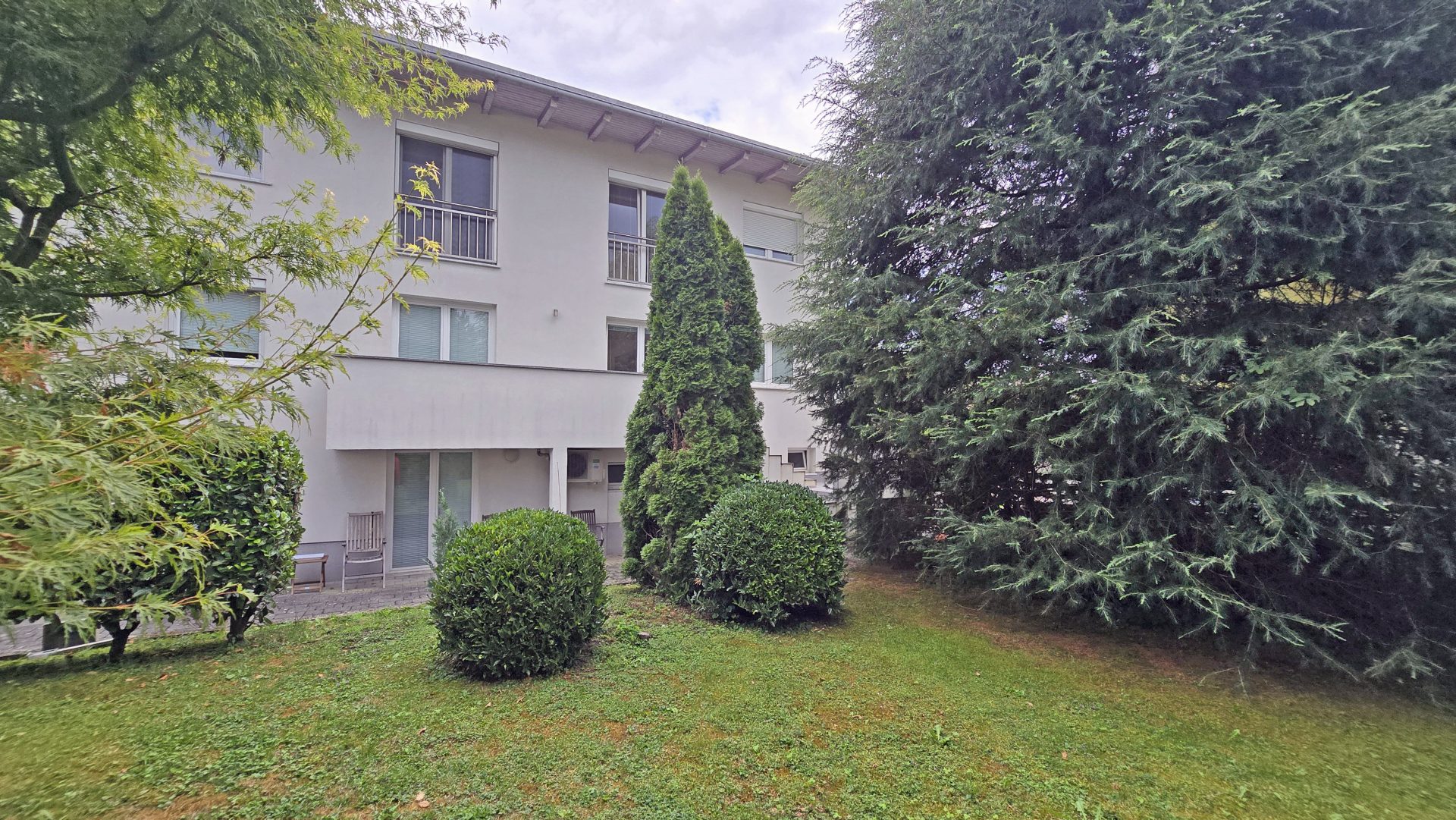 Pritličje zavzema prvo stanovanje, ki meri 144,80 m². Obsega kopalnico, kuhinjo, jedilnico, dnevni prostor, dve spalnici (od tega ena z izhodom na balkon) ter dodatno sobo, ki se lahko prilagodi različnim potrebam. Stanovanju pripadata še garaža velikosti 24,50 m² in klet v izmeri 9,40 m².