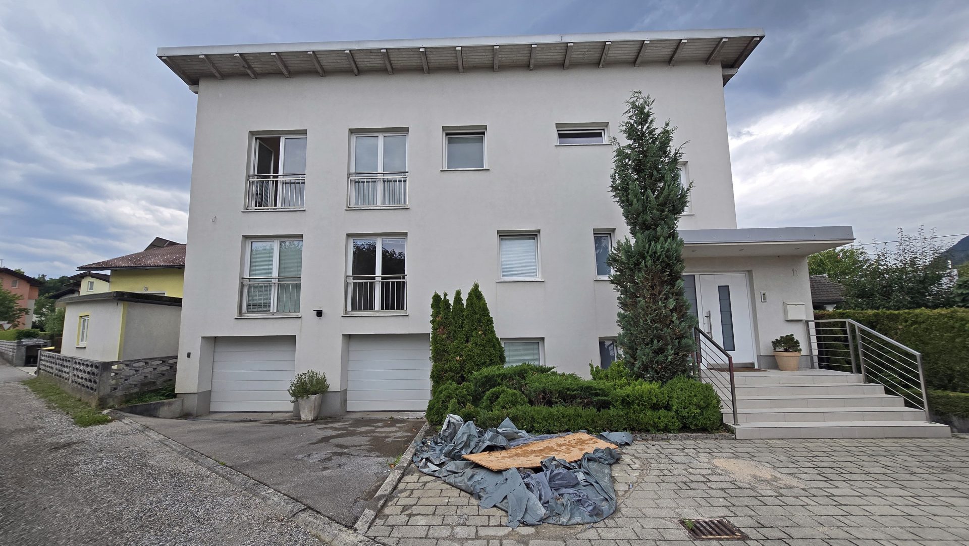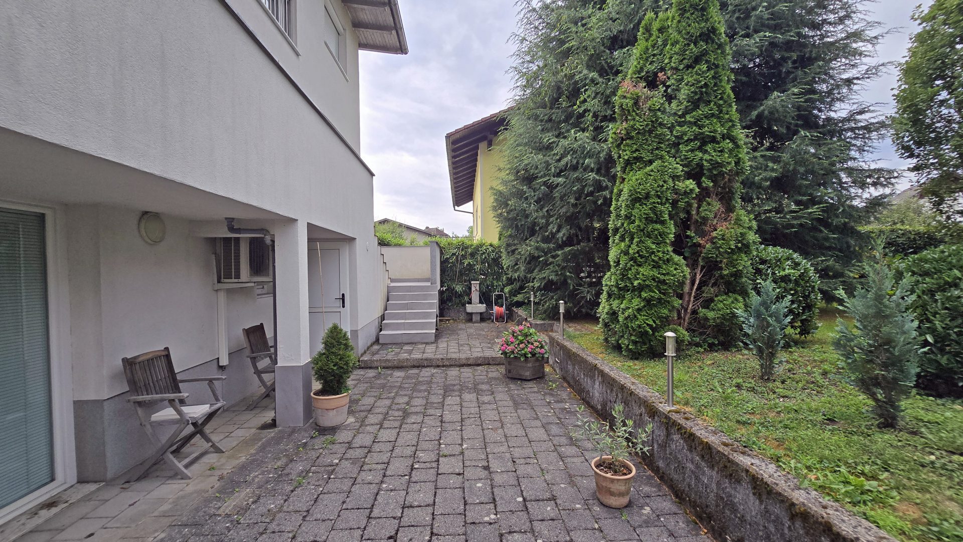 Pred hišo in ob njej je na voljo dovolj parkirnih mest – skupaj je prostora za najmanj šest avtomobilov, delno v zaprtih garažah in delno na tlakovanem dvorišču.