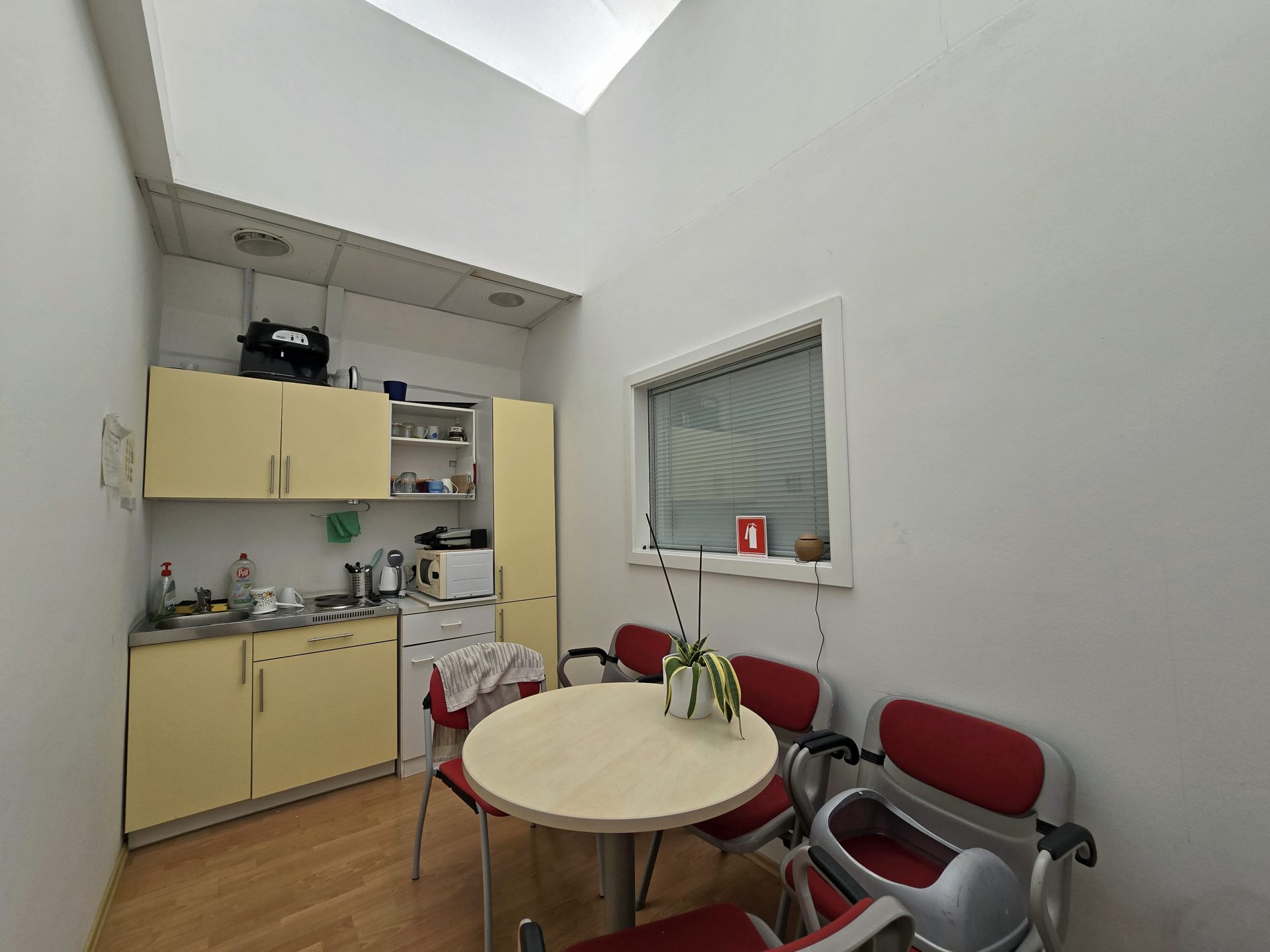 Prostor je klimatiziran in priključen na toplarno, kar zagotavlja prijetno delovno okolje skozi vse leto. Uporabnikom je na voljo tudi skupna kuhinja, primerna za pripravo obrokov ali krajši oddih med delom.