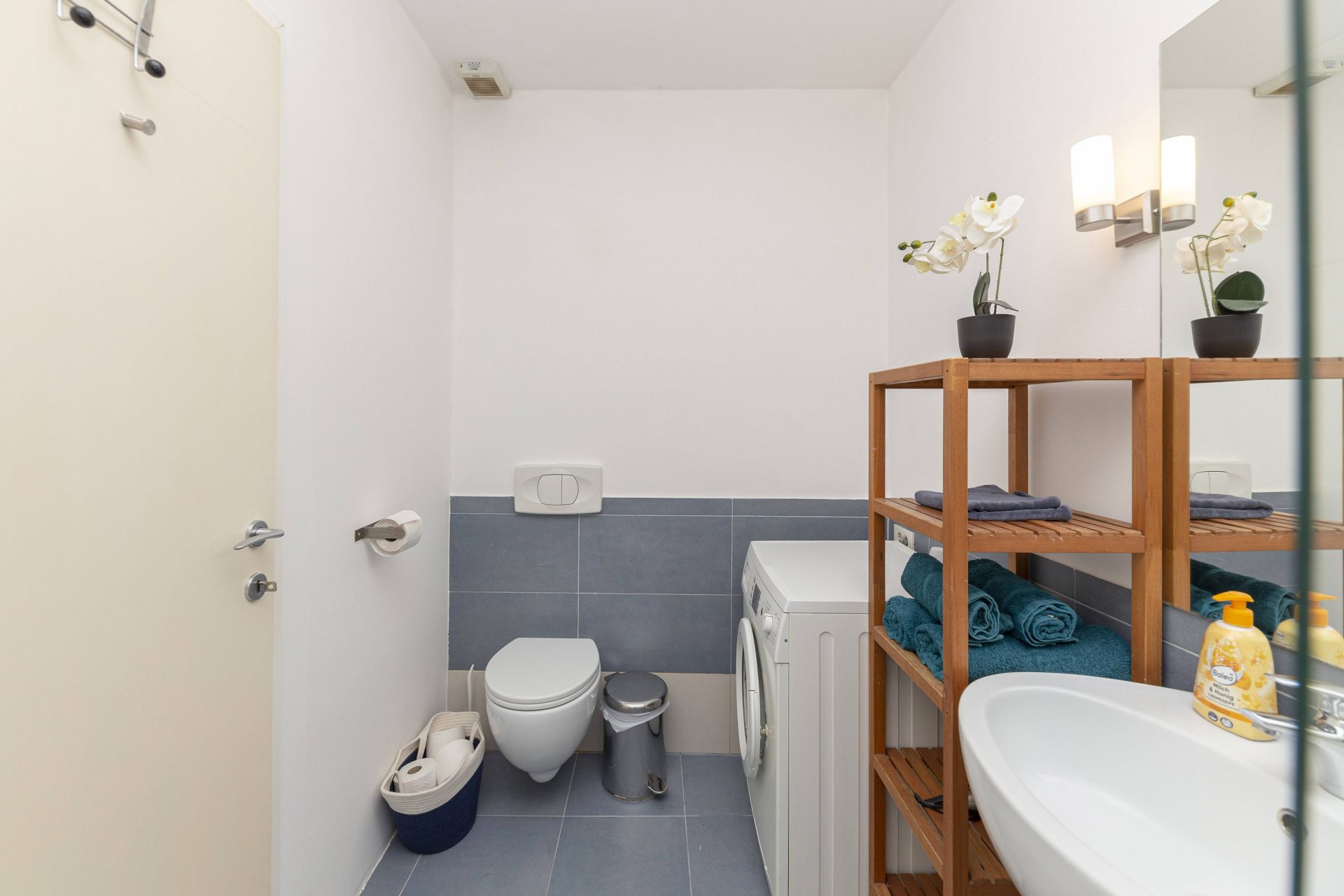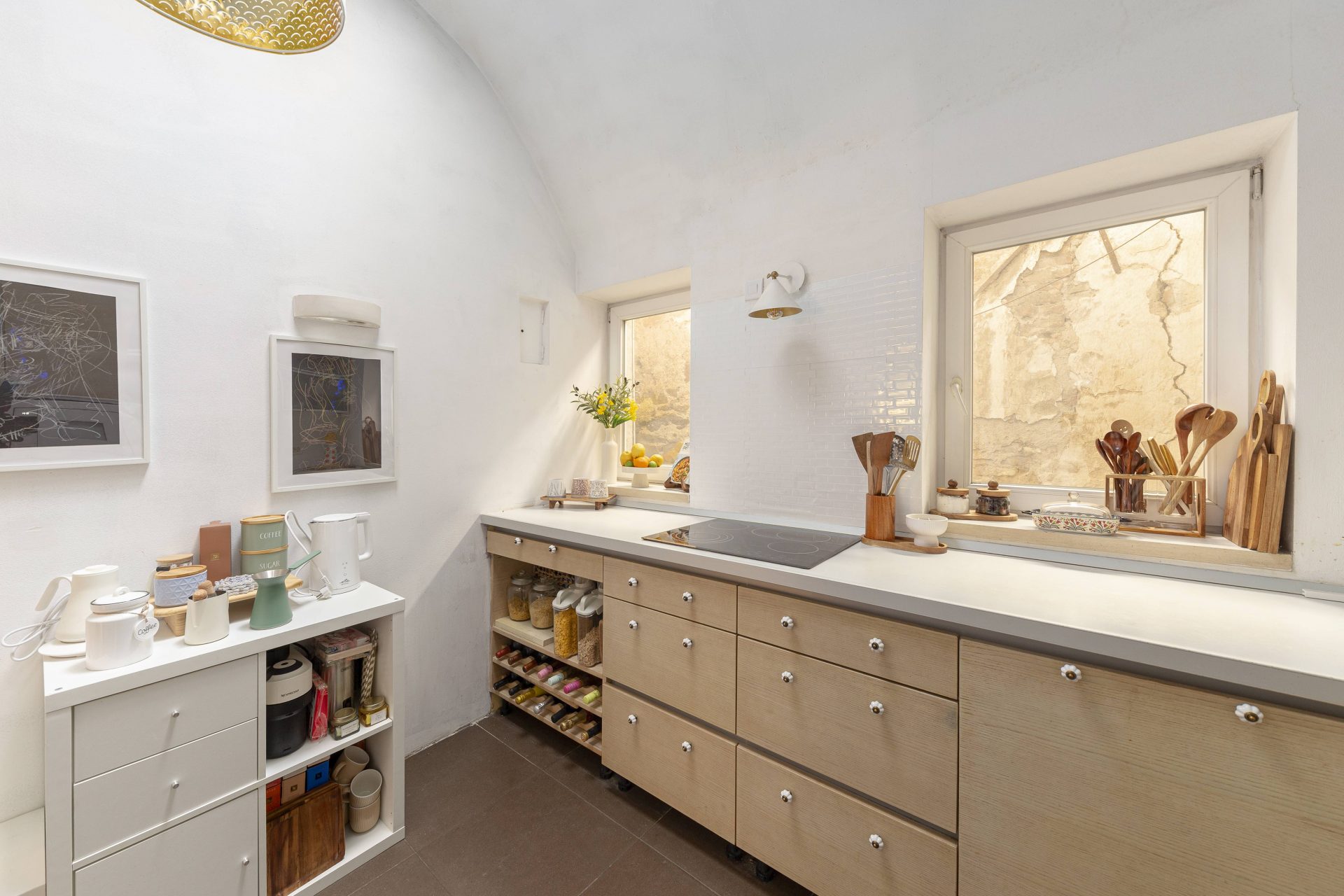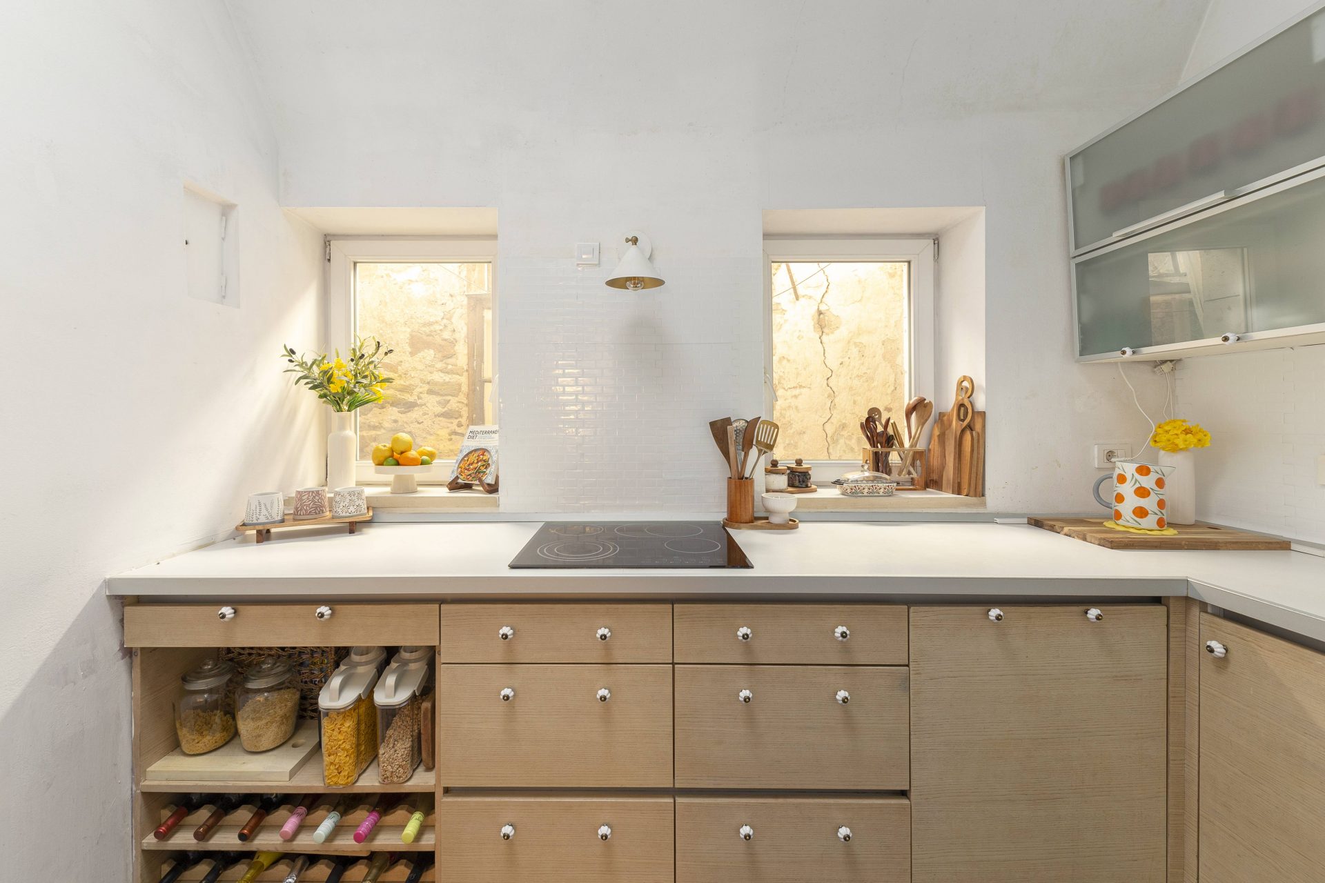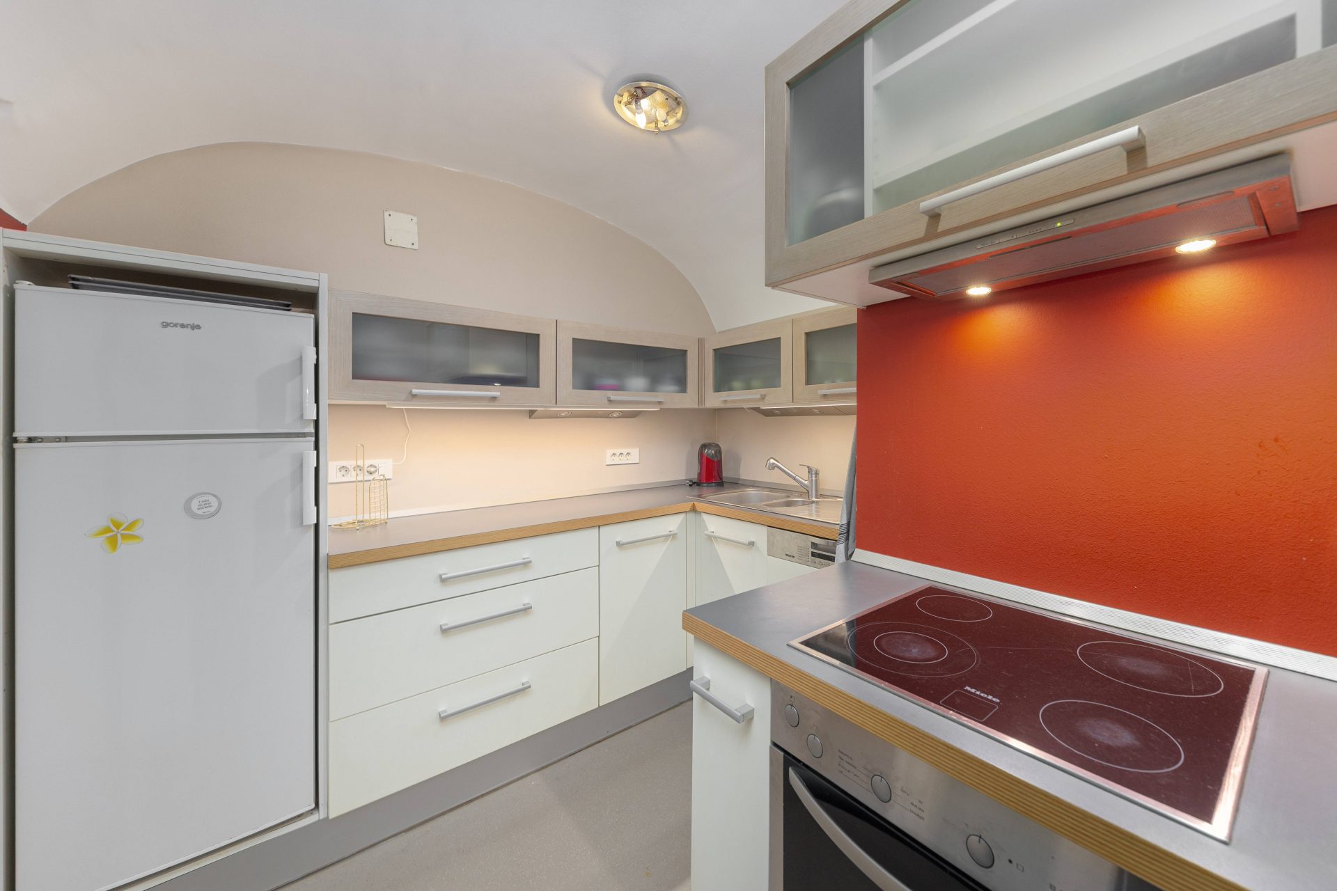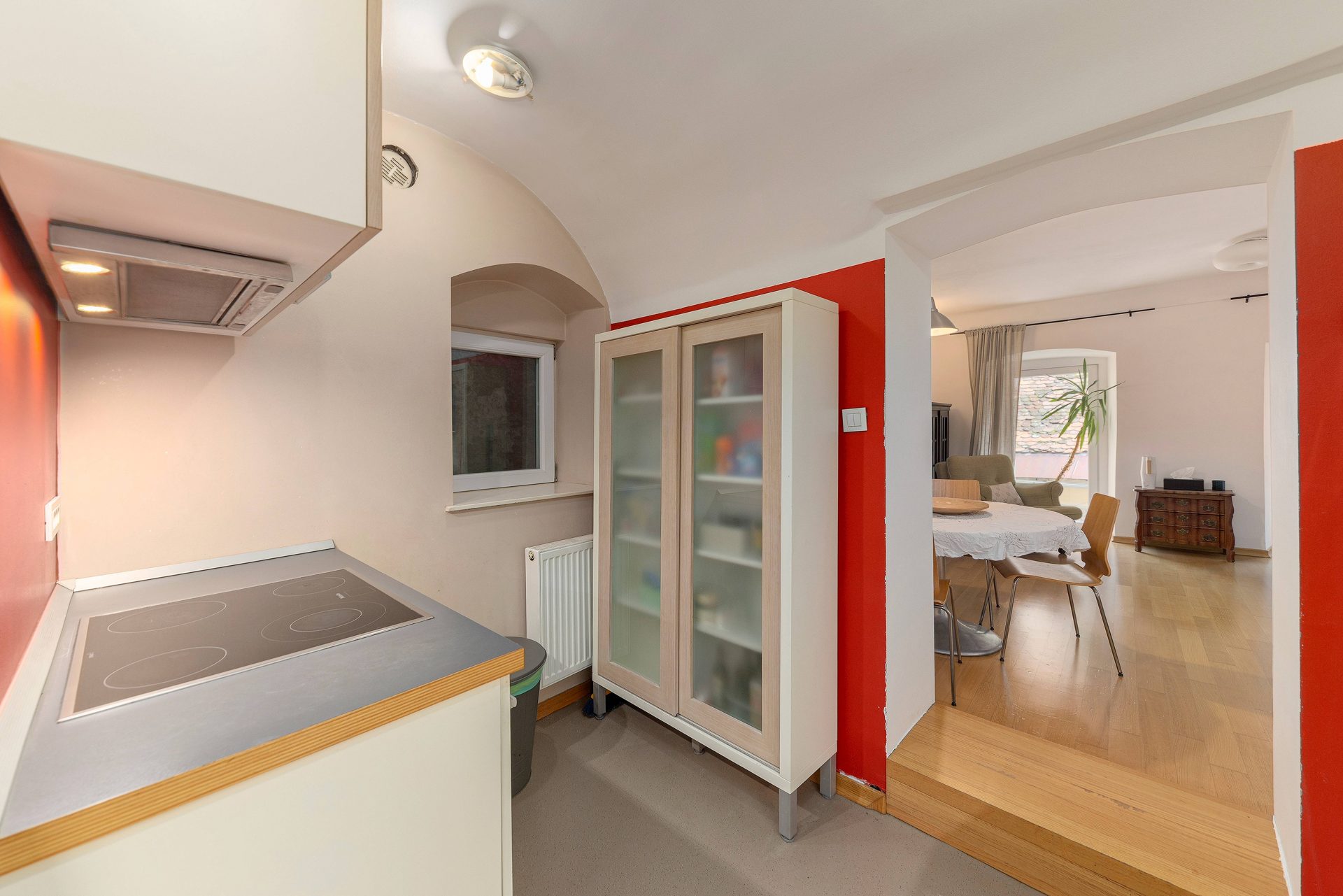 Manjša enota je veliko približno 64 m2 in obsega hodnik, prostorno kuhinjo ter veliko dnevno sobo z jedilnico. Vrata iz dnevne sobe vodijo v čudovito spalnica z neposrednim dostopom do garderobne sobe. S hodnika sta še kopalnica in shramba. Iz dnevne sobe in spalnice je razgled na Gornji trg.
