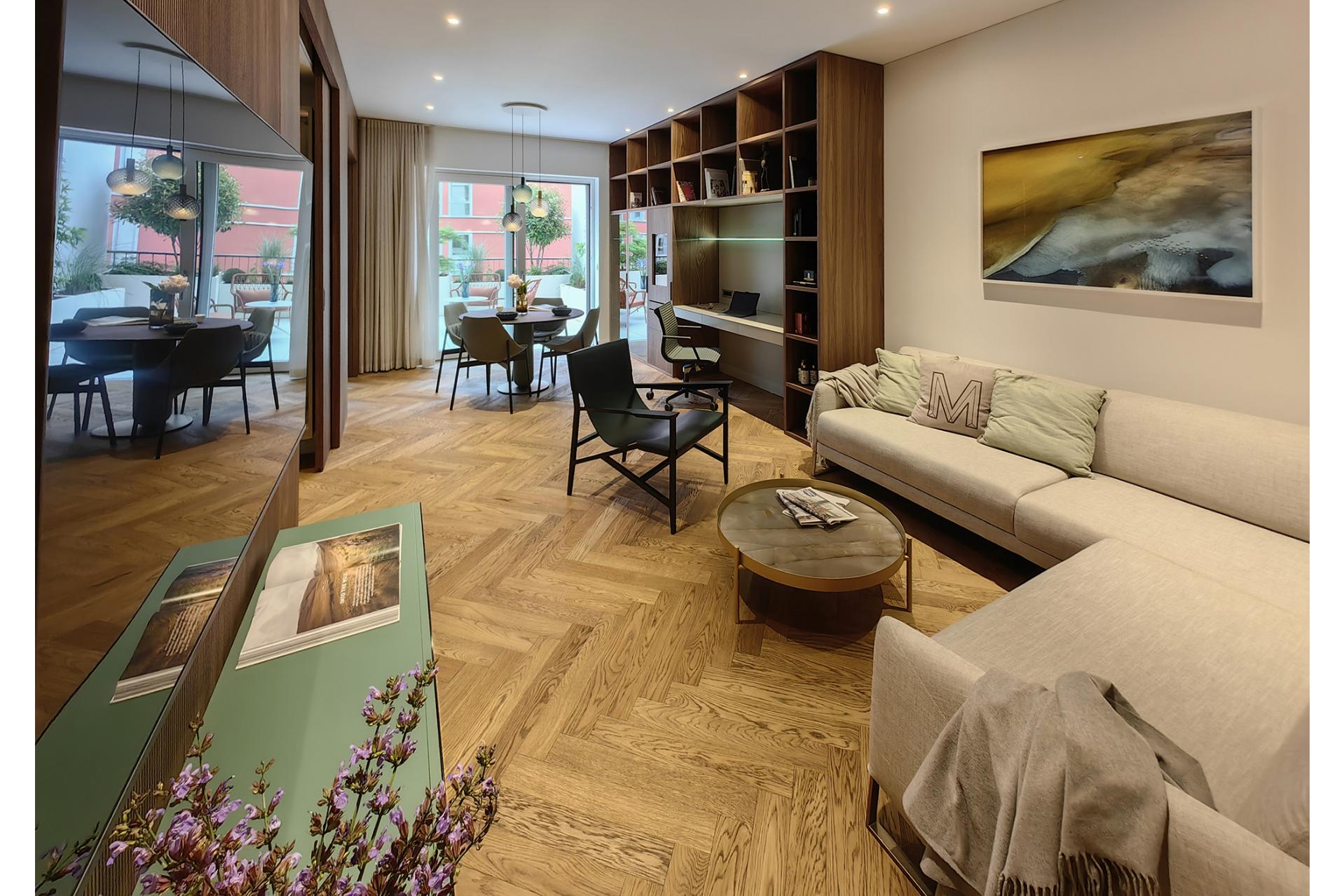 V novozgrajeni stavbi v samem središču Ljubljane (dokončana leta 2023) se nahaja vrhunsko dvosobno stanovanje s skupno površino 110,50 m², od tega 67,80 m² bivalne površine. Stanovanje se nahaja v 1. nadstropju sedemnadstropne stavbe z dvigalom, je zahodno orientirano in opremljeno z visoko kakovostnim pohištvom ter vključuje eno parkirno mesto v garaži.