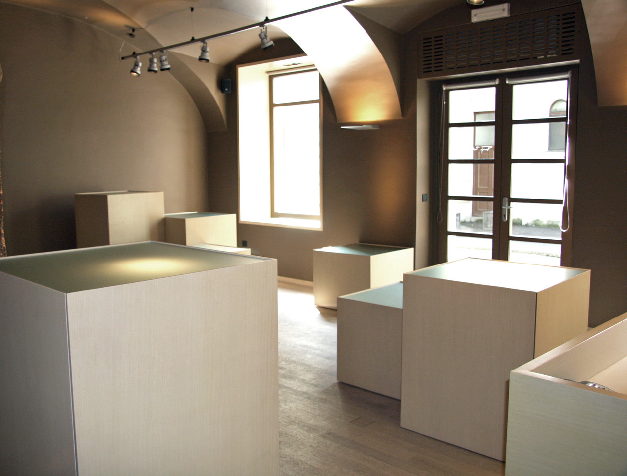- Razporeditev: odprt glavni prostor, primeren za sprejem strank, predstavitev izdelkov ali organizacijo razstav