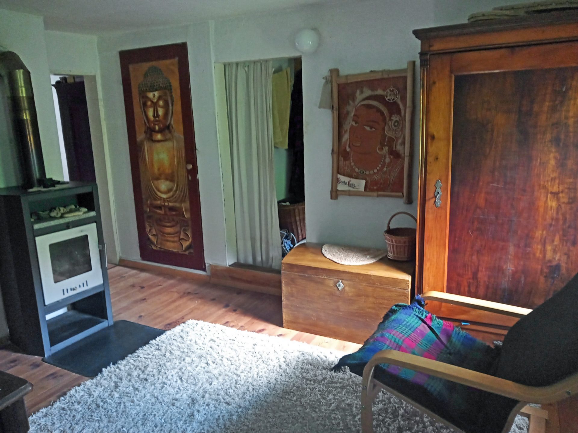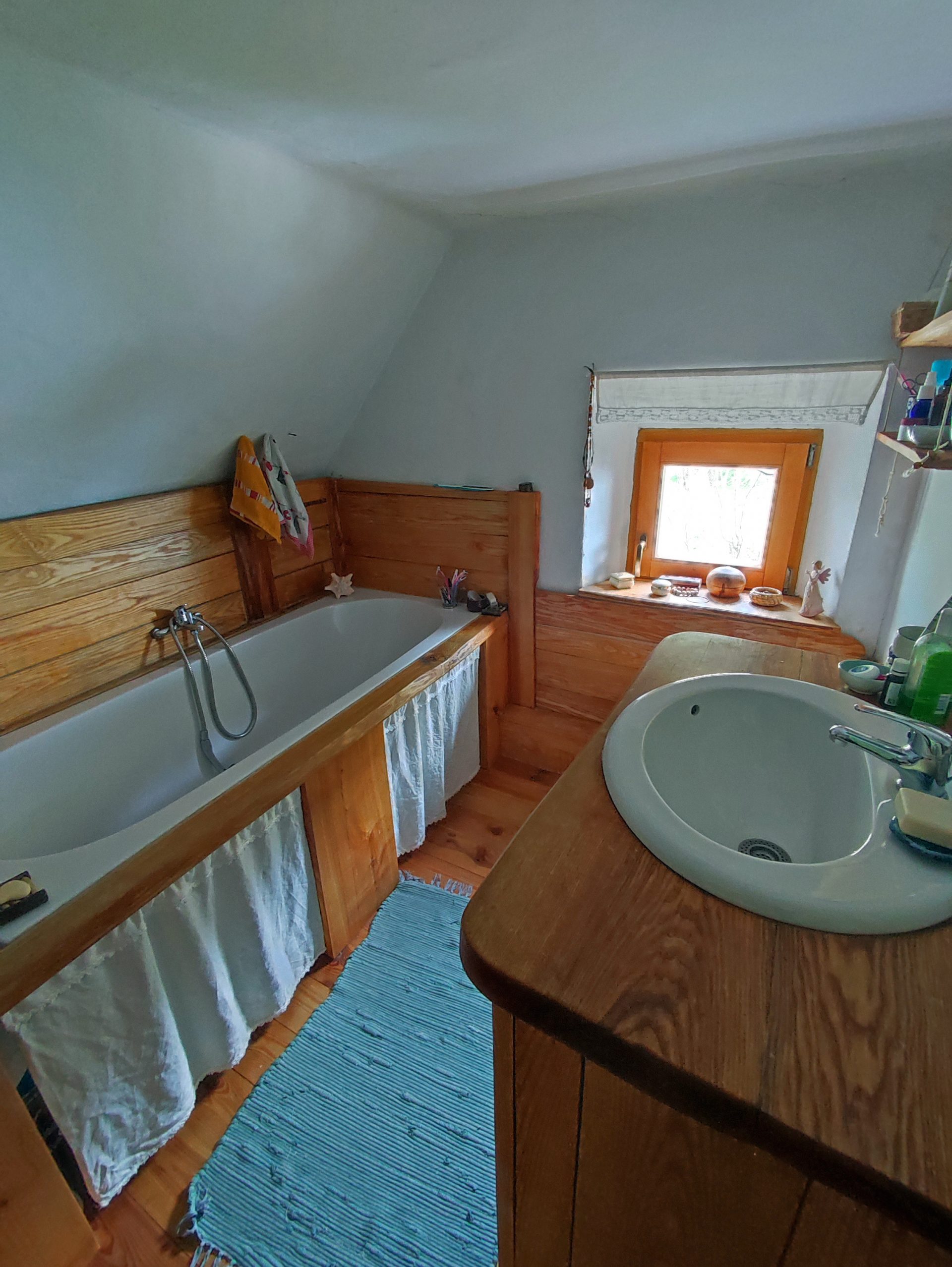Hiša je priključena na električno omrežje, ima pa tudi nov solarni električni sistem. Ogrevanje na drva. Voda v hiši je deževnica, ki ima zalogovnik v kleti.