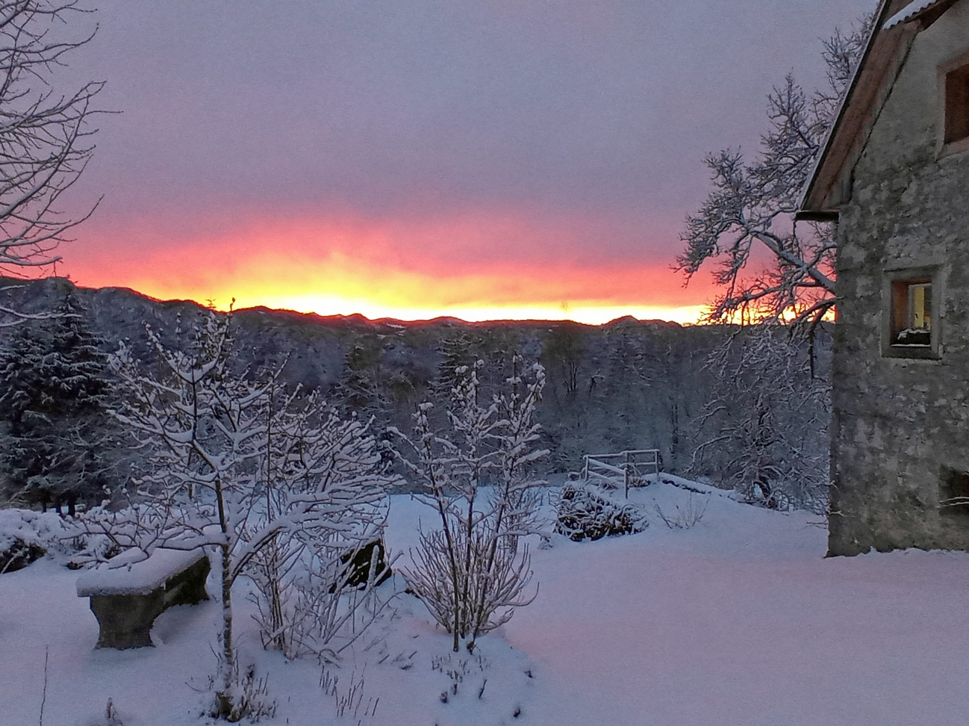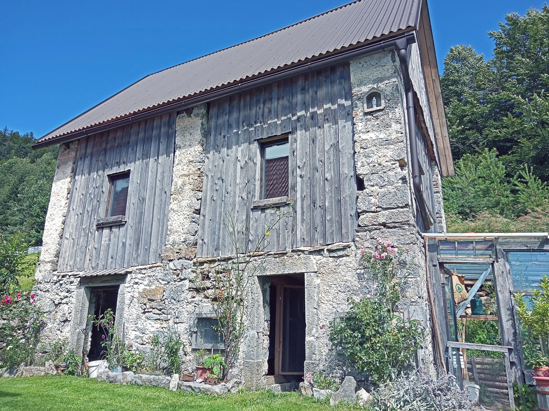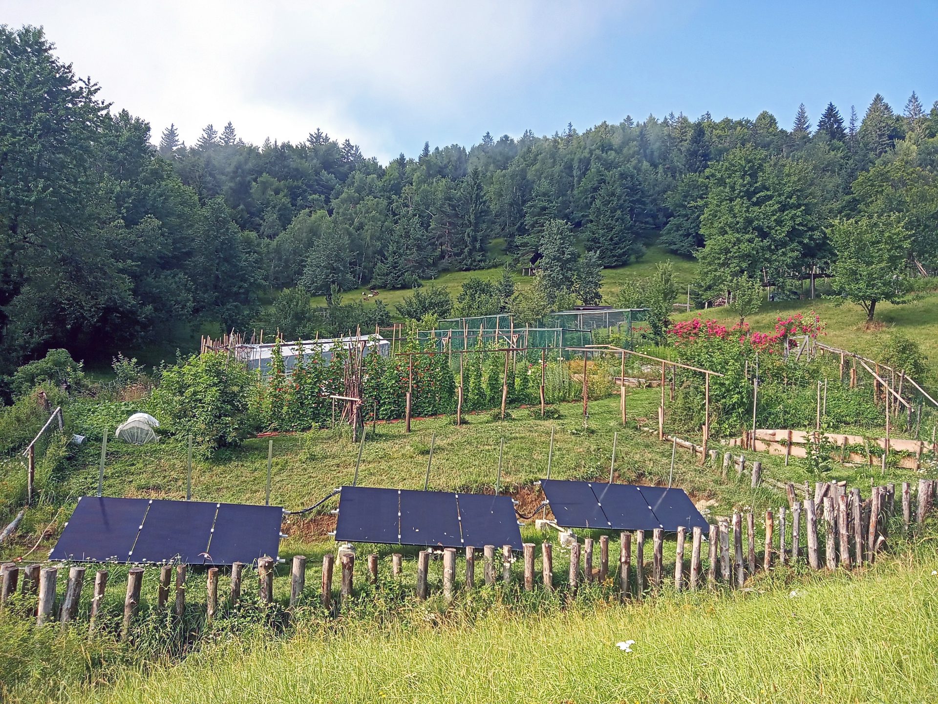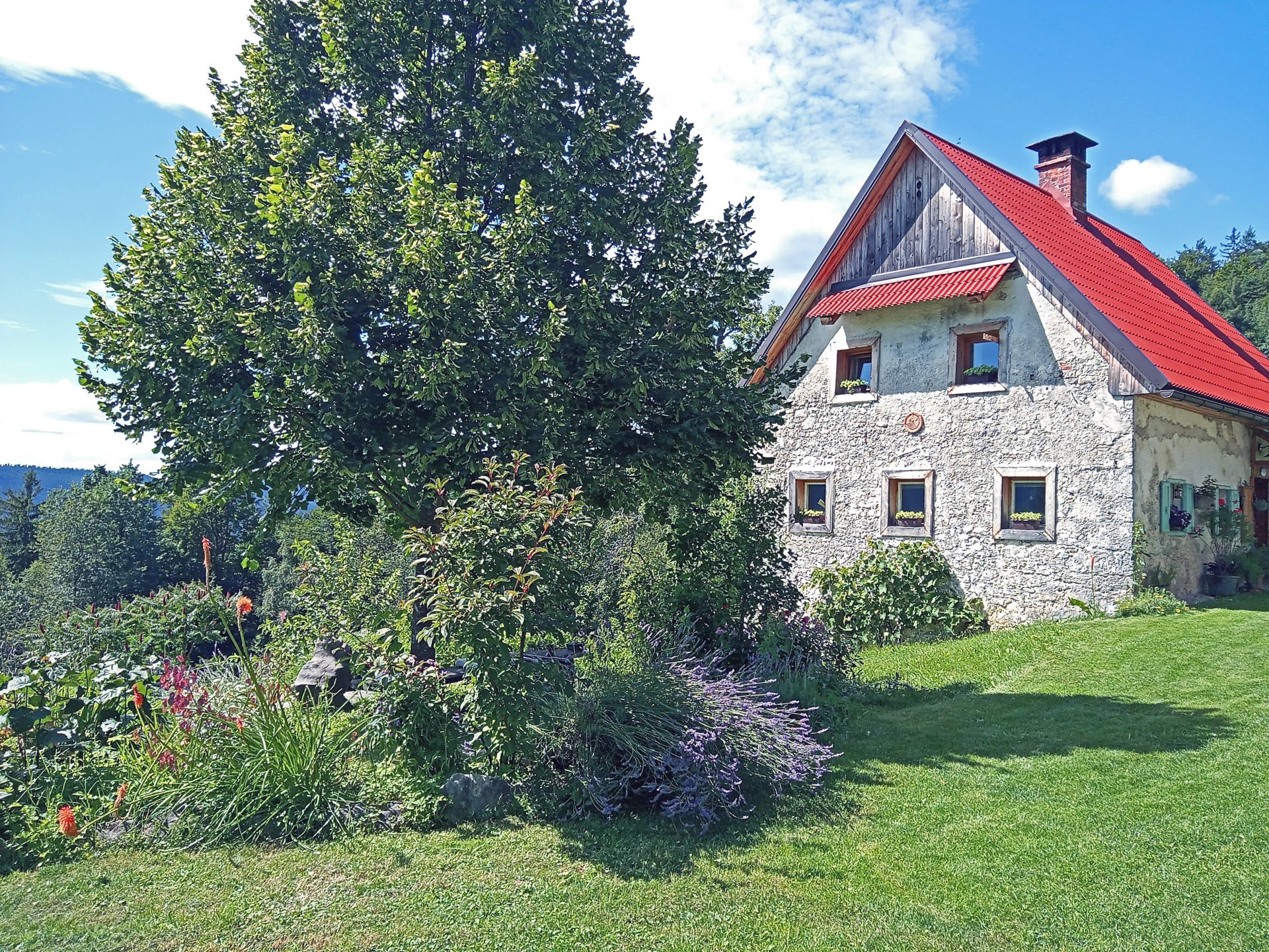 Okoli hiše je nekaj ravnega zemljišča. Ostalo so travniki in gozd, skupaj v izmeri cca 40.000 m2 zemljišča.