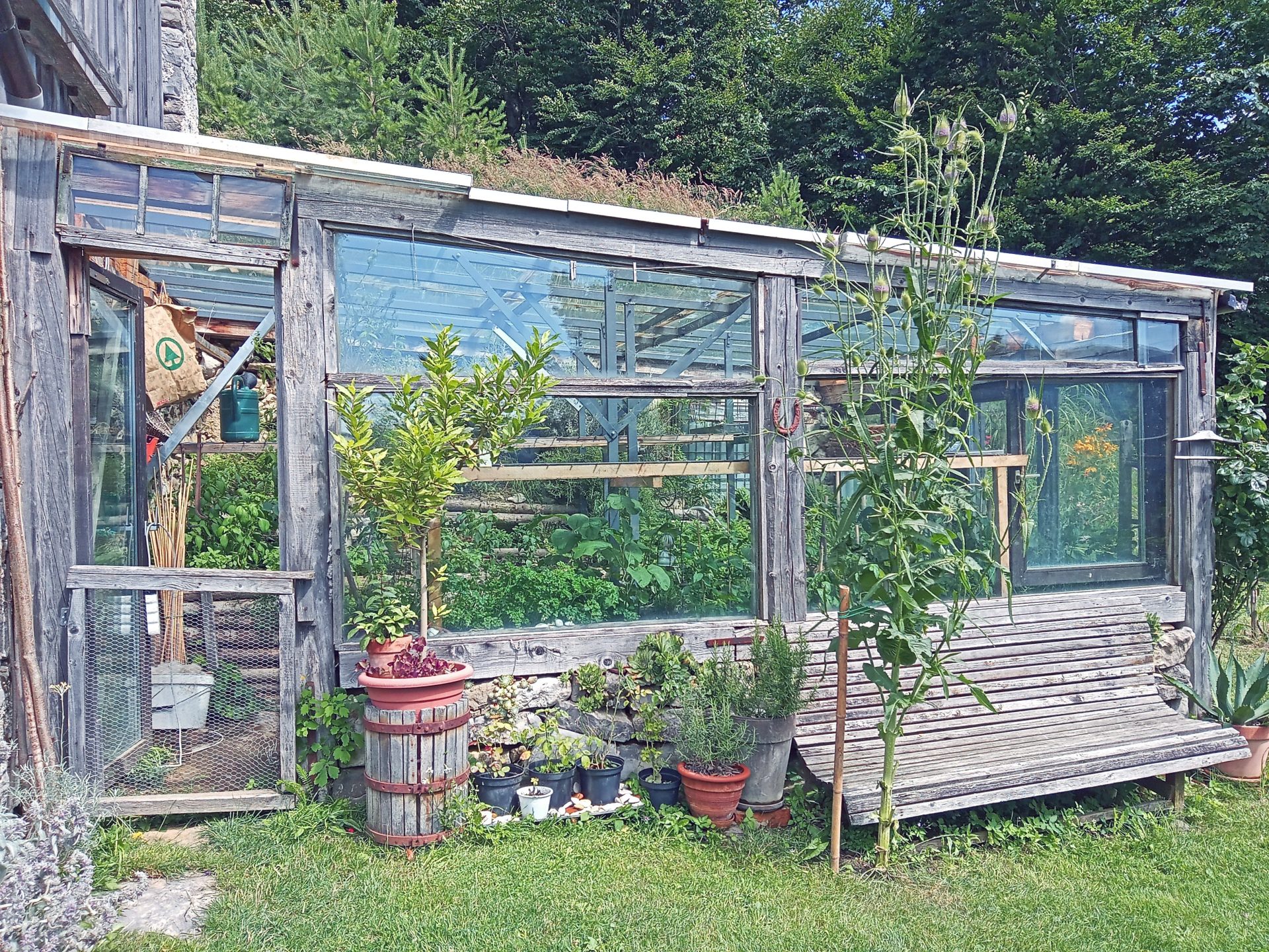 Kmetija je lepo vzdrževana in ima urejena dva velika vrtova in njivo. Vrtova imata urejene zalogovnike vode za zalivanje.Zemlja je zelo rodovitna in je obdelana z občutkom do narave, po načelih permakulture in biodinamike. Ima stare sorte visokodebelnih hrušk, nasad jablan, nasad ameriških borovnic, malin, robid, ribeza in še mnogo drugih sadnih vrst. Okolica hiše ima veliko cvetličnih in zeliščnih gredic.