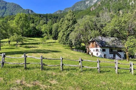 Soča – Hiša na osupljivi lokaciji s približno 3 hektari zemljišča.