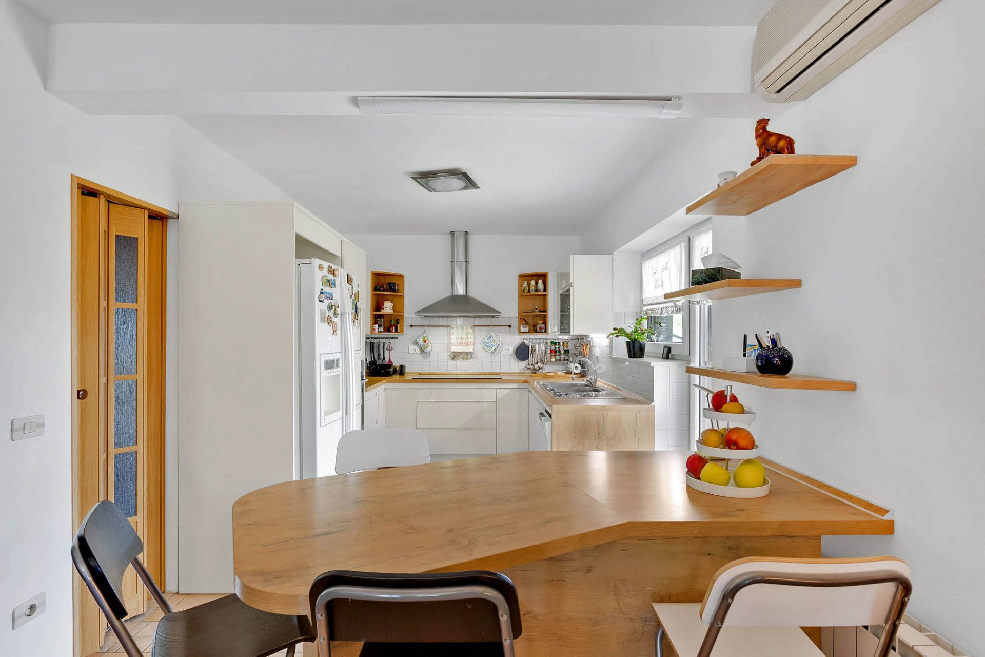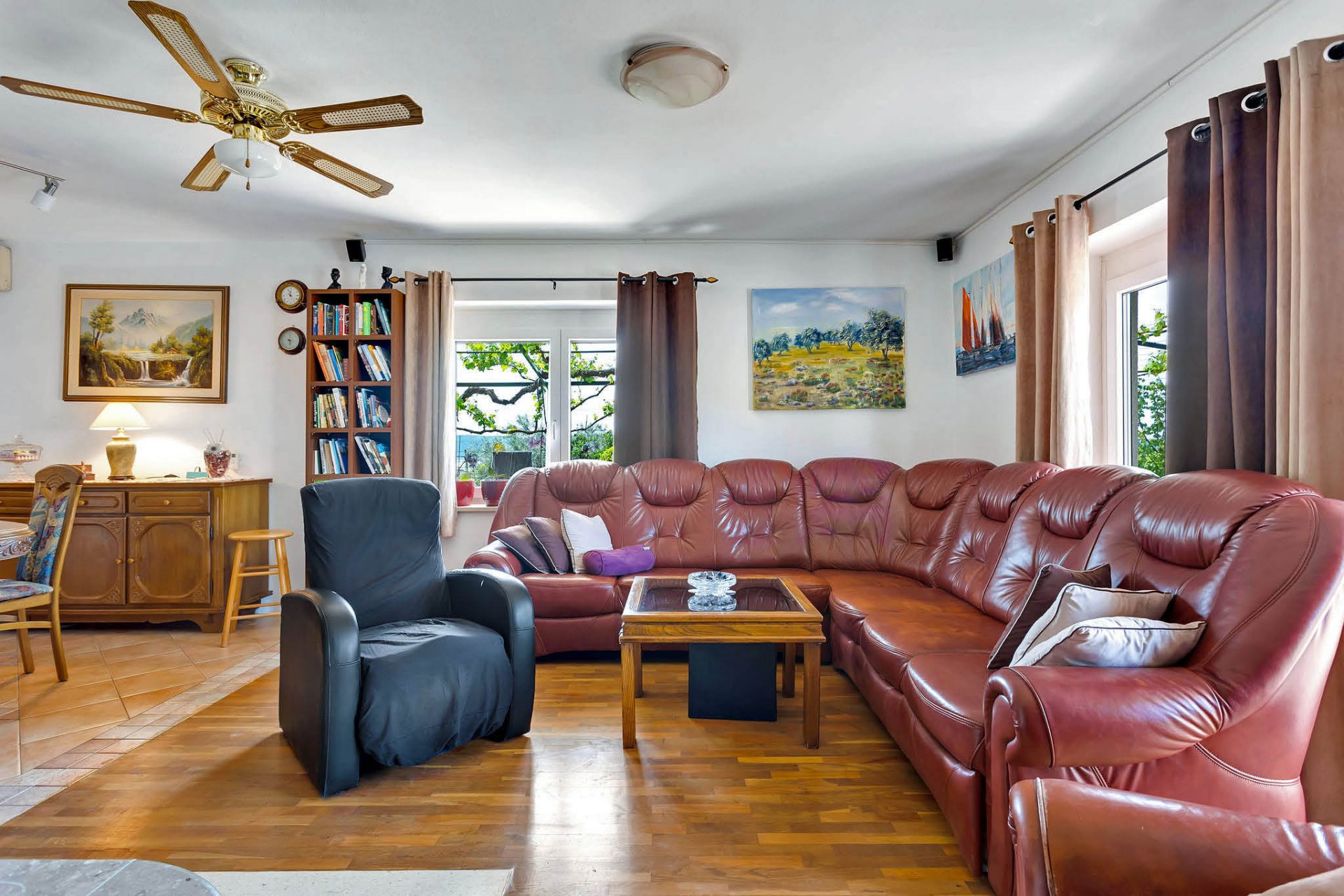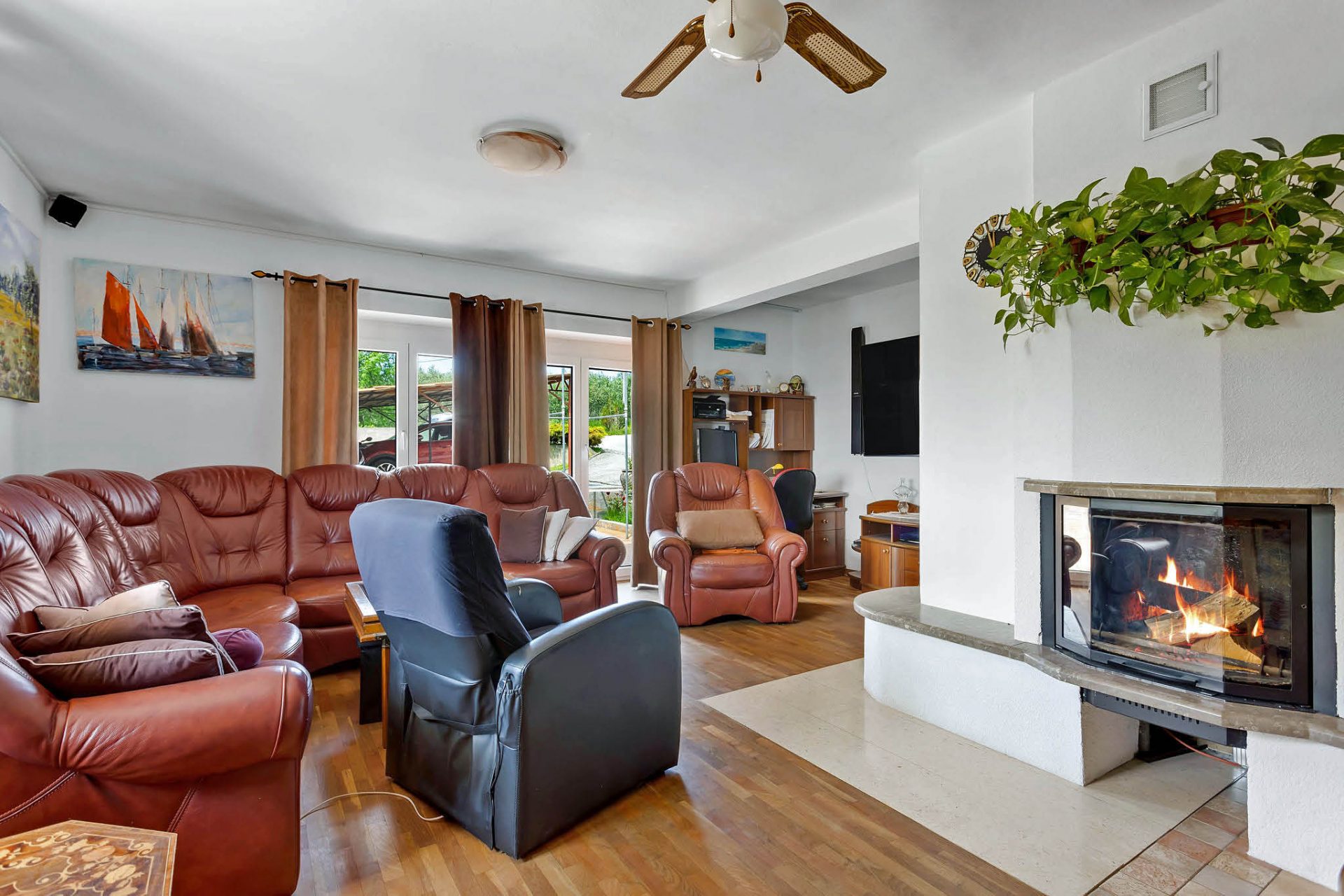 Pritličje obsega predprostor, velik dnevni prostor z jedilnico in kuhinjo. Tukaj je še WC, garderobna soba, 2 sobi in kurilnica.