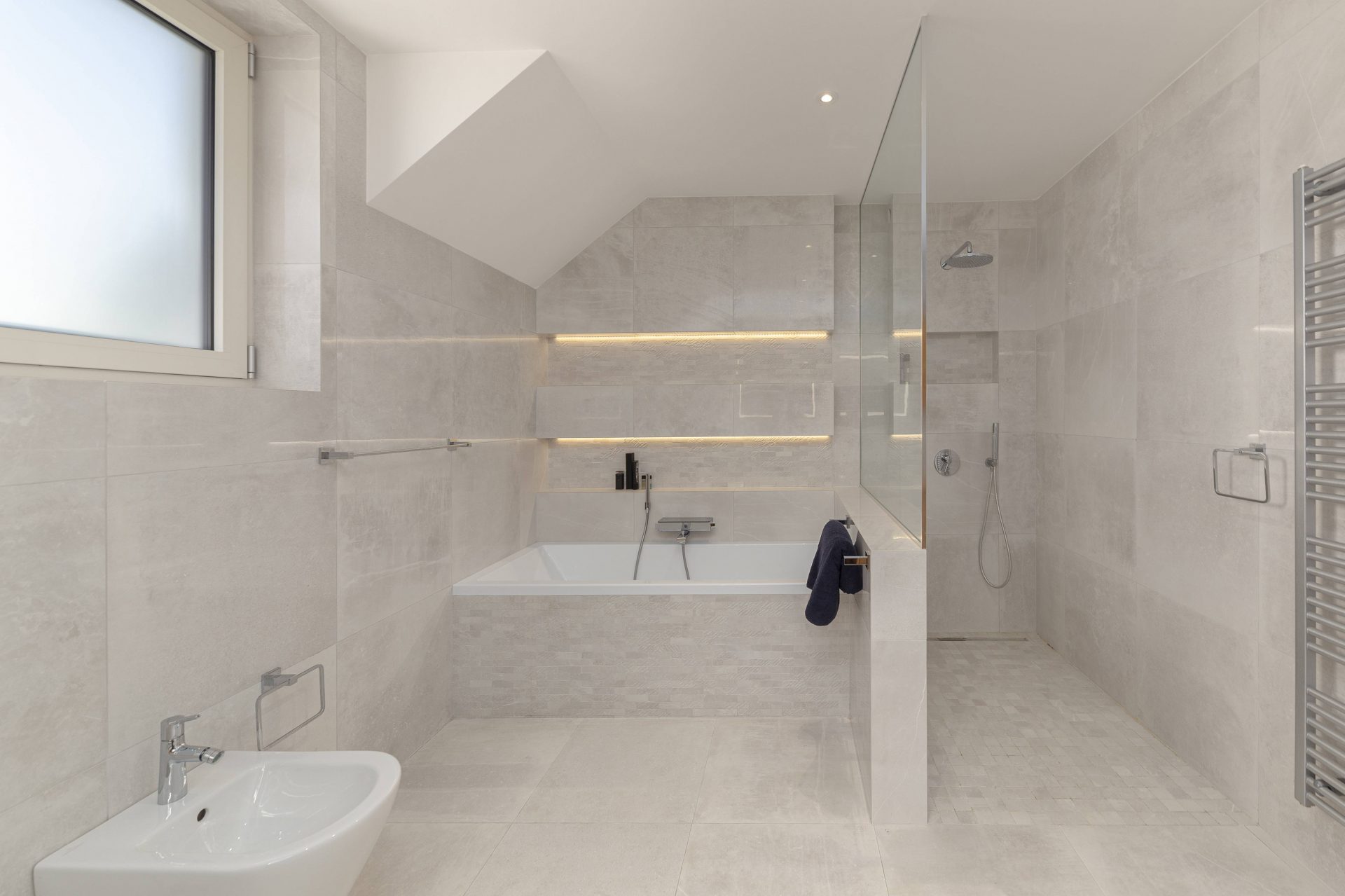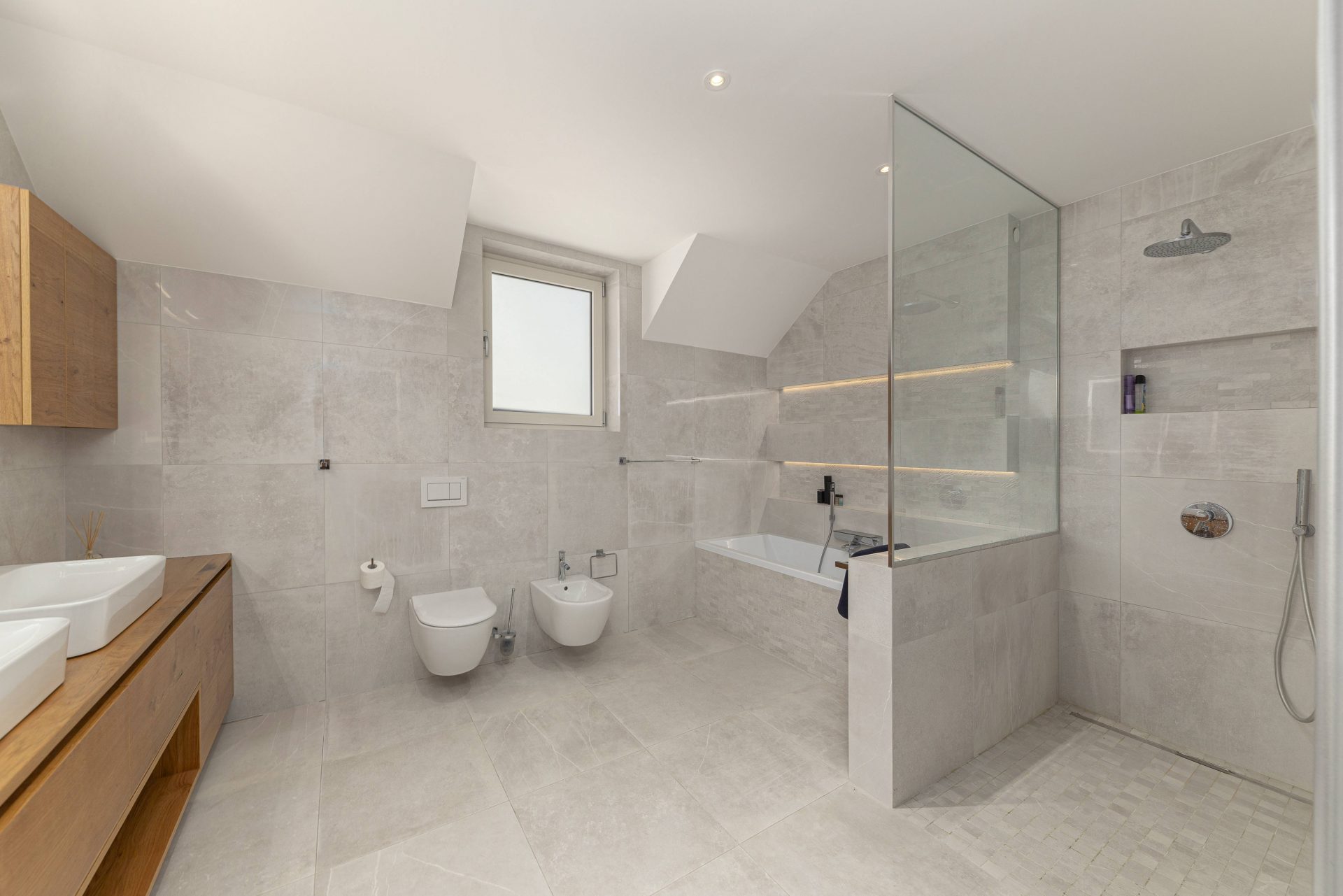 V tem nadstropju se nahajajo tudi kopalnica s tušem, pisarna, ki se po potrebi lahko preuredi v dodatno spalnico, ter velik utility/shrambo s pralnim in sušilnim strojem, umivalnikom, 300-litrskim bojlerjem in električno pečjo. Prostor nudi obilico dodatnega prostora za shranjevanje.