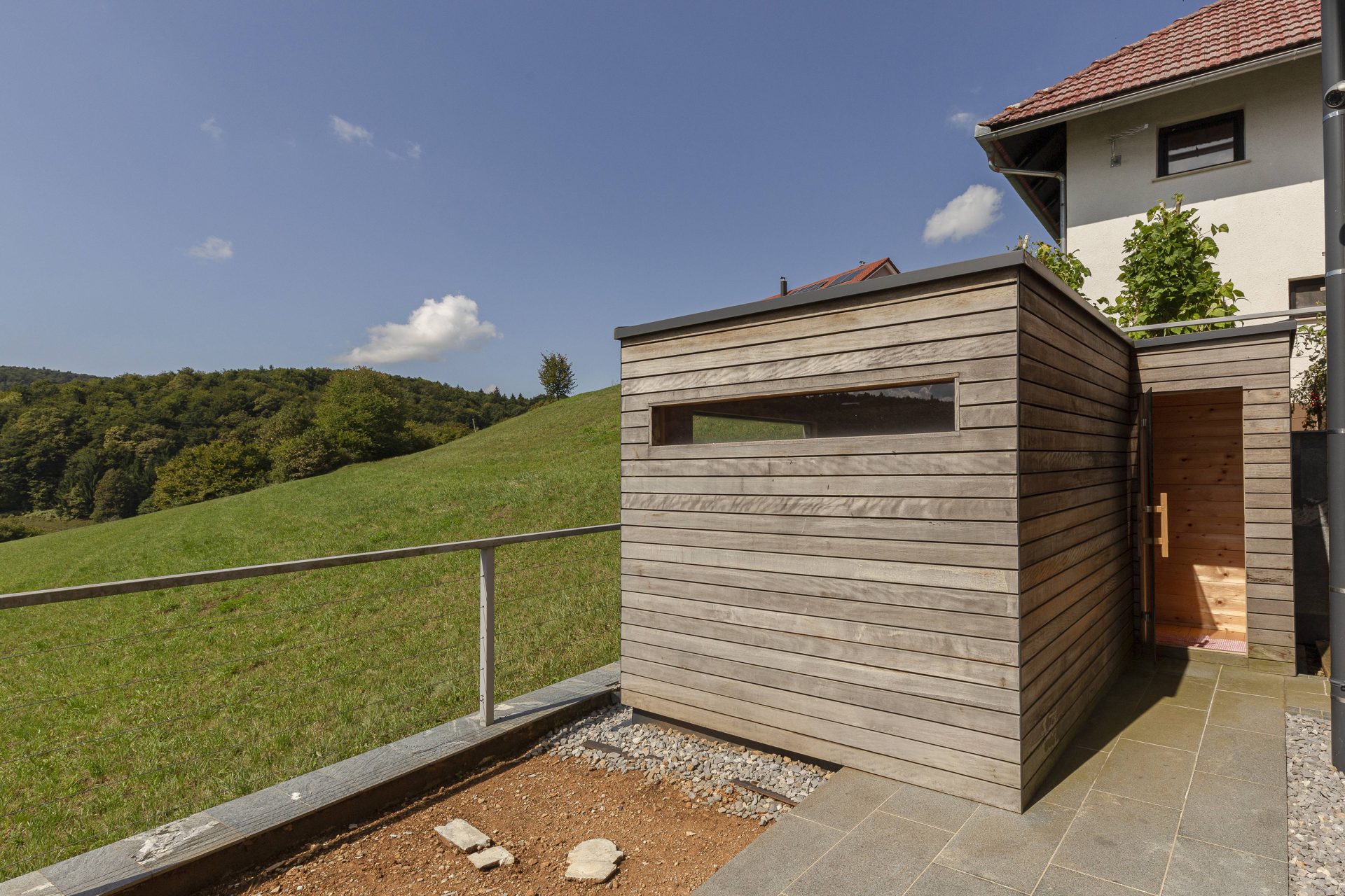 Ob vili je že izveden izkop, ki omogoča možnost izgradnje bazena ali celo nove hiše.