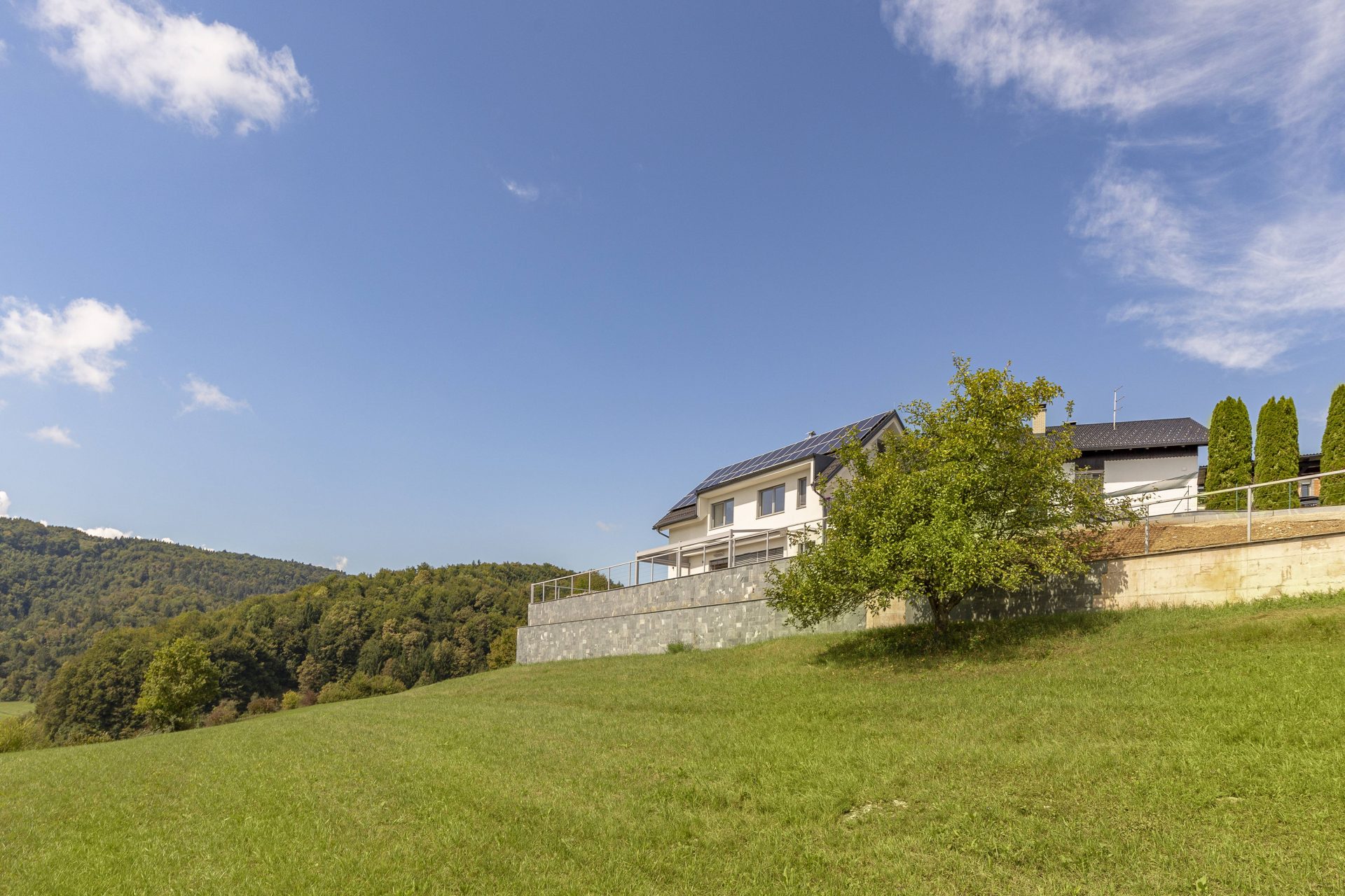Ta elegantna, luksuzna dvonadstropna vila s tremi spalnicami se nahaja na mirni in slikoviti lokaciji, le nekaj minut od avtoceste, kar omogoča hiter in enostaven dostop do Ljubljane (približno 25 minut vožnje).