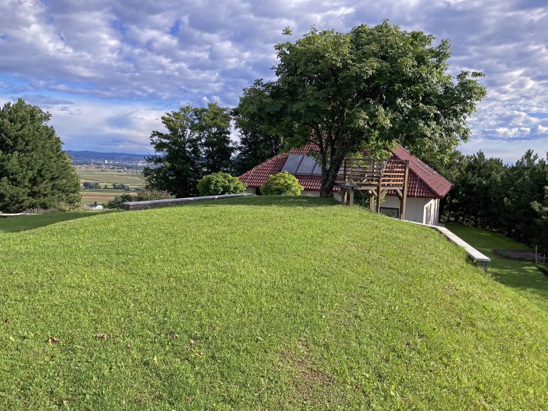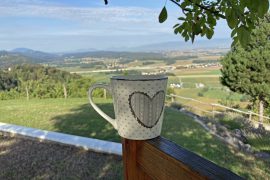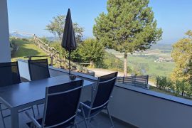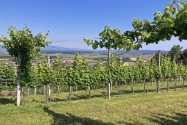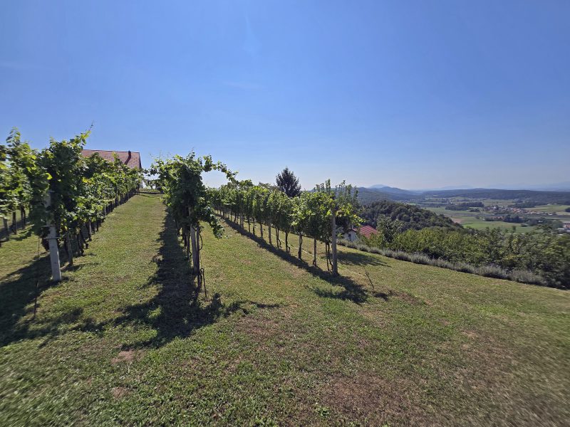 Izjemni razgledi na okoliško vinogradniško okolje, hribe in celo Alpe.