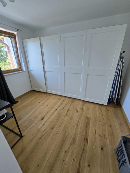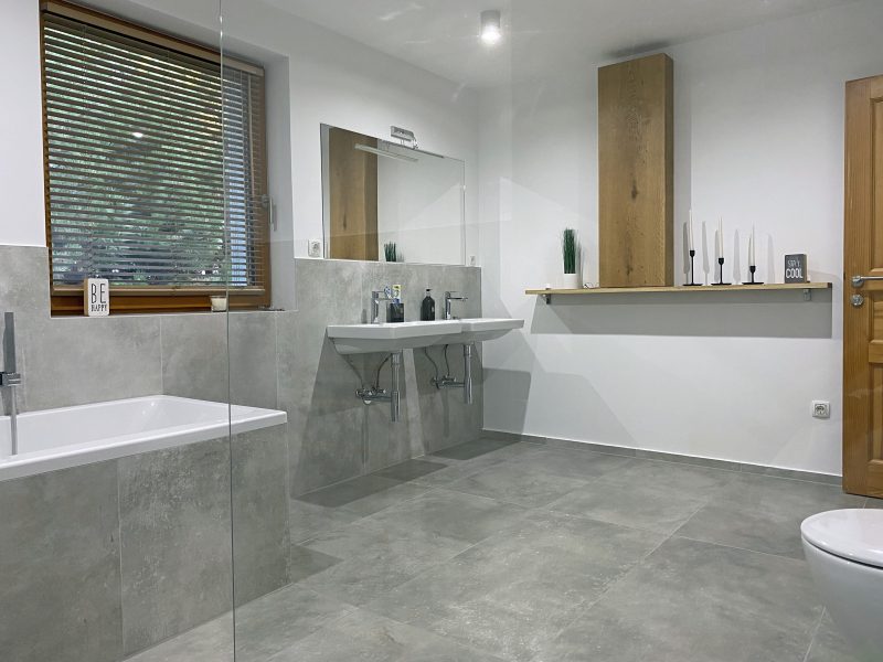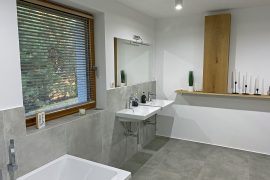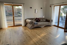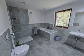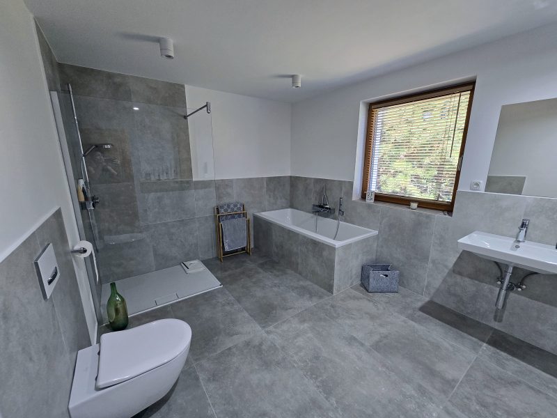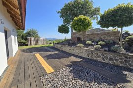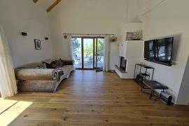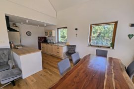 Hiša je bila zgrajena z namenom preživljanja prostega časa v naravi. Vsi uporabljeni materiali so višjega cenovnega razreda.