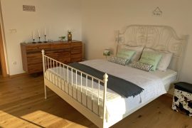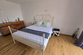Nadstropje obsega hodnik s stopniščem, velik in svetel dnevni prostor z izhodom na teraso in kaminom, kuhinjo z jedilnico, 3 spalnice, prostorna kopalnica, utility in kurilnica.