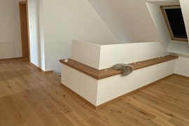 V mansardi je hodnik, galerija, spalnica in kopalnica.