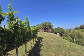 Ta ljubka hiša na vrhu hriba, nekoč vinska klet, z vinogradom, ponuja odlično bivanje in čudovit razgled. Primerna destinacija tako za počitniško hišo kot za stalno bivanje.