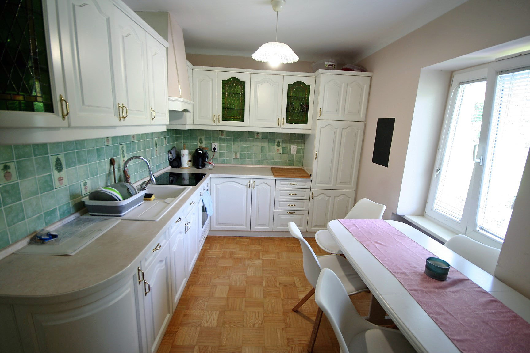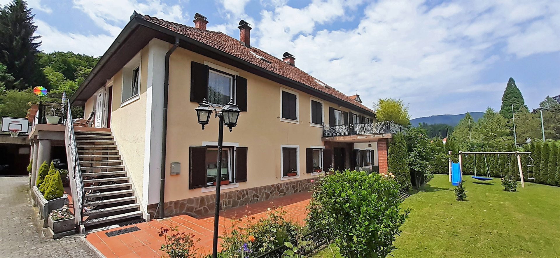 V prostorni hiši trenutno živijo 3 generacije, vsaka v svojem delu. Tako ima hiša 3 dnevne prostore, 3 kuhinje, 5 spalnic, 3 kopalnice in mnogo dodatnih prostorov, shramb, kurilnico, balkon in teraso s prelepimi razgledi na slikovito okolico.